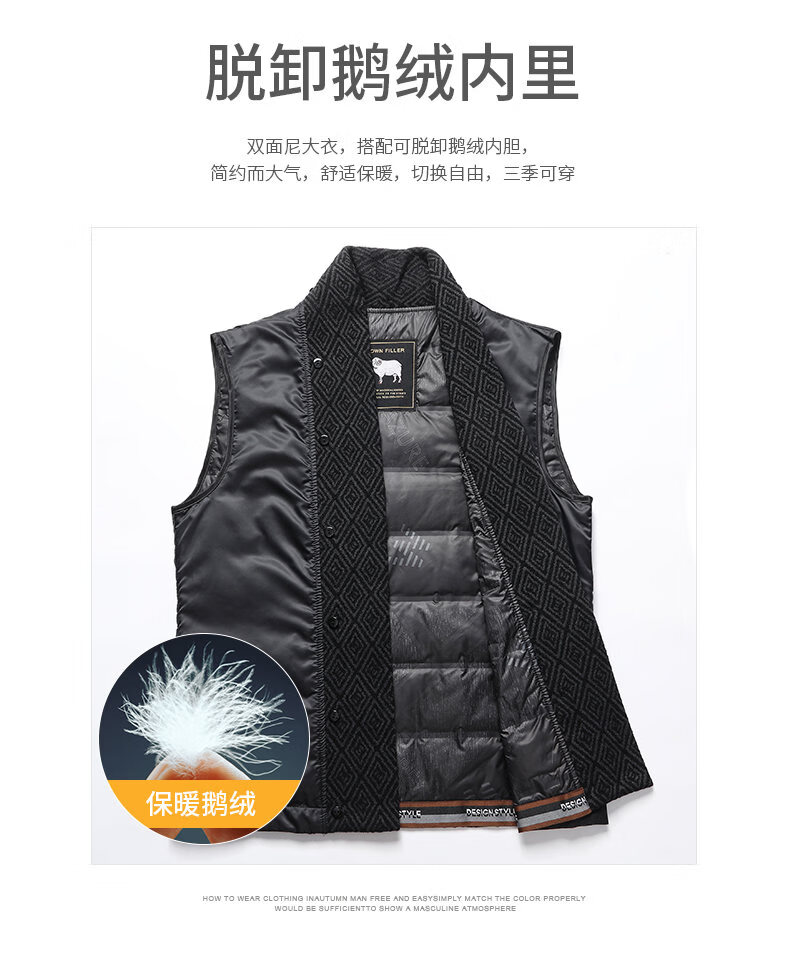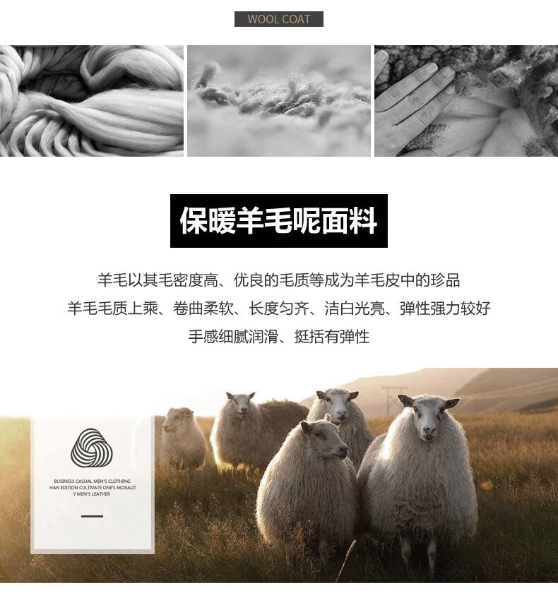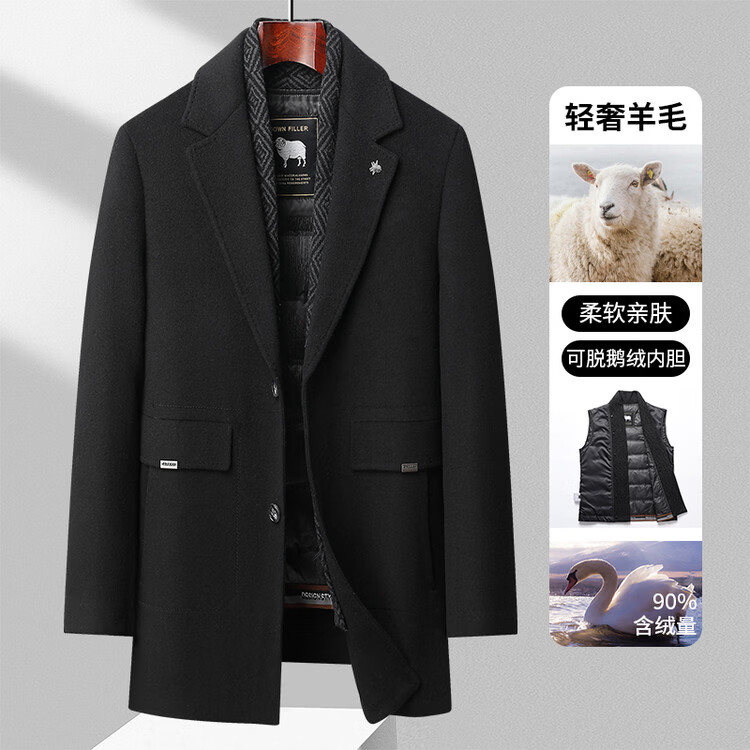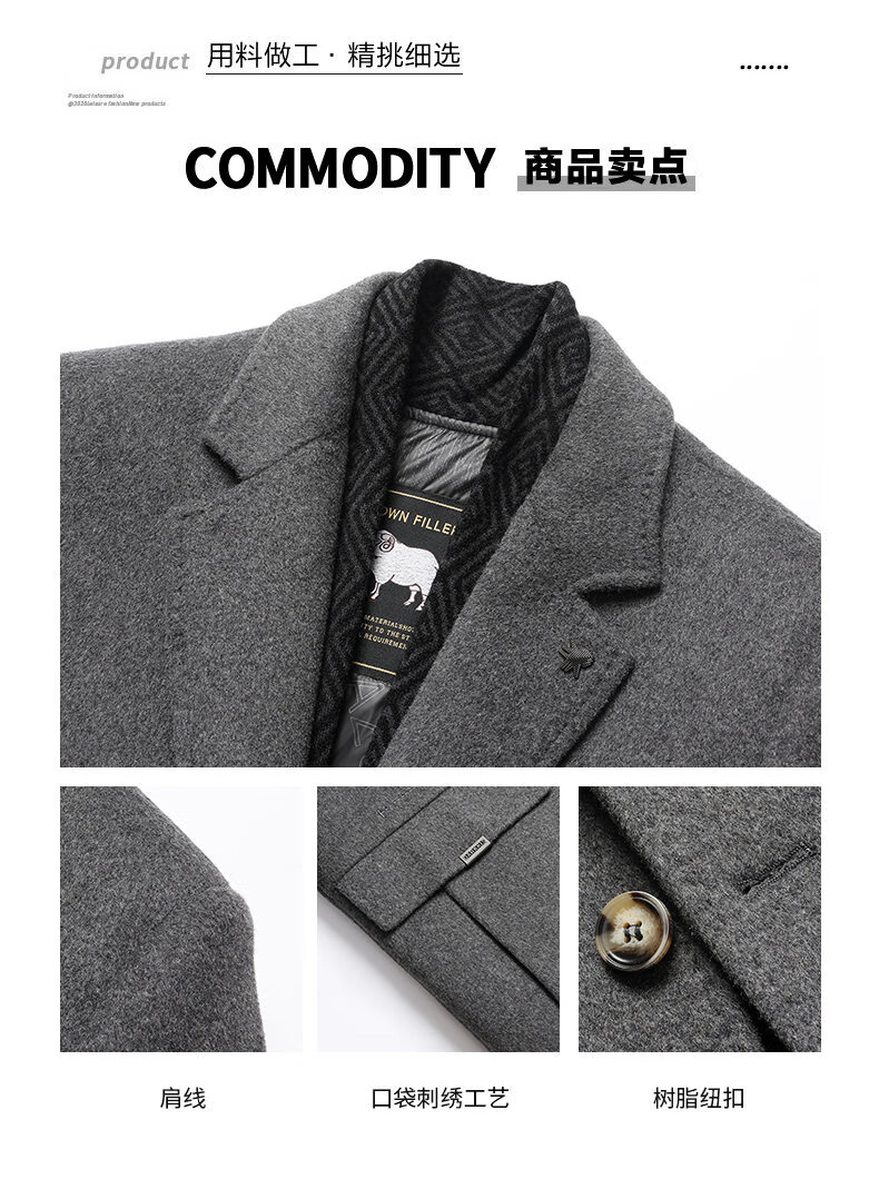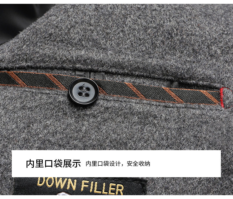 Lomon wool woolen coat for men, down lining, double-sided woolen scarf collar, casual middle-aged dad autumn and winter coat, light gray M