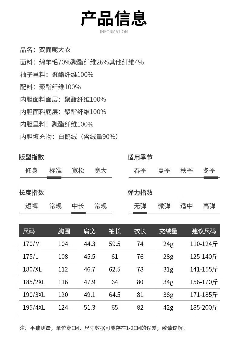 China (cm) 165 / 88-90 170 / 96-98 175 / 108-110 180 / 118-122 185 / 126-130