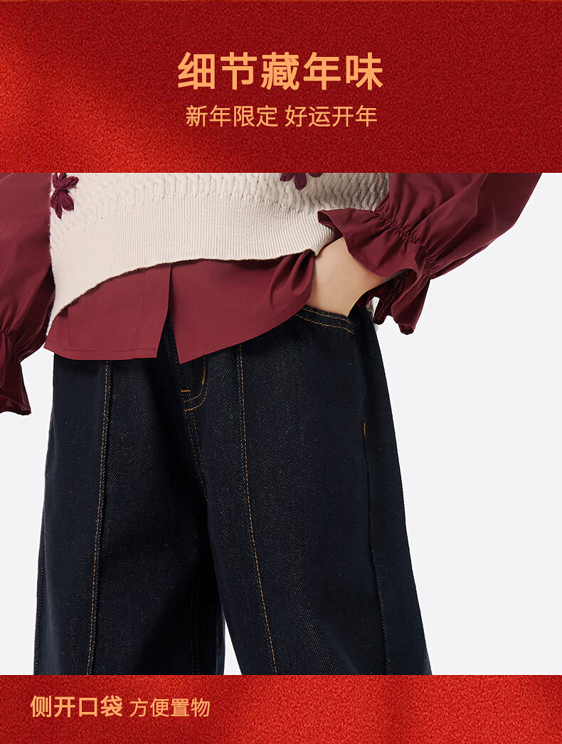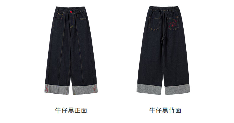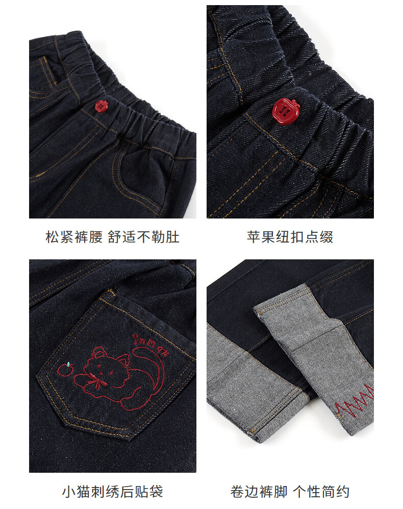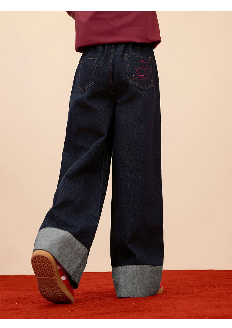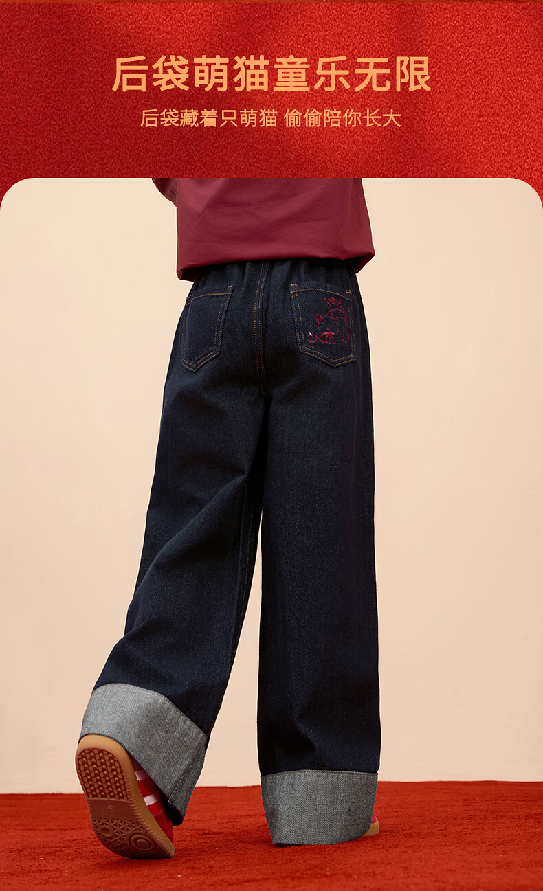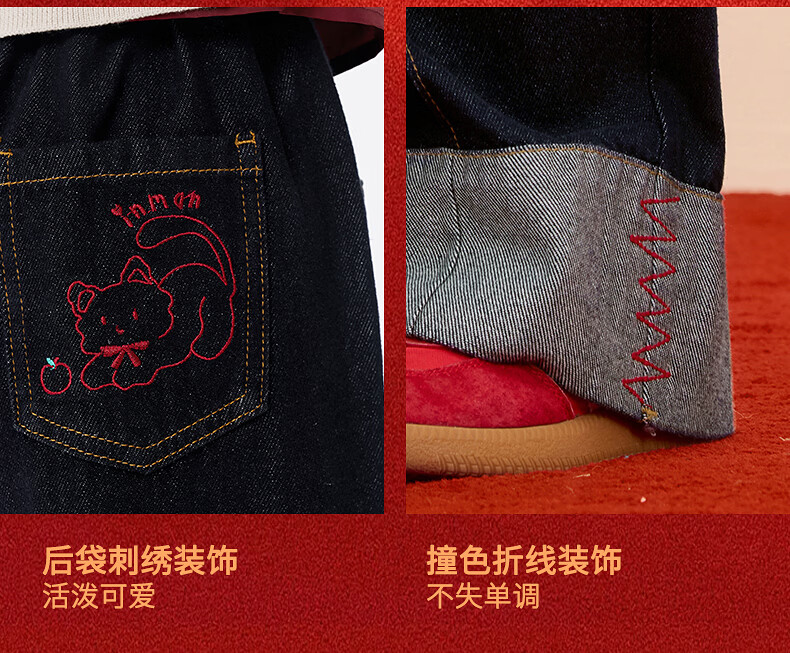 Xiaoyinman Children's Clothing Girls New Year Jeans Back Pocket Cat Embroidery 26 Spring Medium and Large Children's Loose Casual Pants Denim Black 150