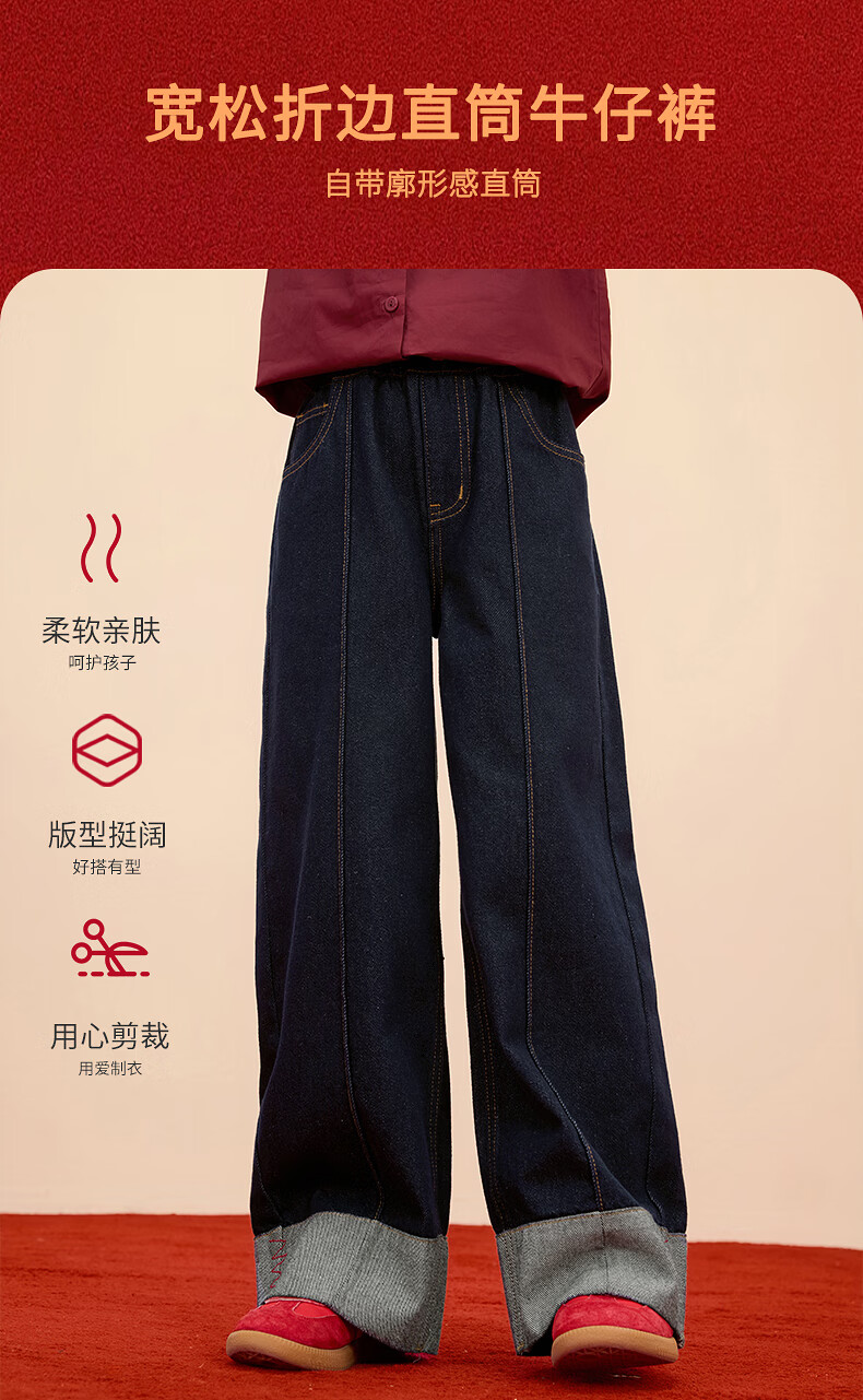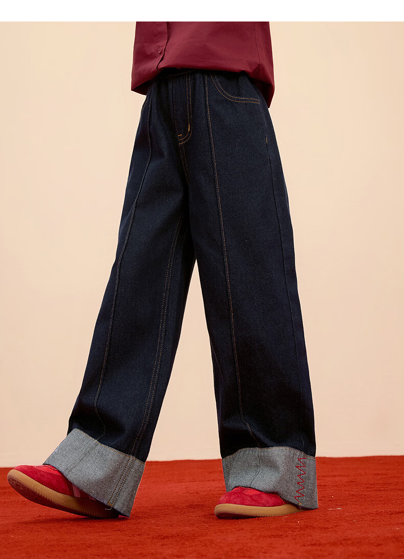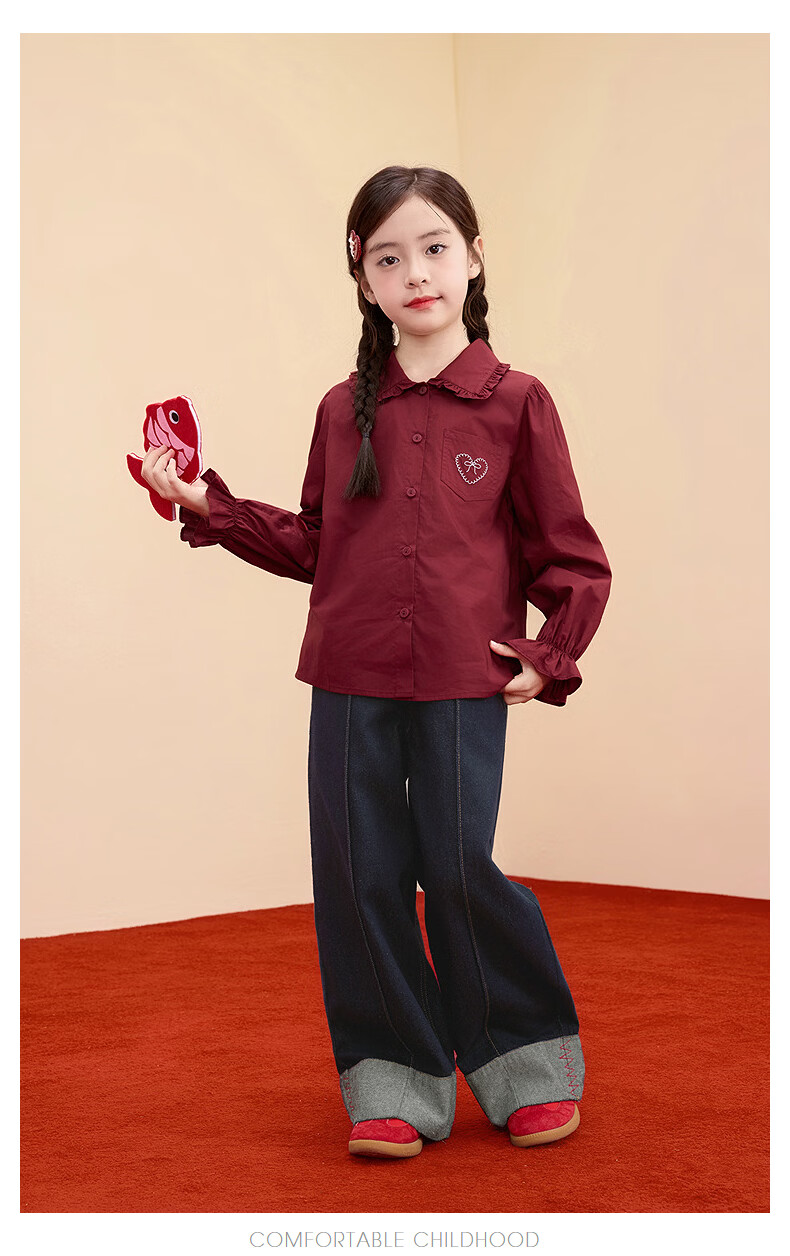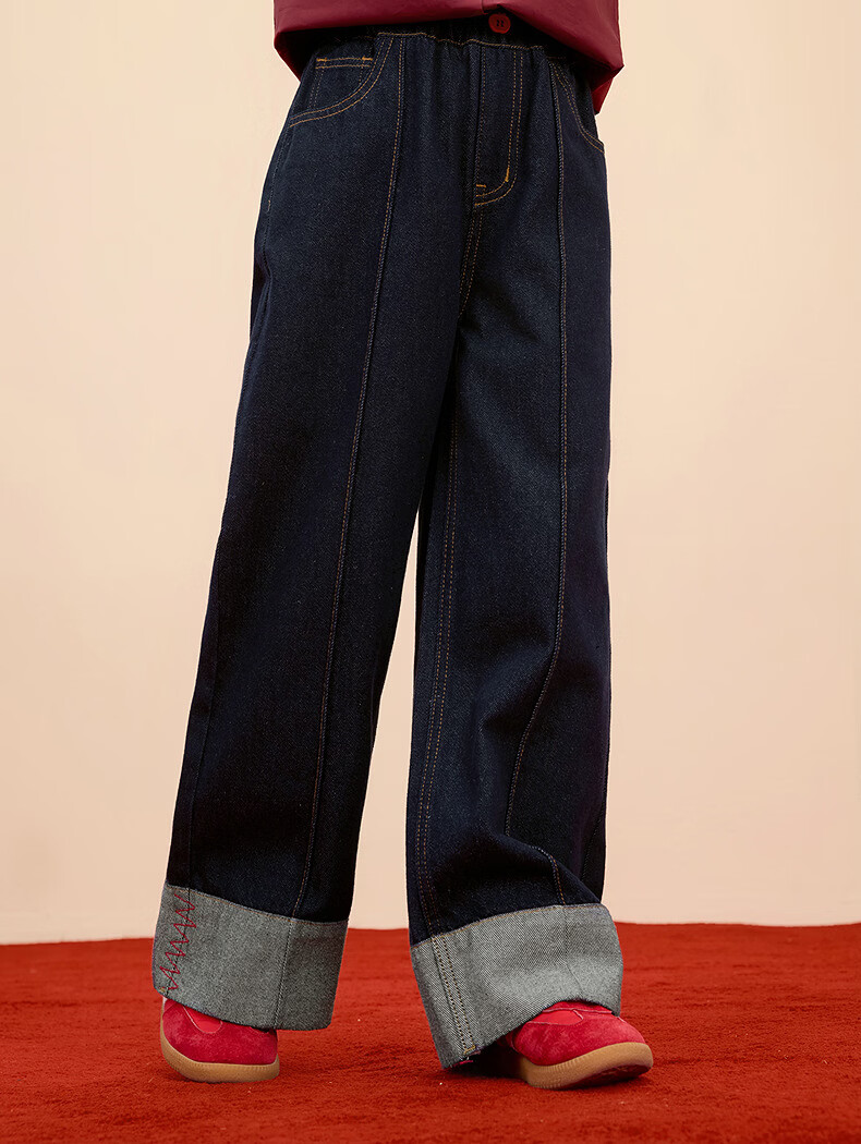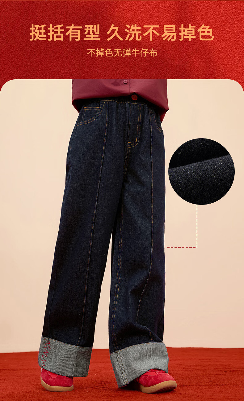 Xiaoyinman Children's Clothing Girls New Year Jeans Back Pocket Cat Embroidery 26 Spring Medium and Large Children's Loose Casual Pants Denim Black 150