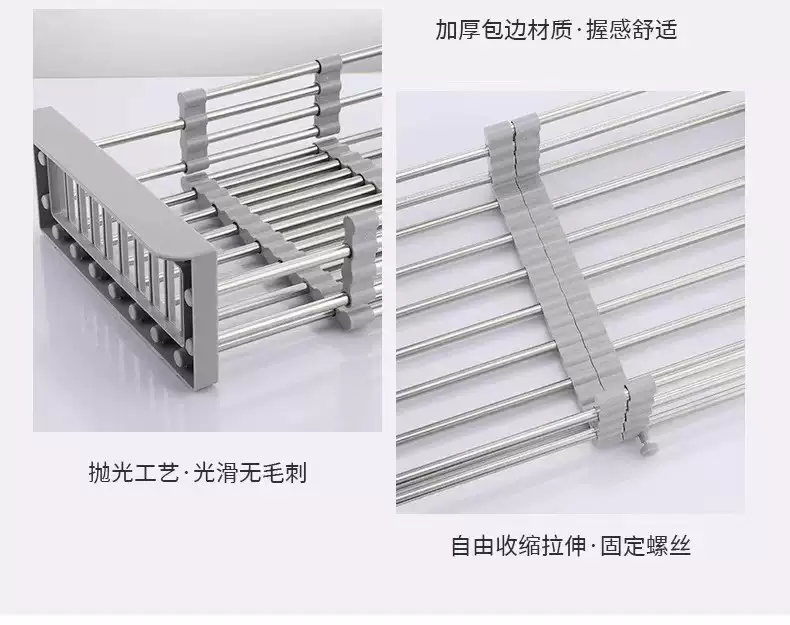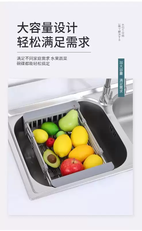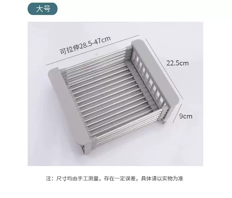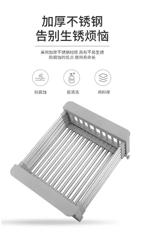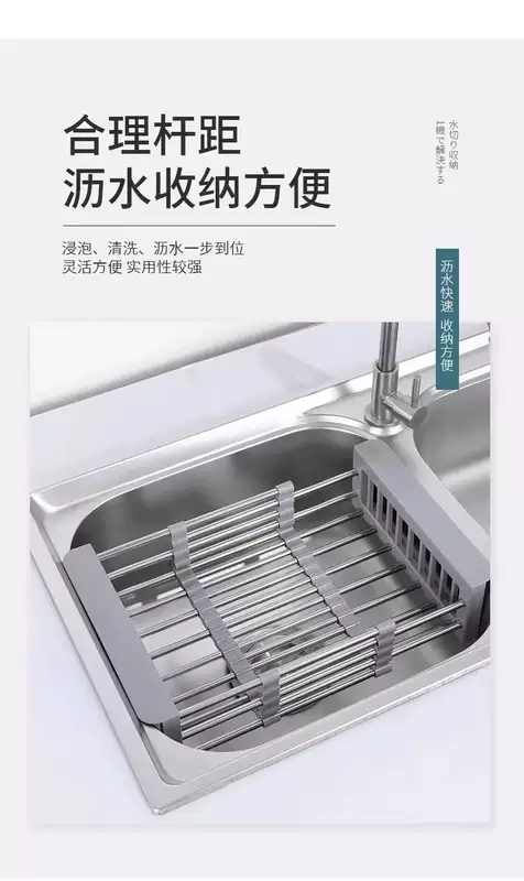 Yusenyi kitchen sink drain rack retractable dishwashing sink pool filter rack stainless steel sink drain basket (folding model) drain sheet 23x47cm drain sheet gray