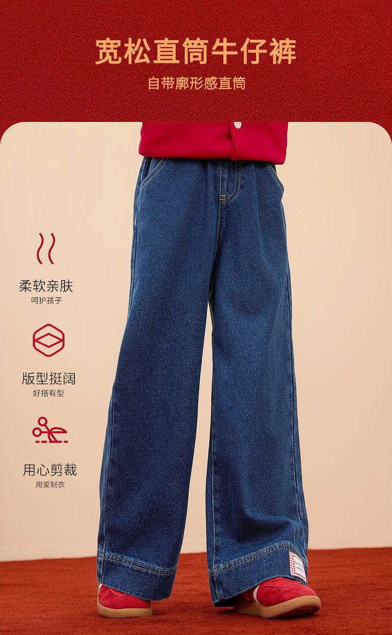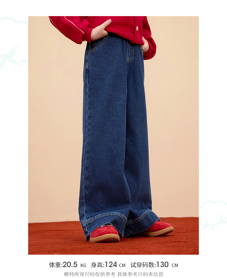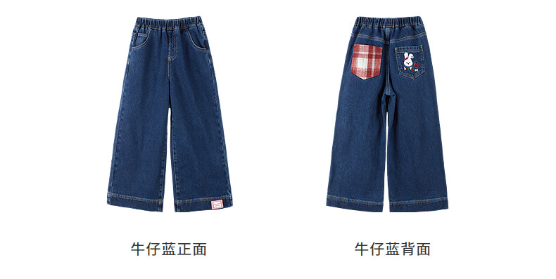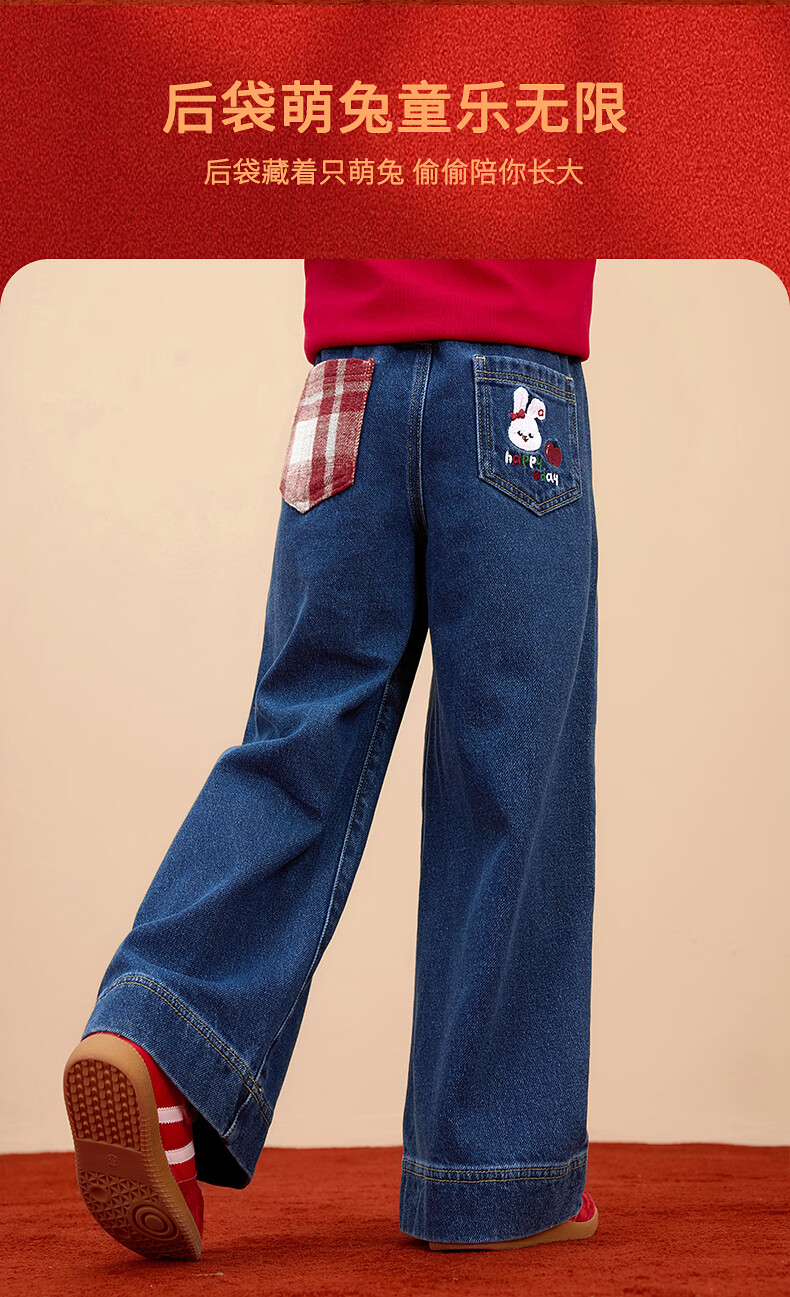 Xiaoyinman IP Rabbit Children's Clothing Girls Jeans 26 Spring Medium and Large Children's Loose Straight Casual Pants Denim Blue 160