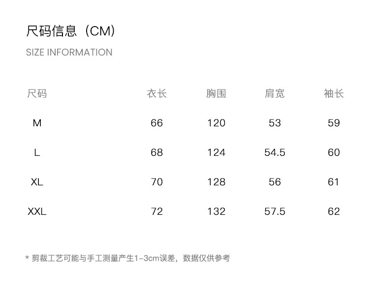 China (cm) 165 / 88-90 170 / 96-98 175 / 108-110 180 / 118-122 185 / 126-130