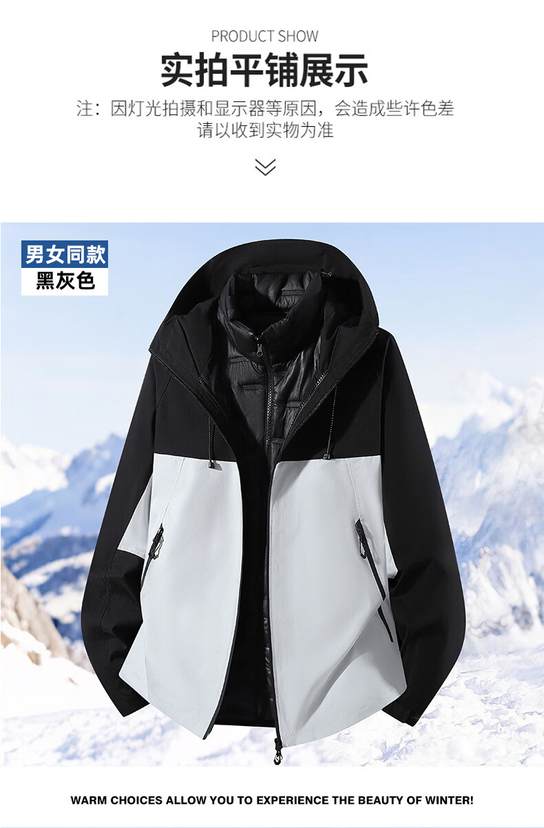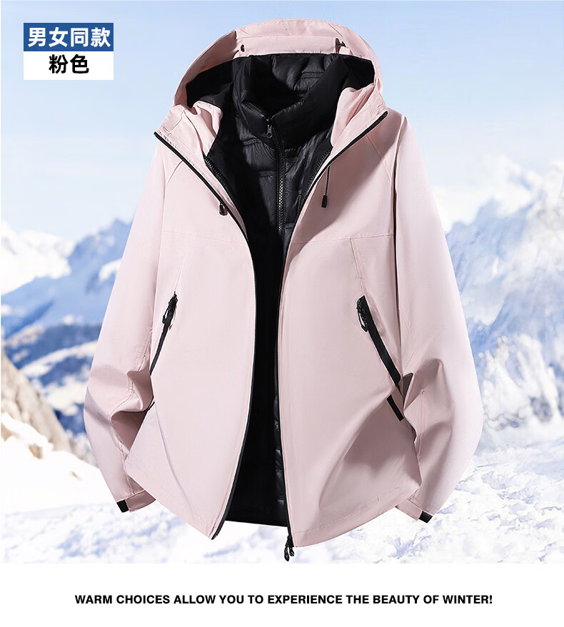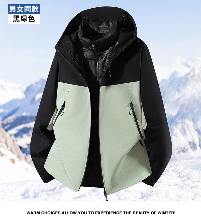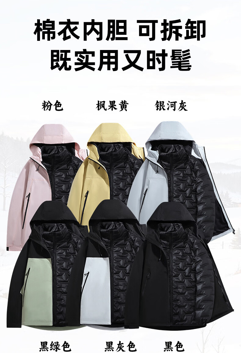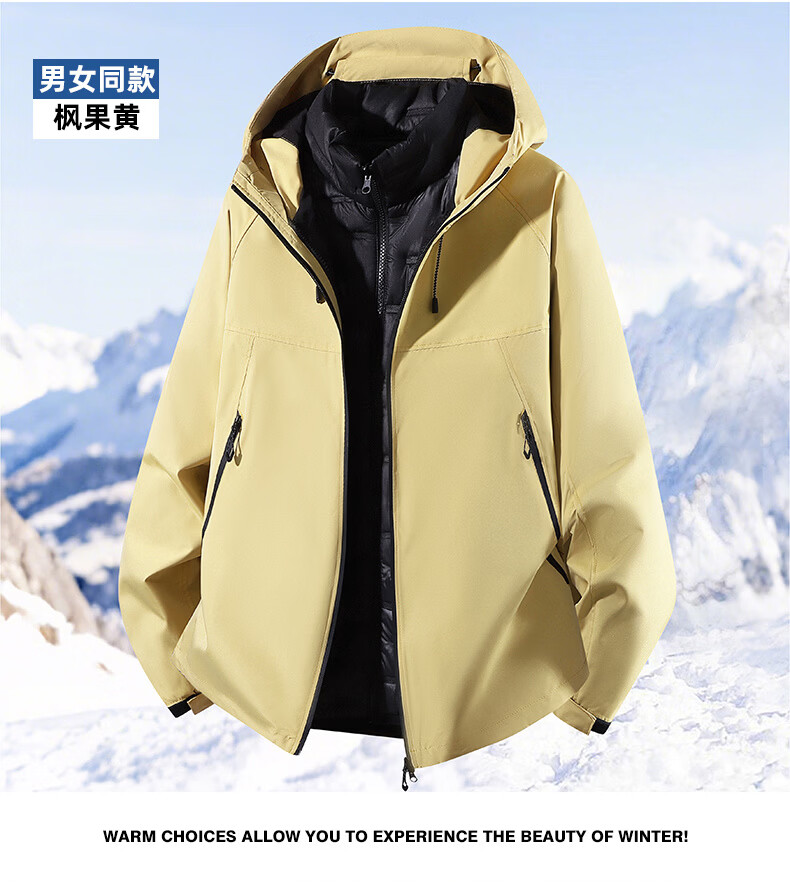 Outdoor jacket for men and women, three-in-one cotton liner, winter windproof, waterproof, thickened and warm mountaineering jacket, maple yellow BZ2077 XL recommended 160-180Jin Jin equals 0.5kg