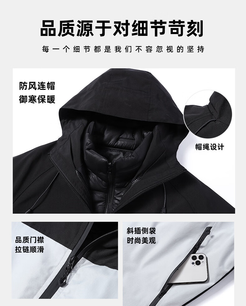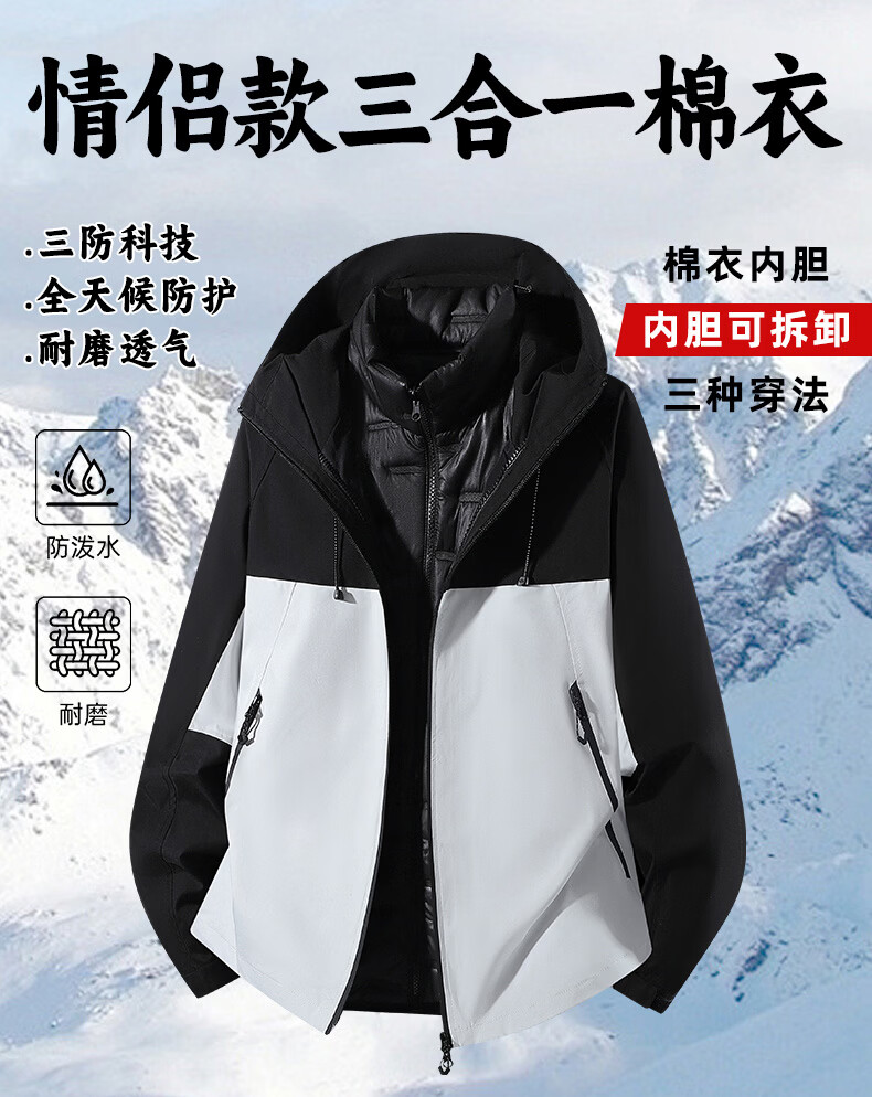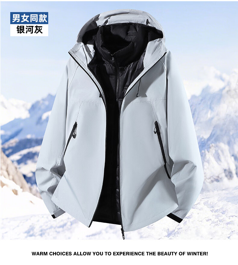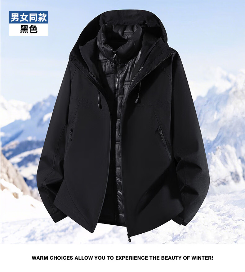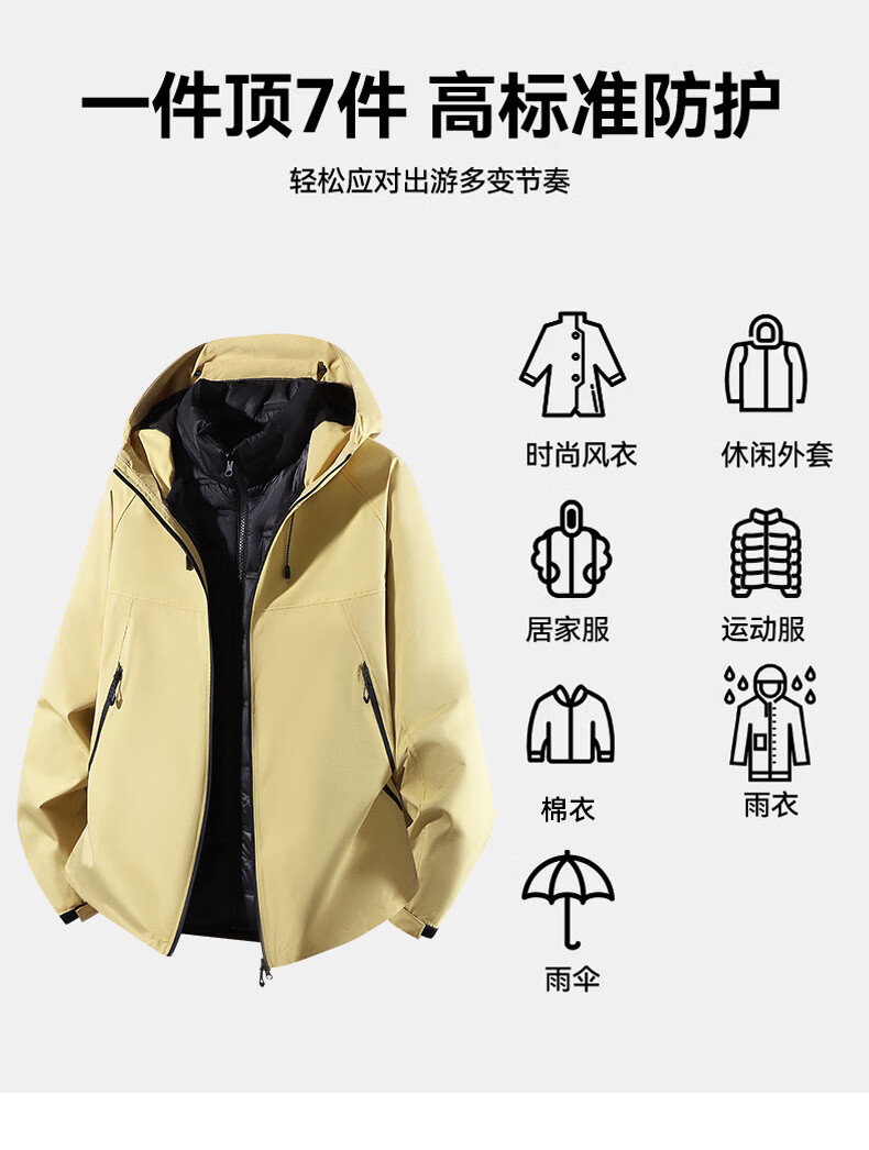 Outdoor jacket for men and women, three-in-one cotton liner, winter windproof, waterproof, thickened and warm mountaineering jacket, maple yellow BZ2077 XL recommended 160-180Jin Jin equals 0.5kg