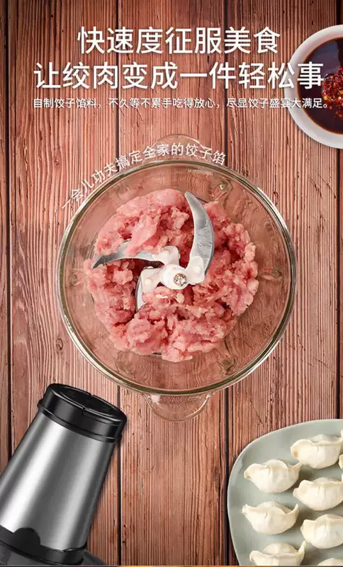 Yusenyi electric garlic machine for commercial restaurants, minced garlic, pulled, cut and pressed garlic, smashed, household garlic machine, 3 liters large, new glass cup (300W), 2 knives