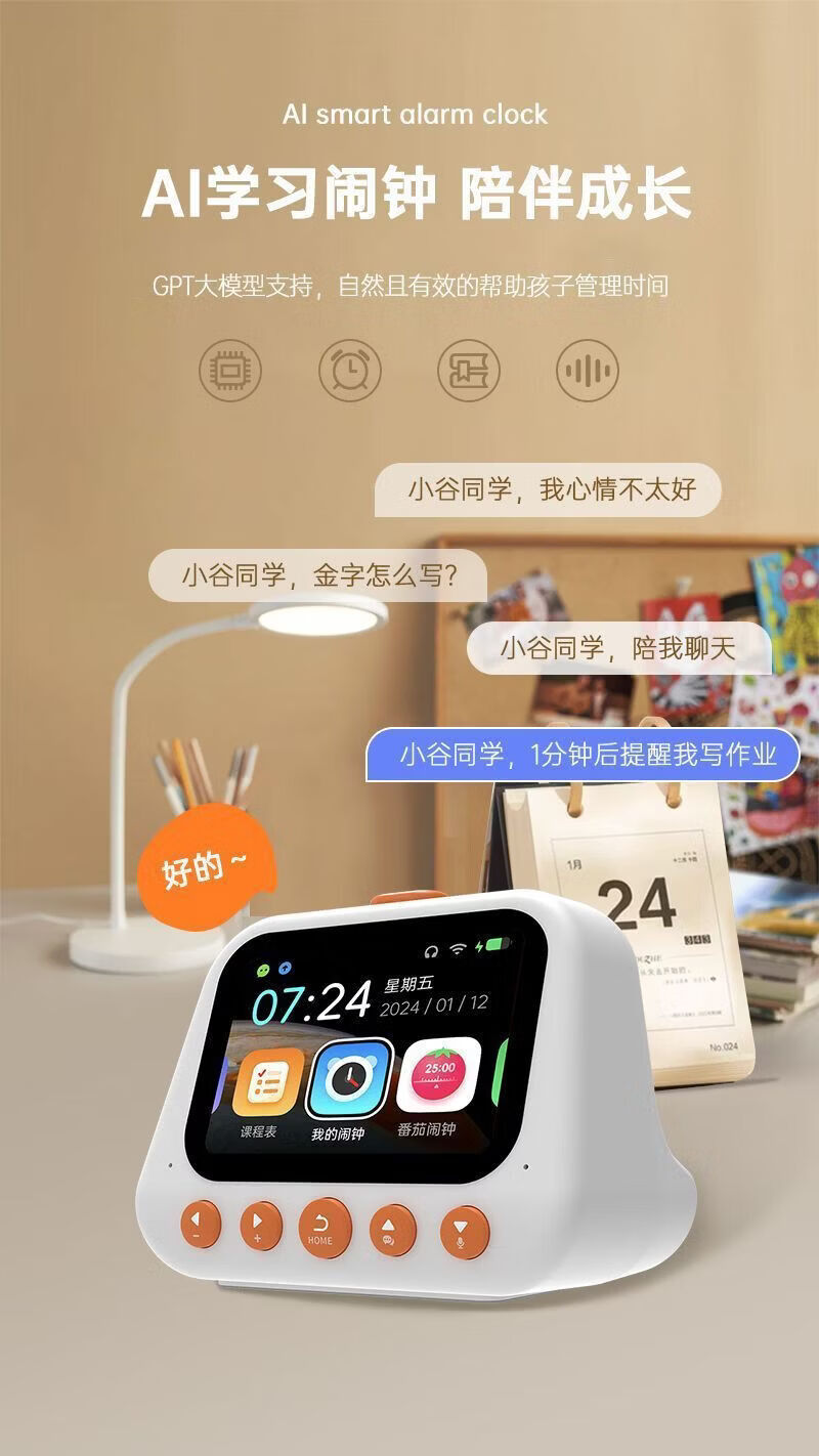 Early education puzzle smart alarm clock 2025 new student-specific wake-up artifact voice children's timer learning dedicated voice assistant early education machine children's learning machine XS8 luxury full-featured AI alarm clock time management oral training course schedule