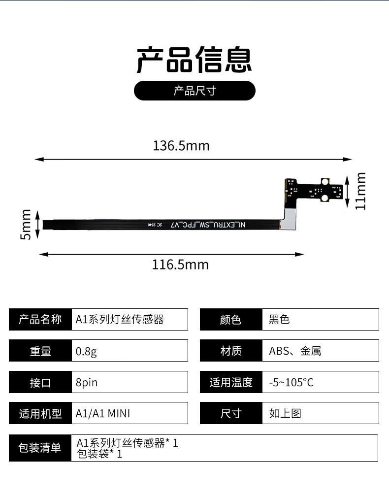 CREATIVITY Tuozhu P1P/P1S/A1 series extruder Hall switch plate assembly with cable sensor Tuozhu A1_A1mini Hall plate assembly with cable