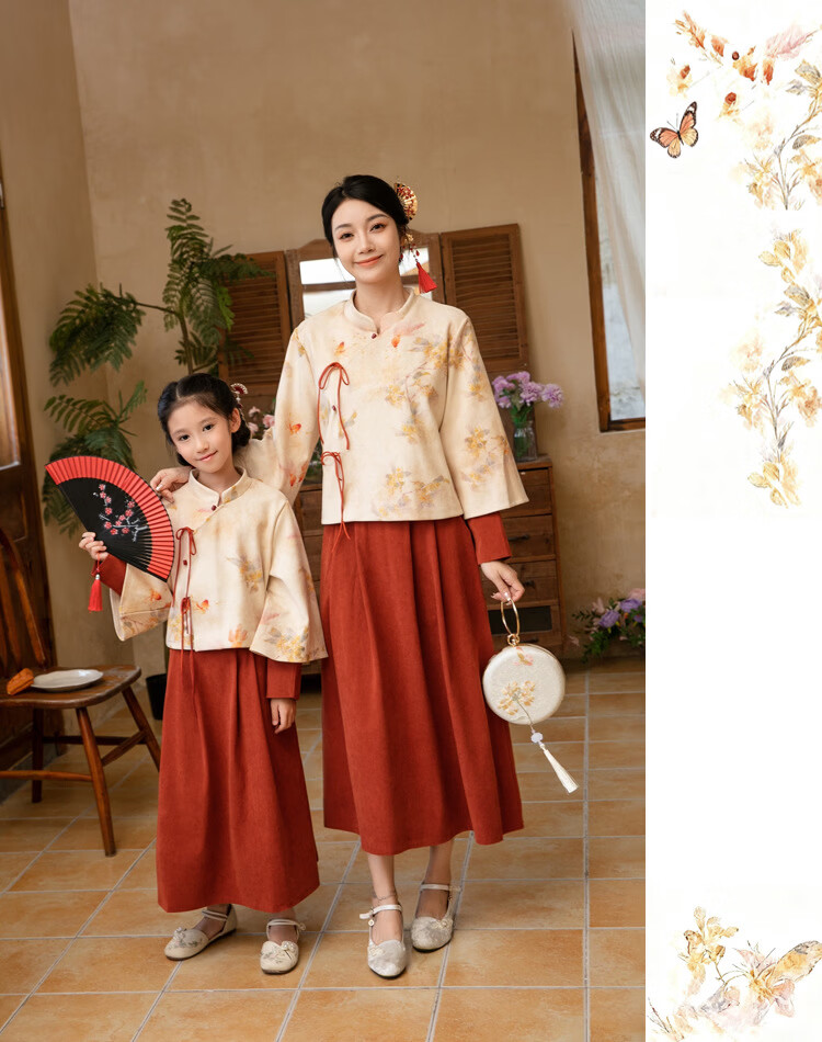 G.duck new Chinese style parent-child clothing autumn and winter new national style suit ancient style Hanfu mother and daughter clothing family portrait New Year's greetings performance clothing hot sale orange (spring and autumn suit) 170 female M
