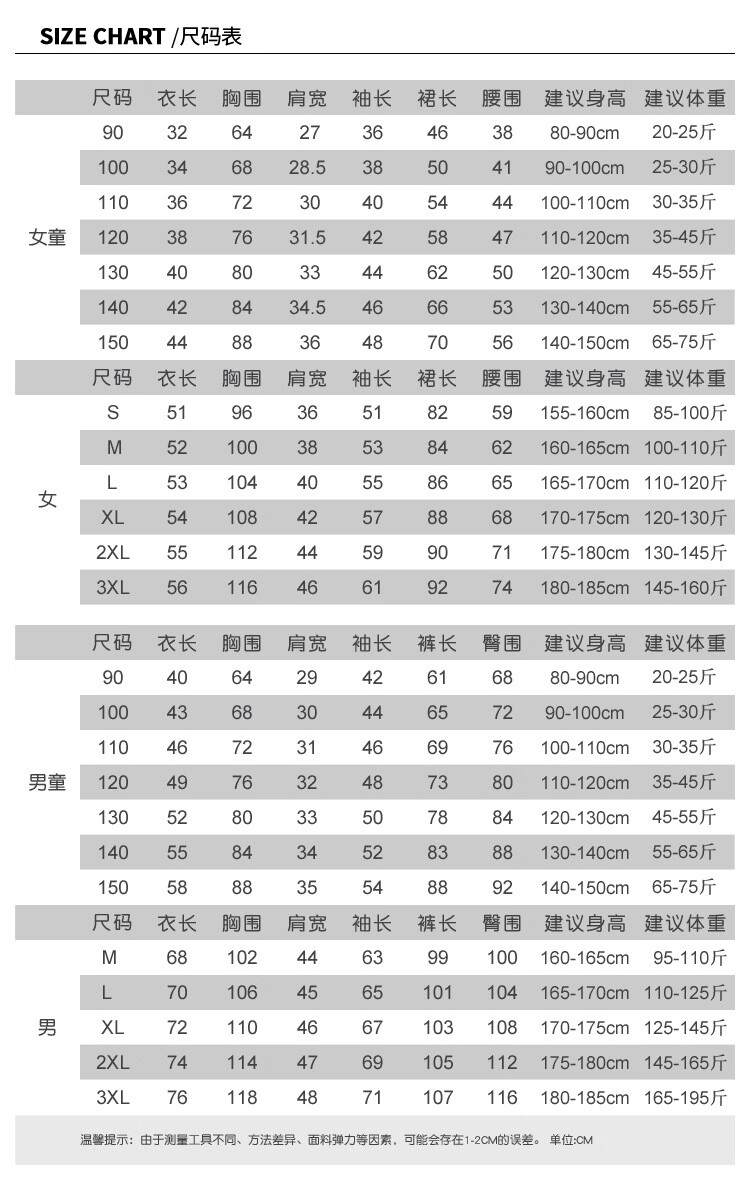 China (cm) 160-165/84-86 165-170 / 88-90 167-172 / 92-96 168-173 / 98-102 170-176 / 106-110