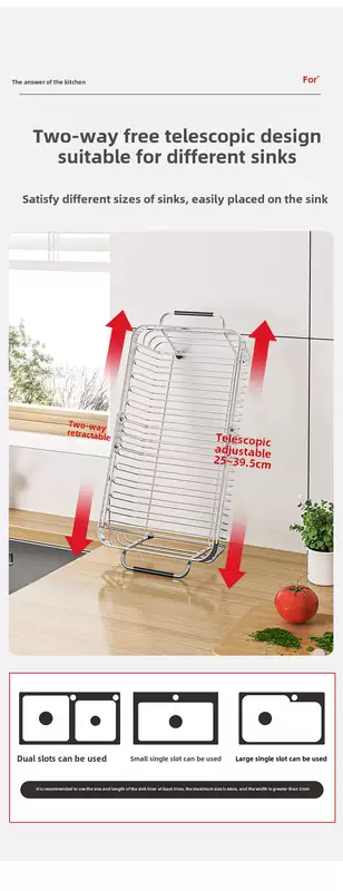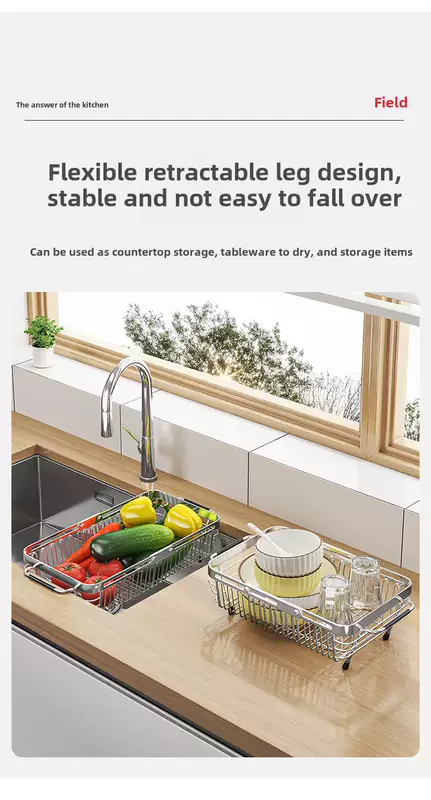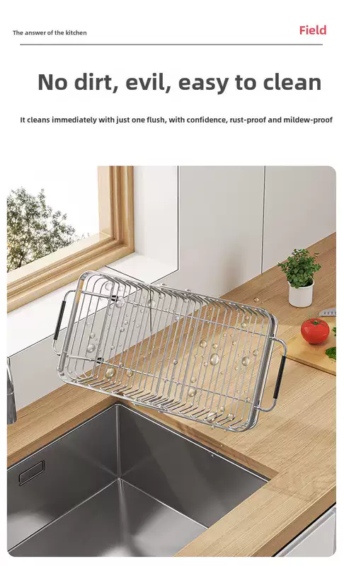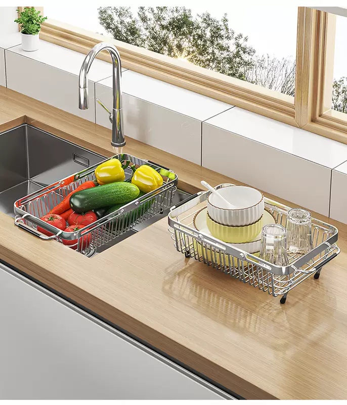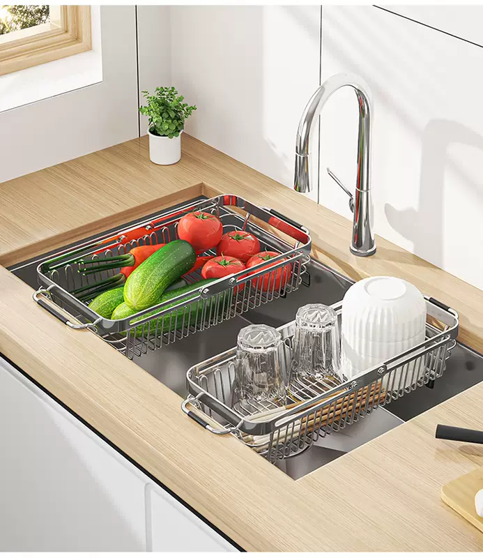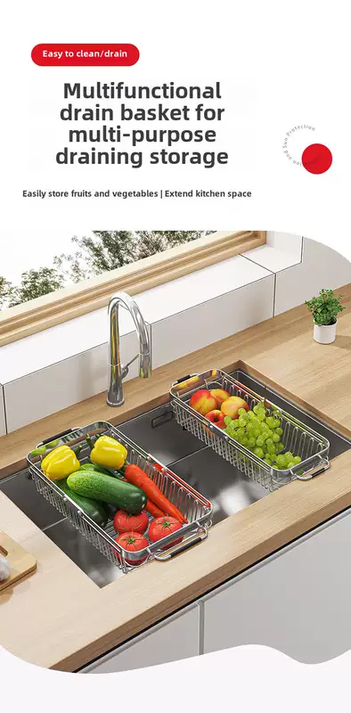 Yusenyi 304 stainless steel sink drain basket kitchen rack swimming pool retractable vegetable basket filter wash basin plate 304 large (90 customers selected)