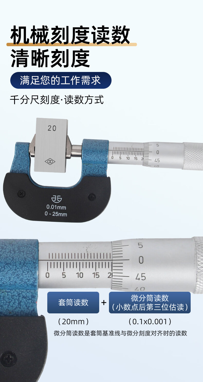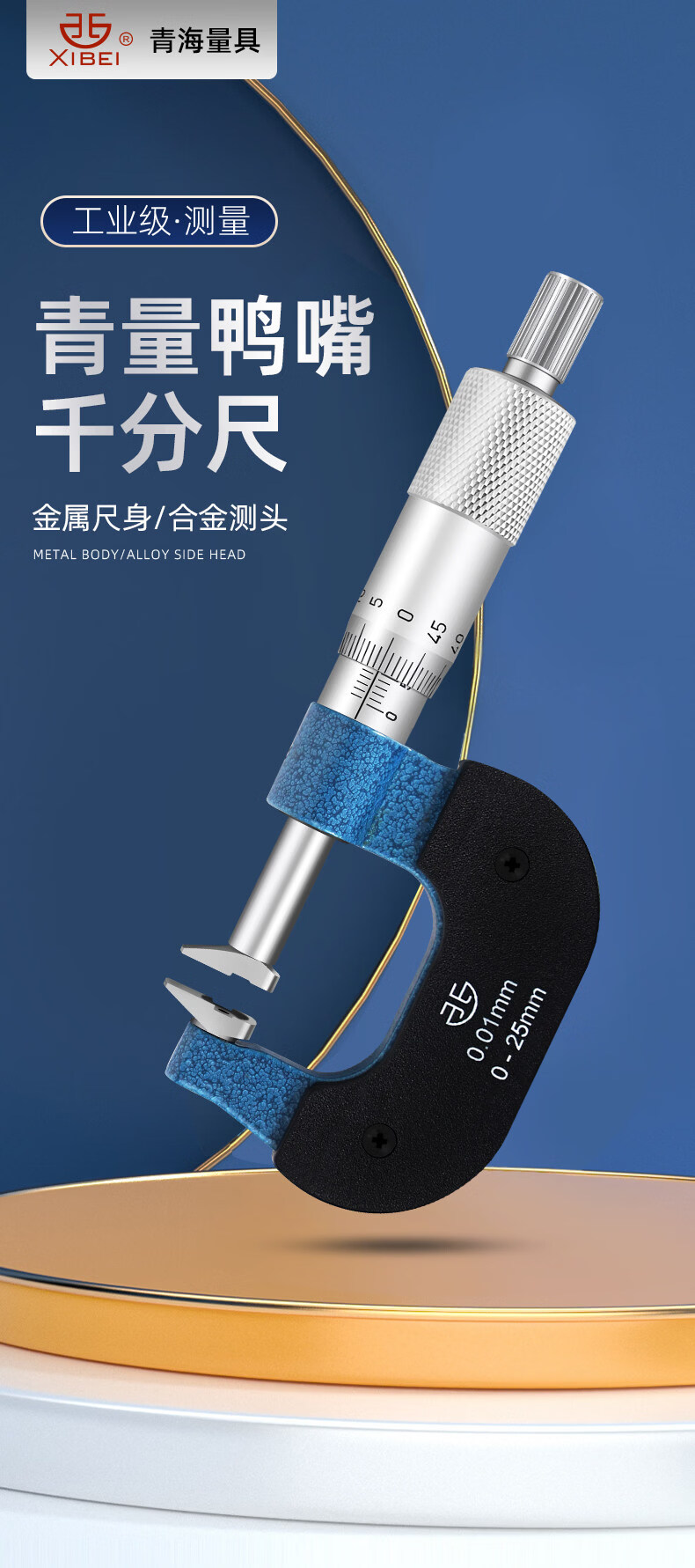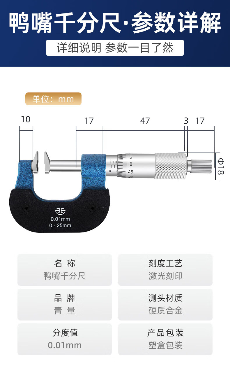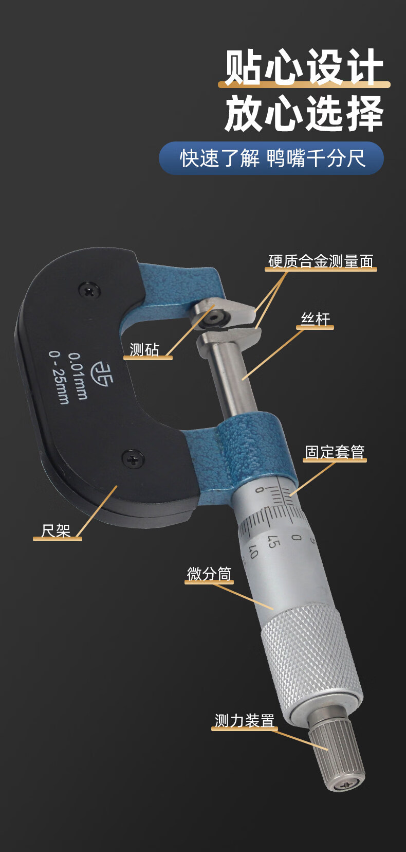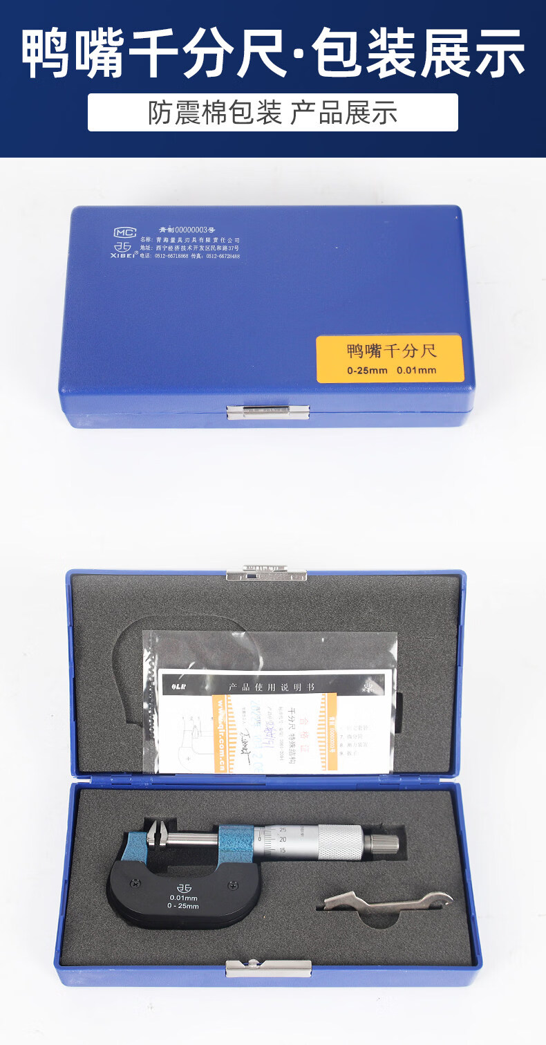 Keliang Qingdao duckbill micrometer high-precision 0.01 mechanical long-bill type outer diameter micrometer outer diameter measurement gear step duckbill micrometer 25-50mm
