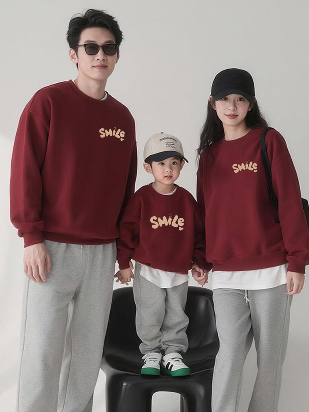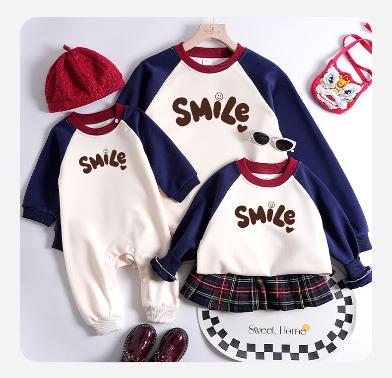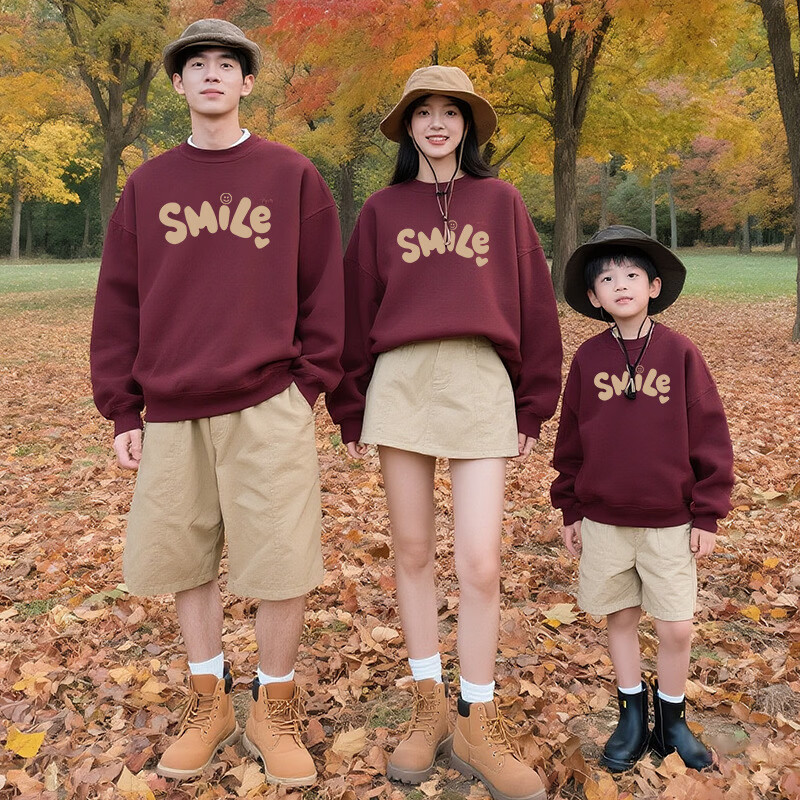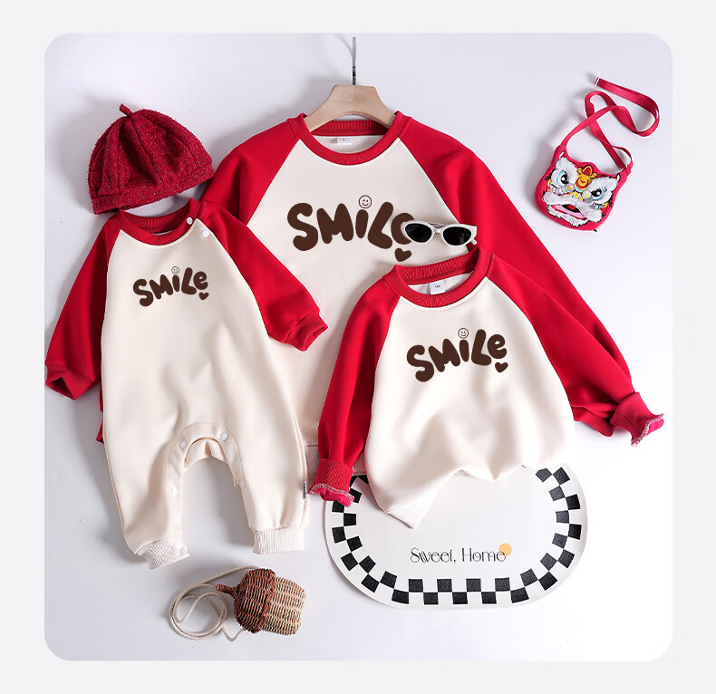 G.duck New Year parent-child wear sweatshirt 2026 autumn and winter dopamine color family of three long-sleeved letter children's wear activity top trendy hot sale velvet red - large picture 195 4XL