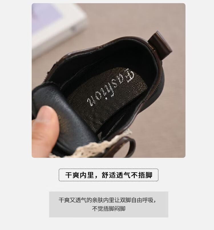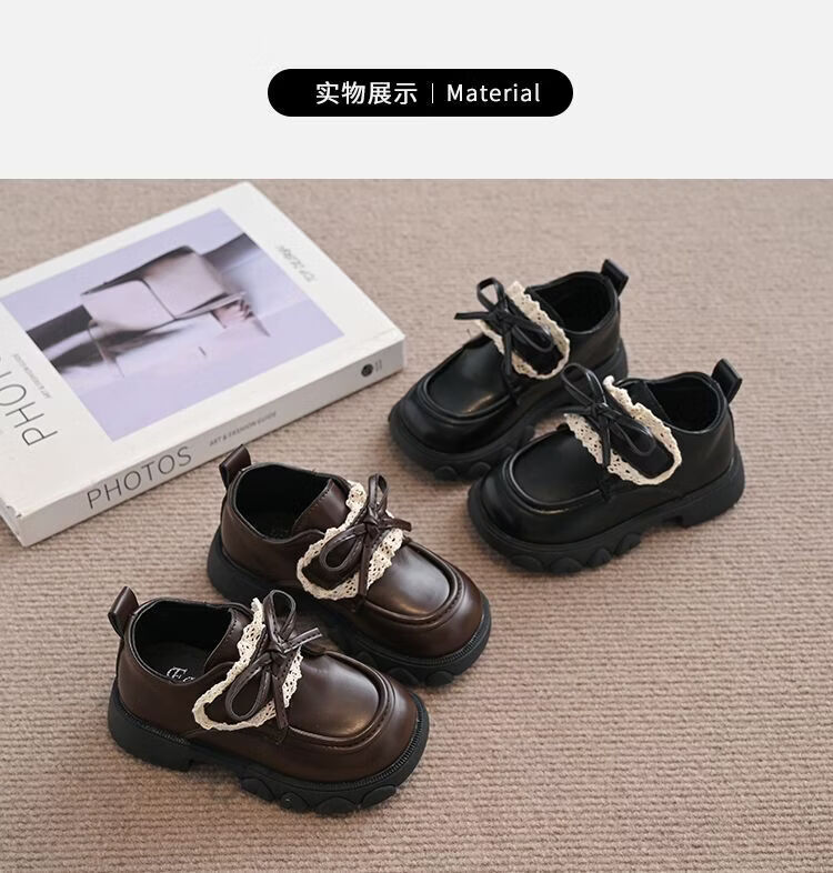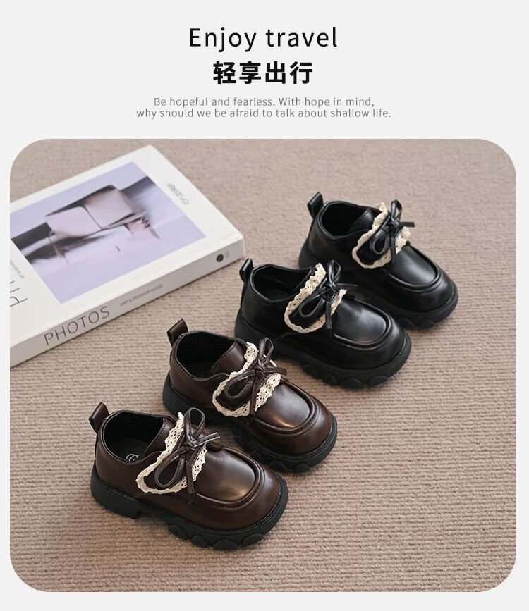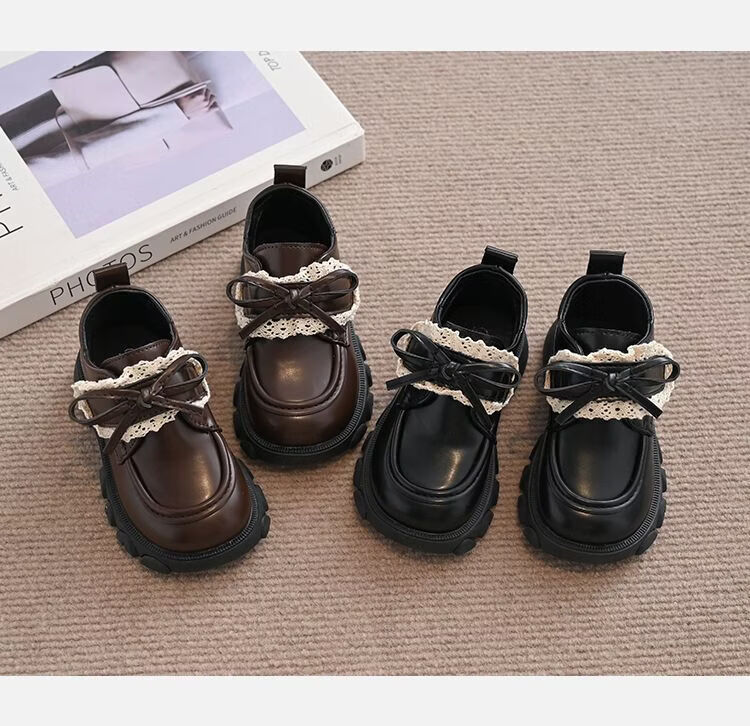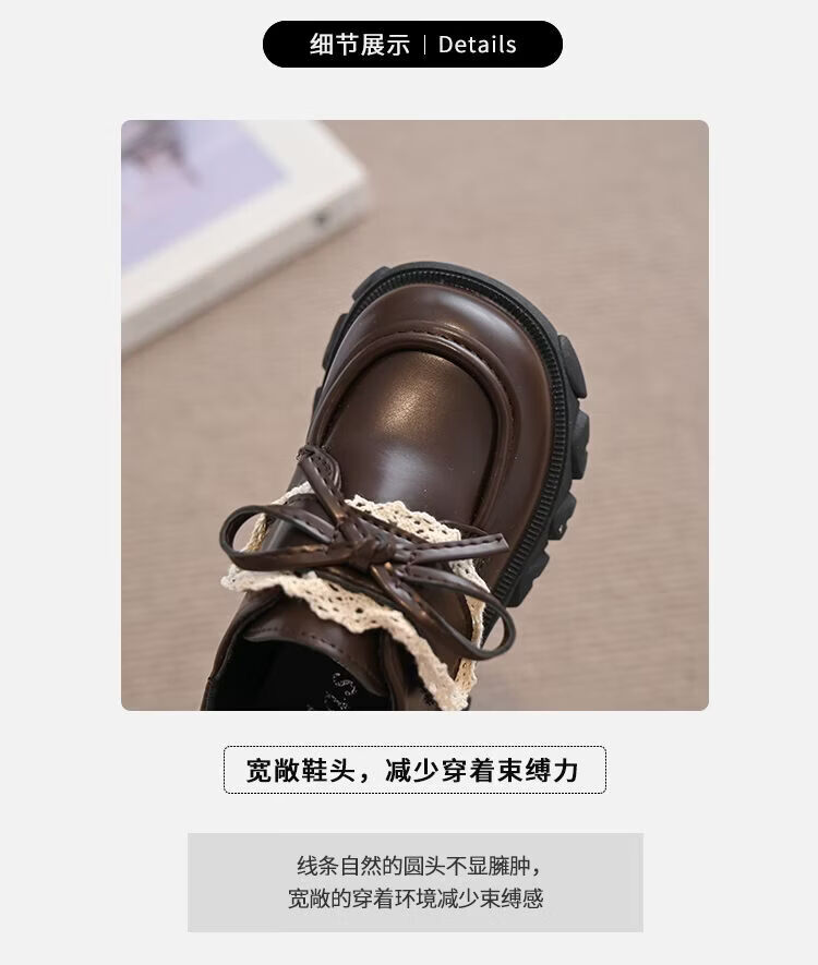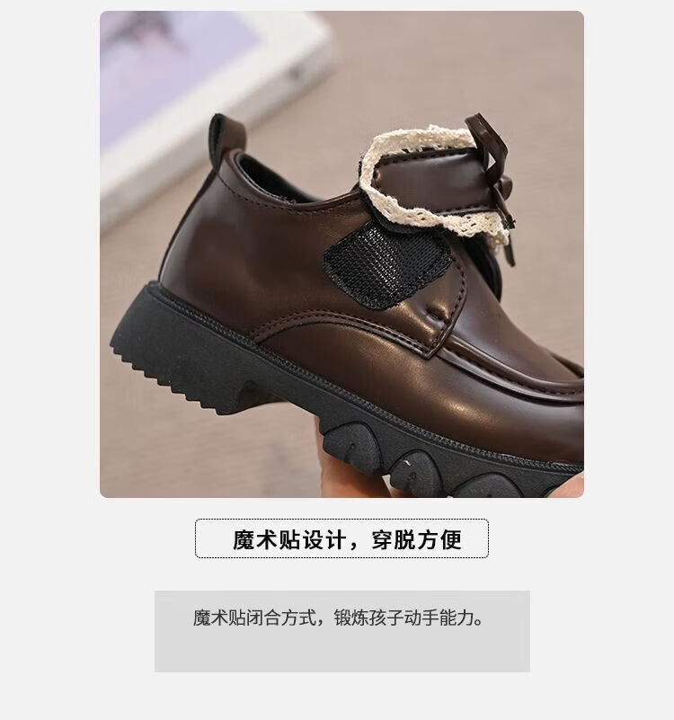 NAOISKEY Naoski plus velvet warm girls' leather shoes, autumn and winter lace bow, soft-soled princess shoes, loafers for outer wear, brown 34, inner length 20.8cm