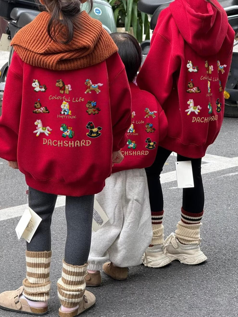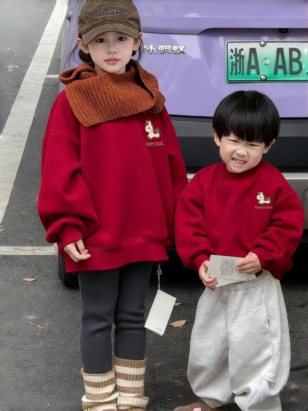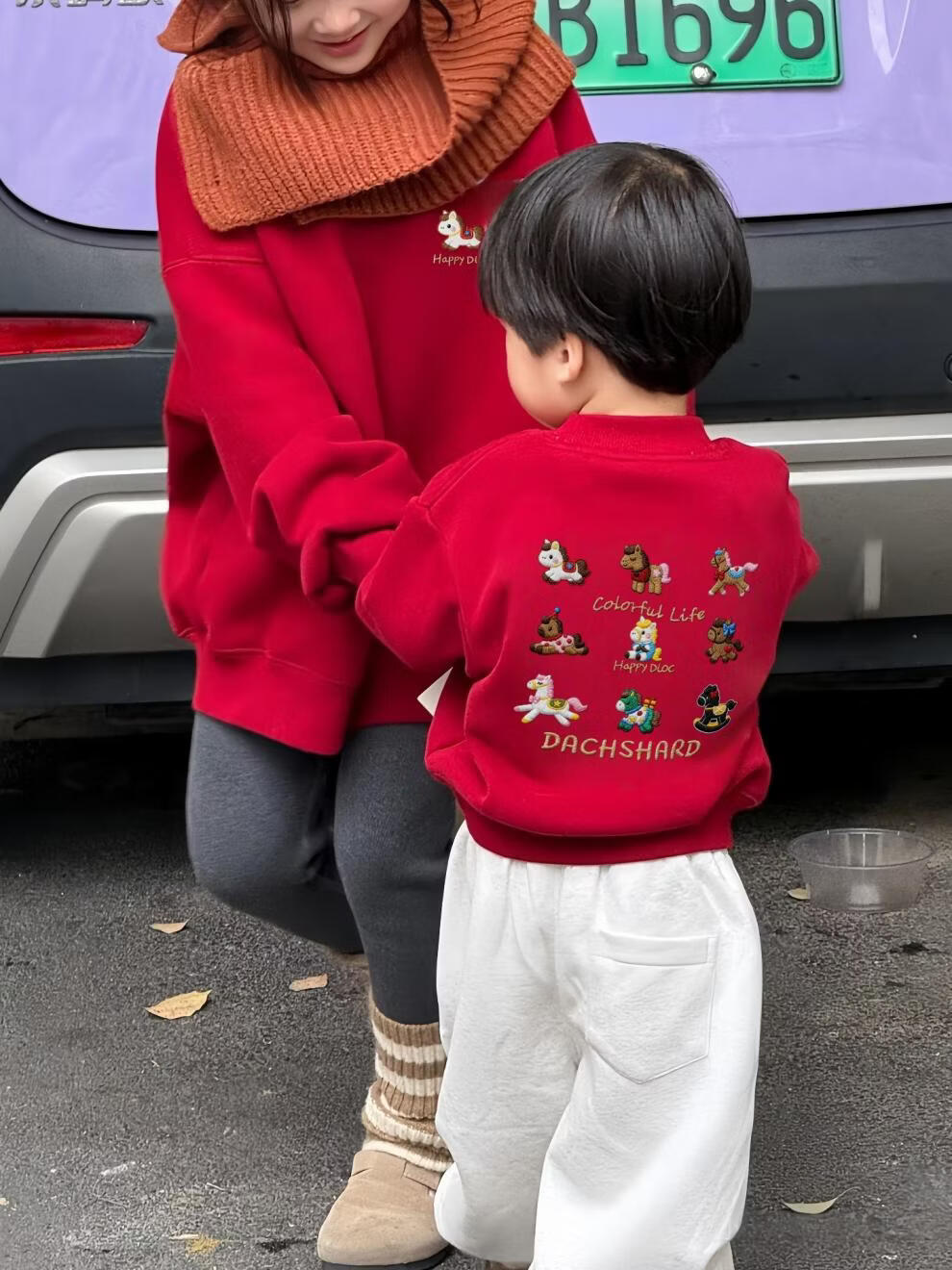 G.duck New Year of the Horse parent-child wear children's velvet sweatshirt new autumn and winter for a family of three father, son, mother and daughter New Year's celebration clothing Hot sale round neck version velvet sweatshirt 140 cm