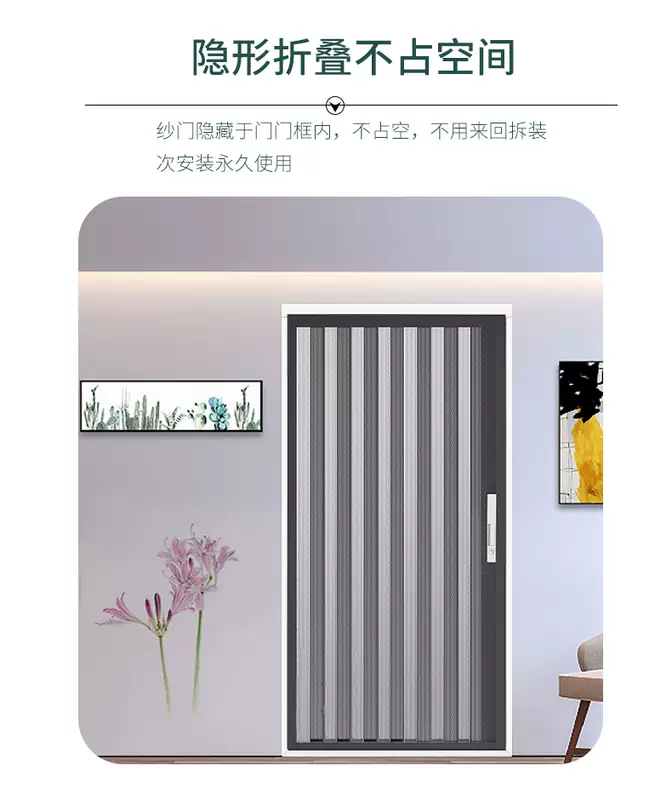 Yusenyi folding King Kong mesh anti-theft screen door anti-mosquito and anti-rat retractable push-pull sand door household aluminum alloy invisible screen door aluminum alloy anti-theft screen door white frame