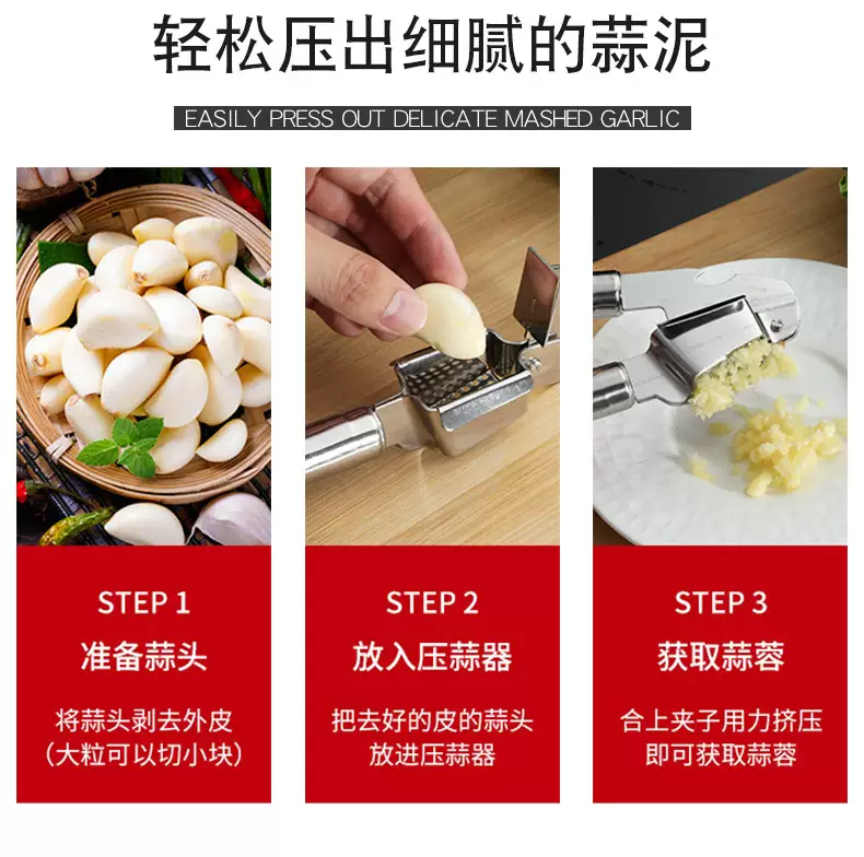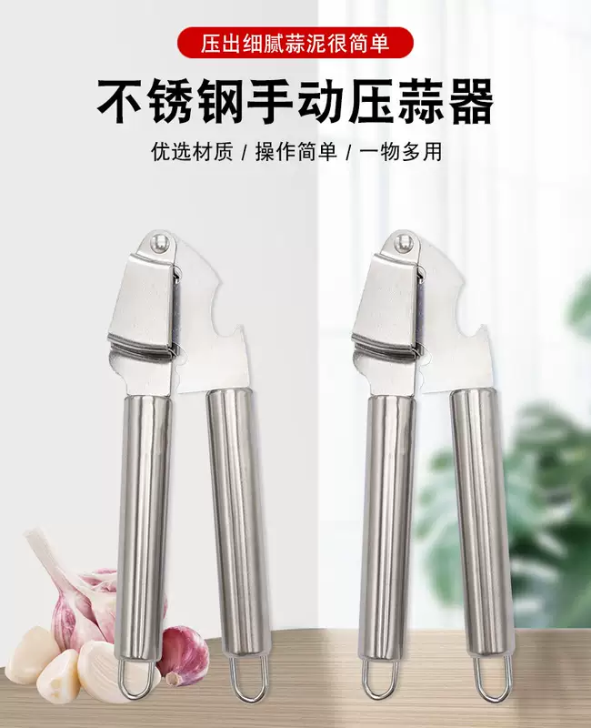 Yusenyi manual garlic press, stainless steel garlic masher, household kitchen garlic pounder, garlic peeler, garlic squeezer, garlic peeler, round tube garlic press (pack of 2)