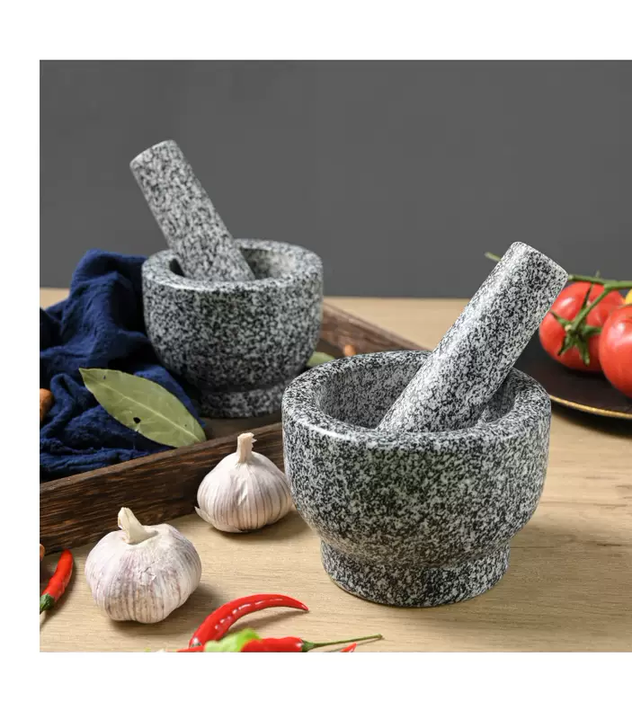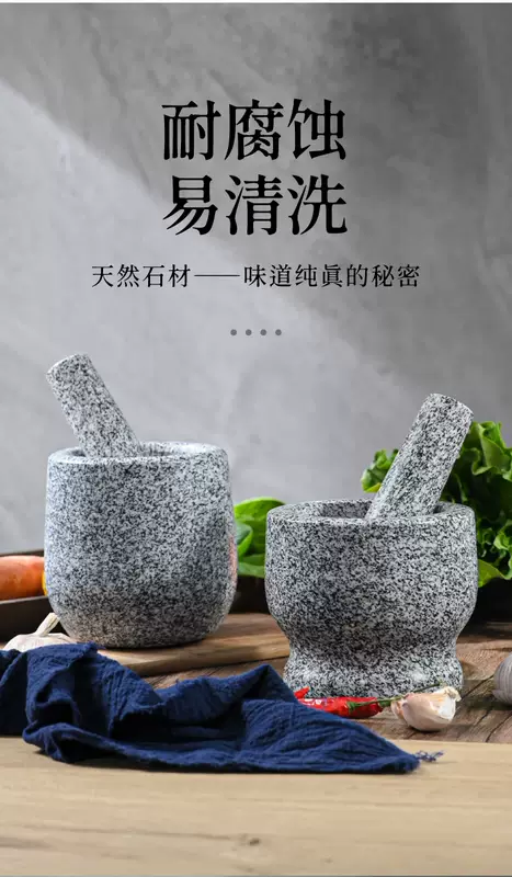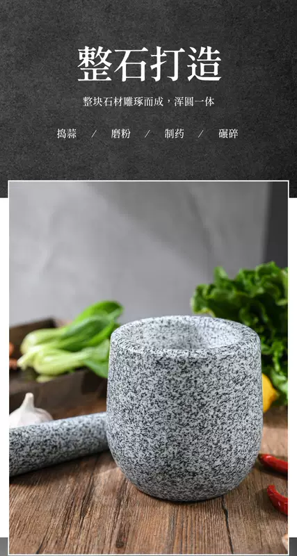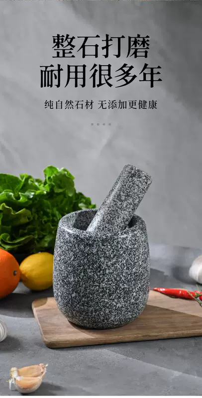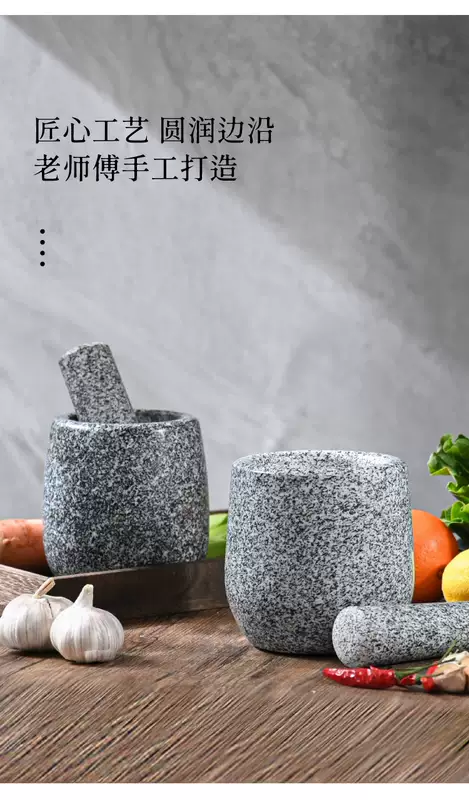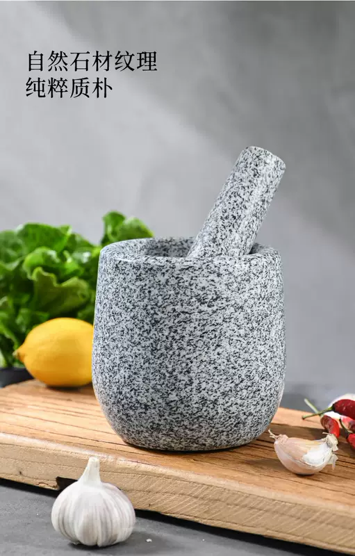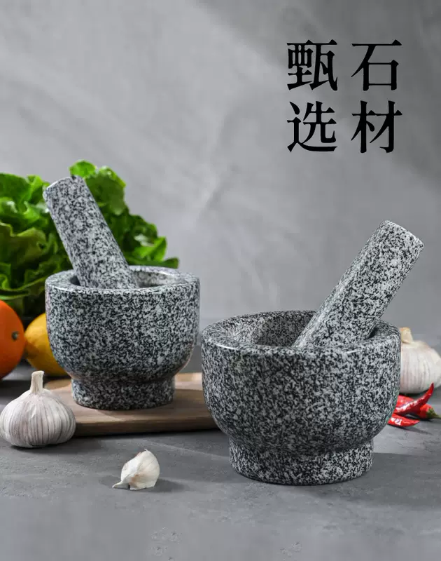 Yusenyi Natural Household Garlic Press Stone Garlic Mortar Pound Medicine Jar Grinder Large Stone Mortar Garlic Kitchenware Garlic Peeler Polished Black Deepened and Heightened Comes with Lid