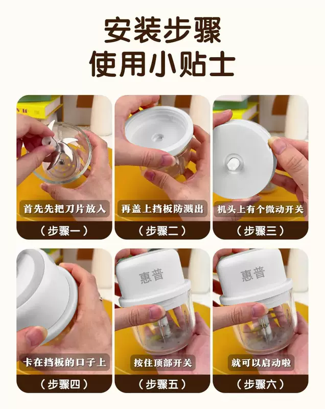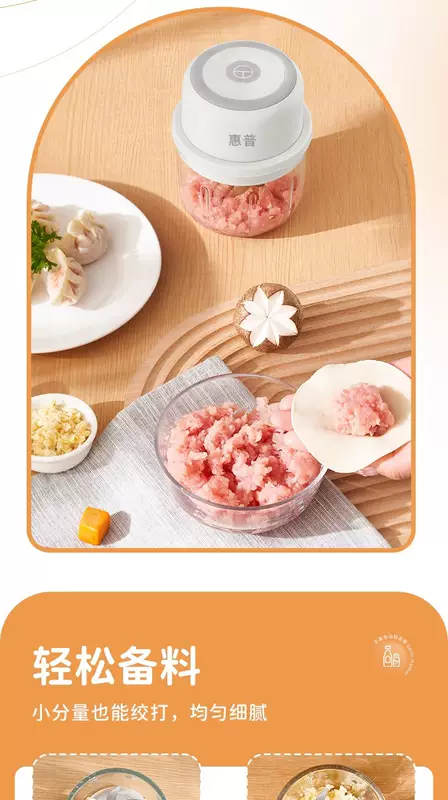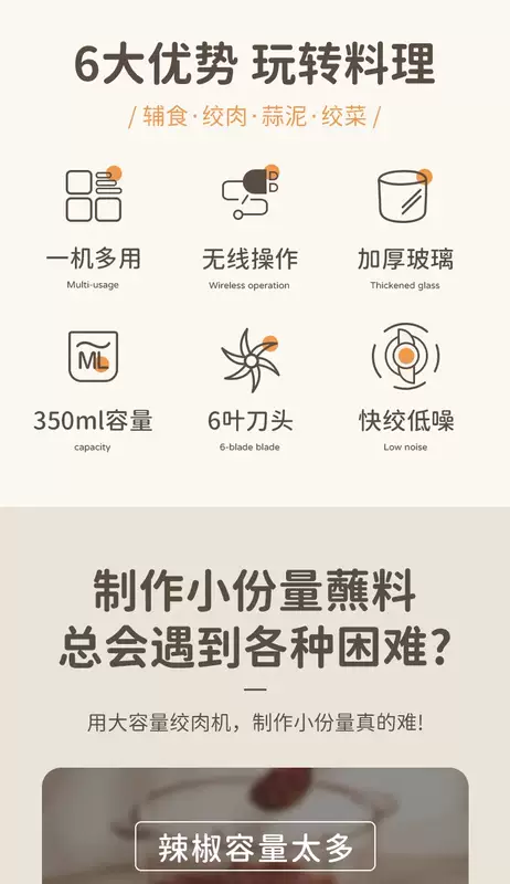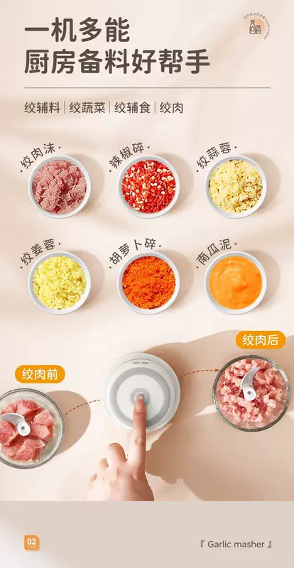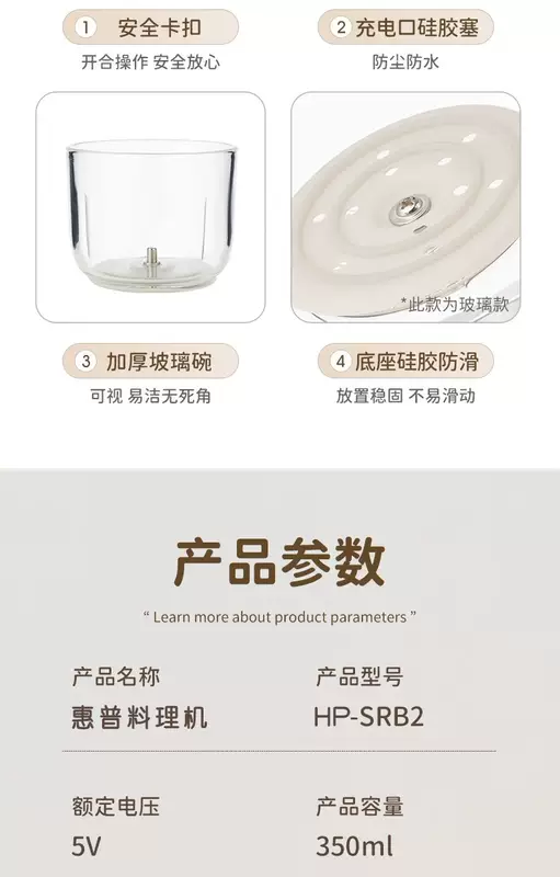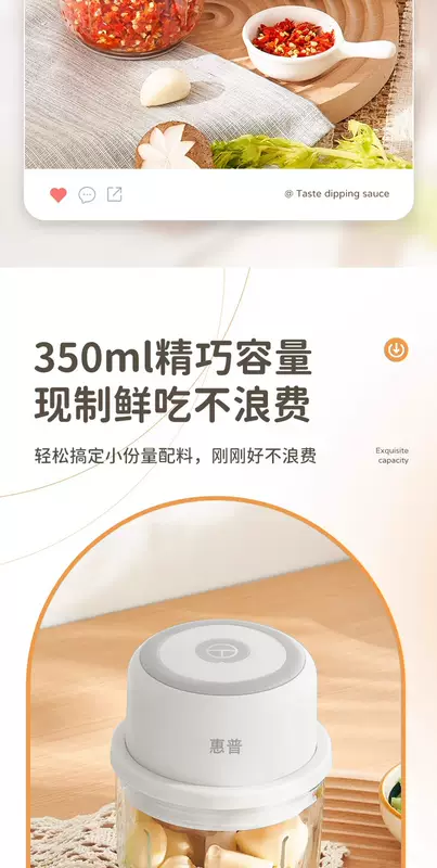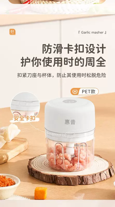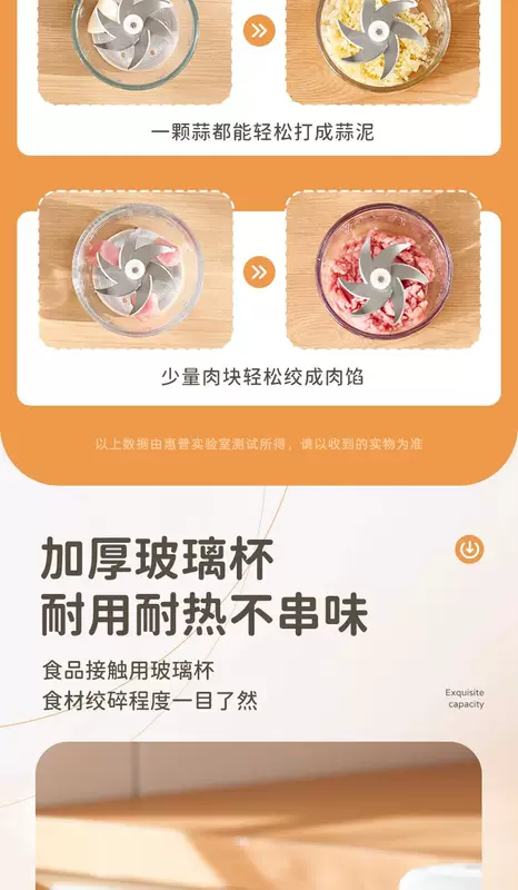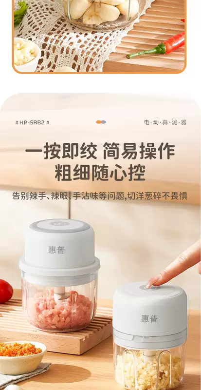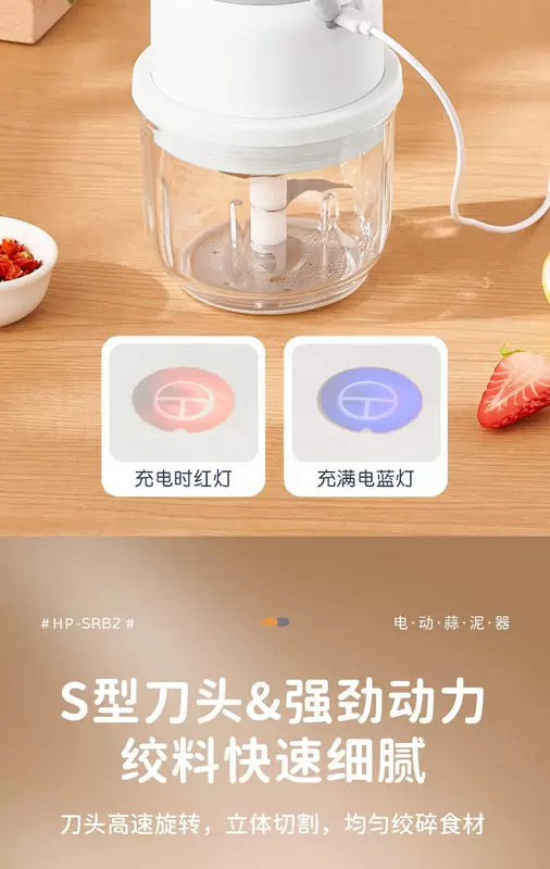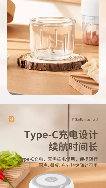 Yusenyi cordless electric garlic mincer, thickened glass model, garlic crusher, kitchen food processor, powerful plug-in model, 10 blades, thickened glass, strong power