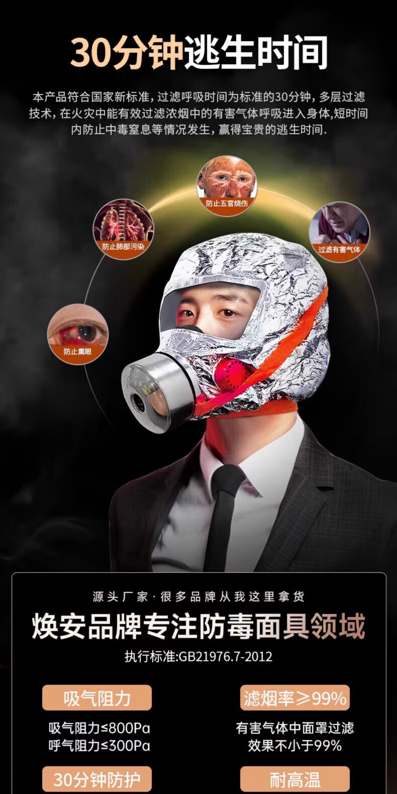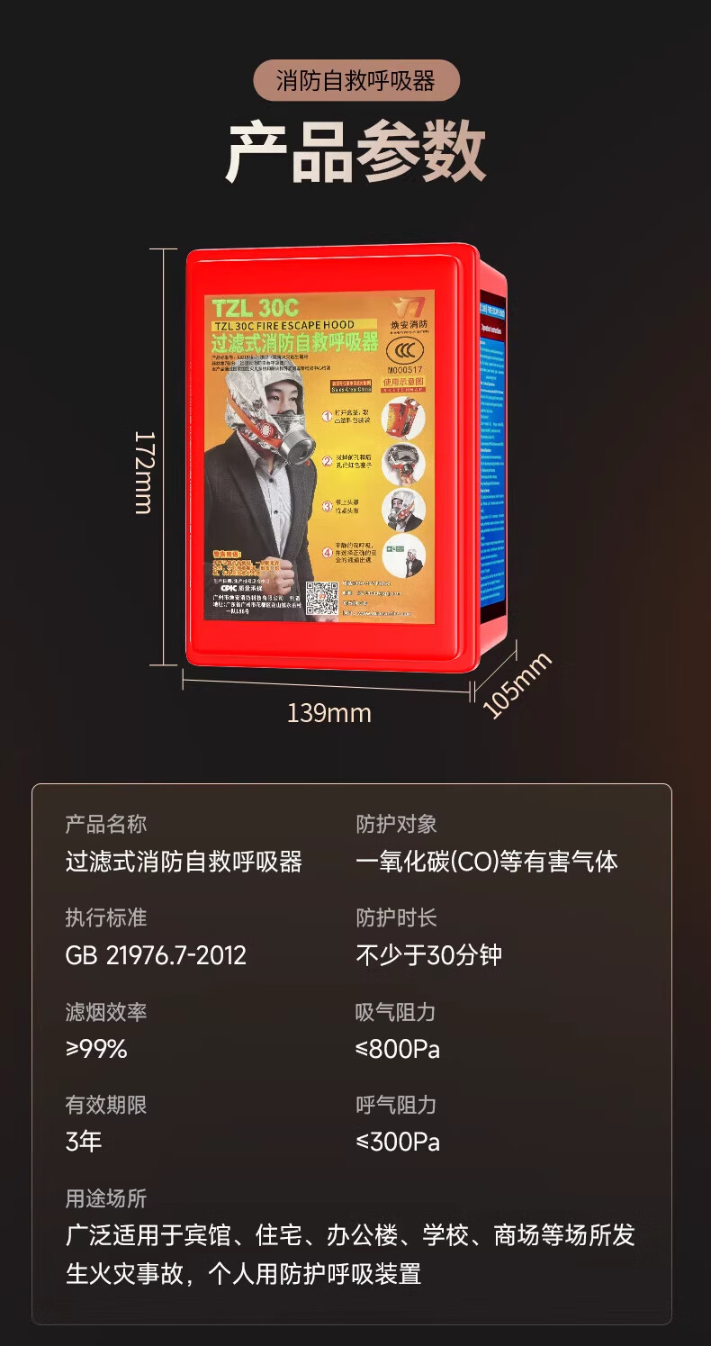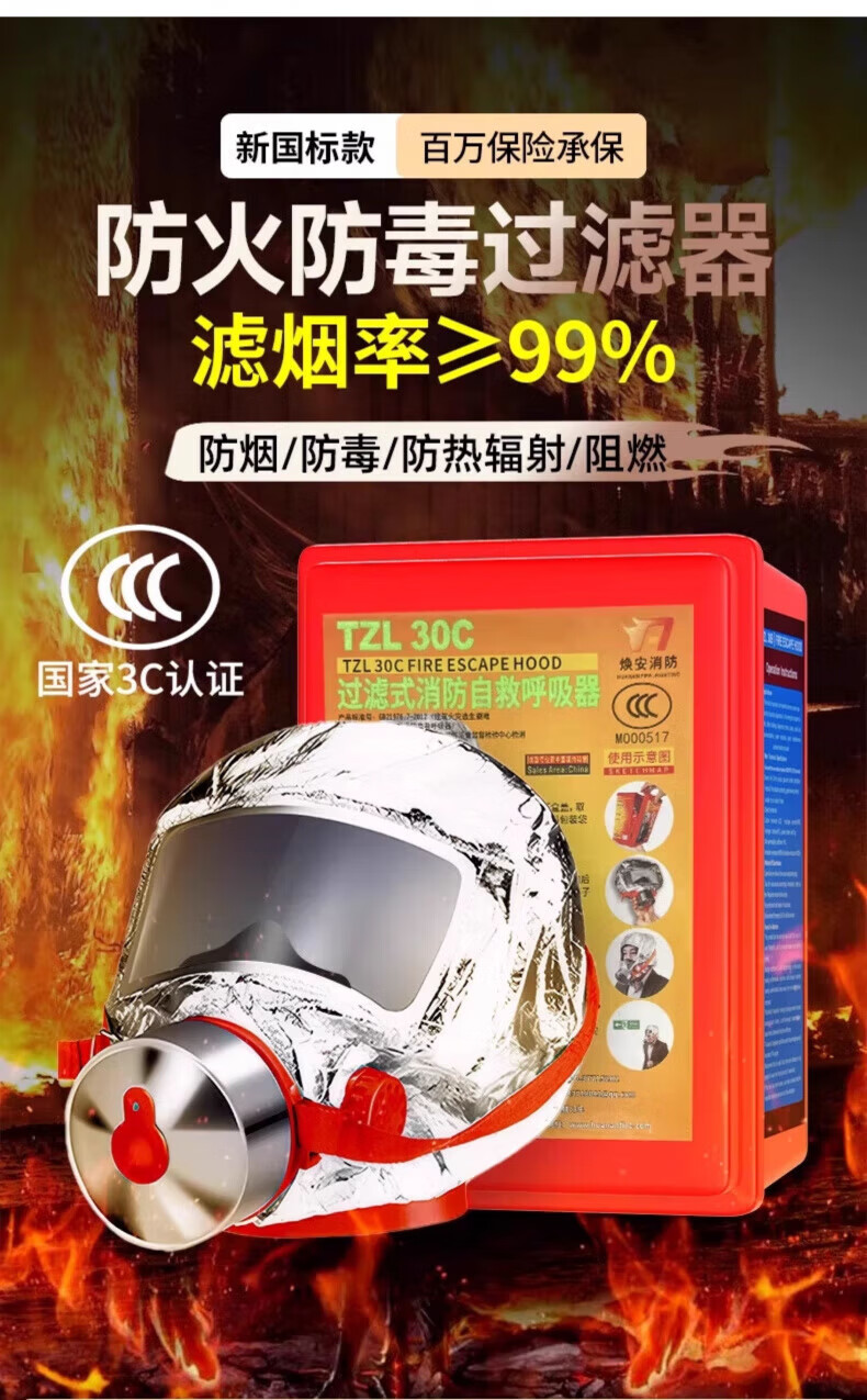 Fire mask, gas mask, 3C certified fire-proof and smoke-proof, hotel escape self-rescue respirator, hotel home fire 1 mask + 1 flashlight set, hotel bag
