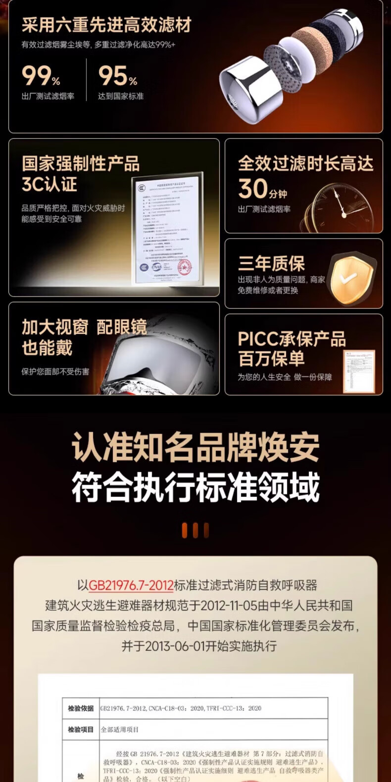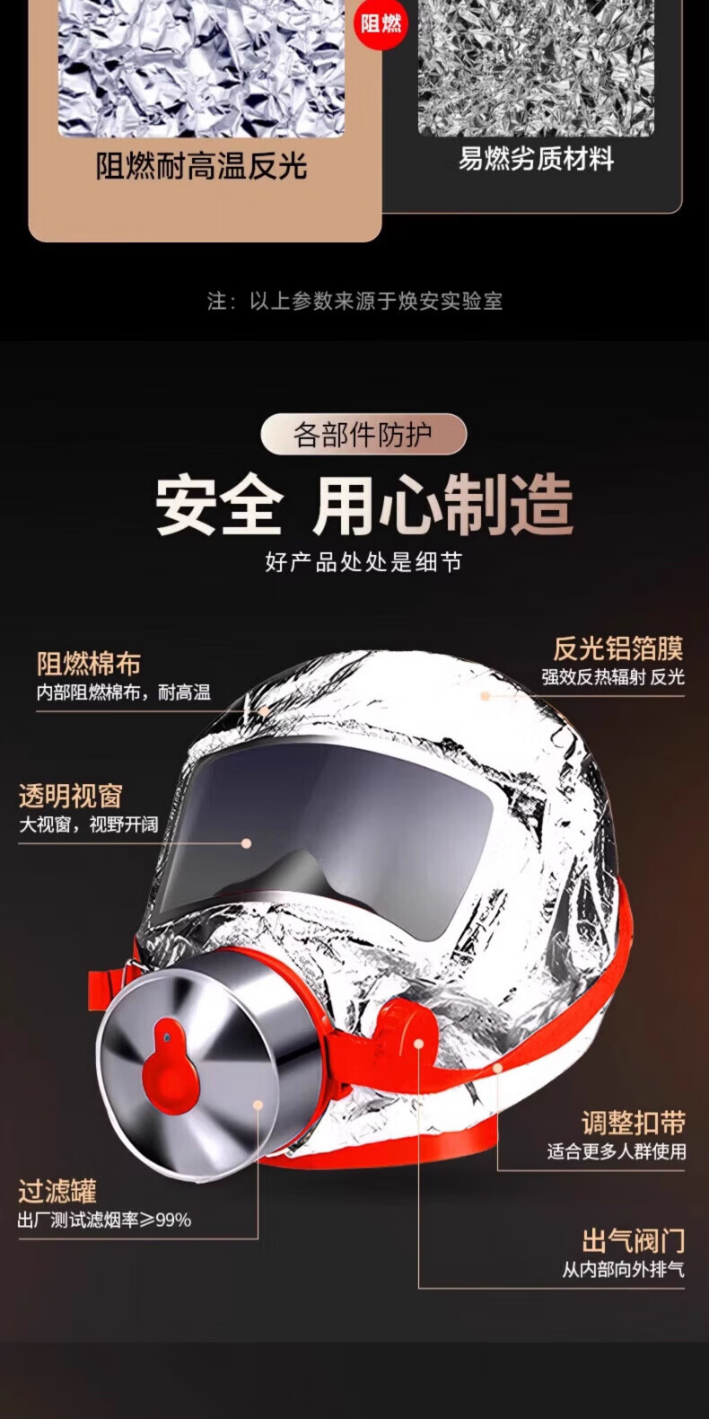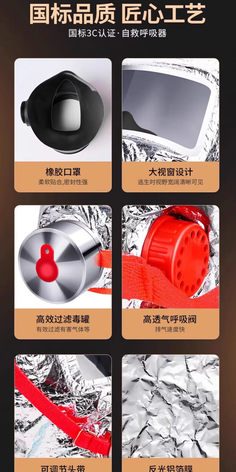 Fire mask, gas mask, 3C certified fire-proof and smoke-proof, hotel escape self-rescue respirator, hotel home fire 1 mask + 1 flashlight set, hotel bag