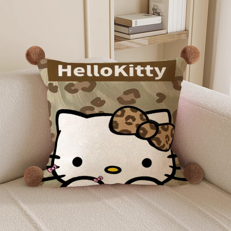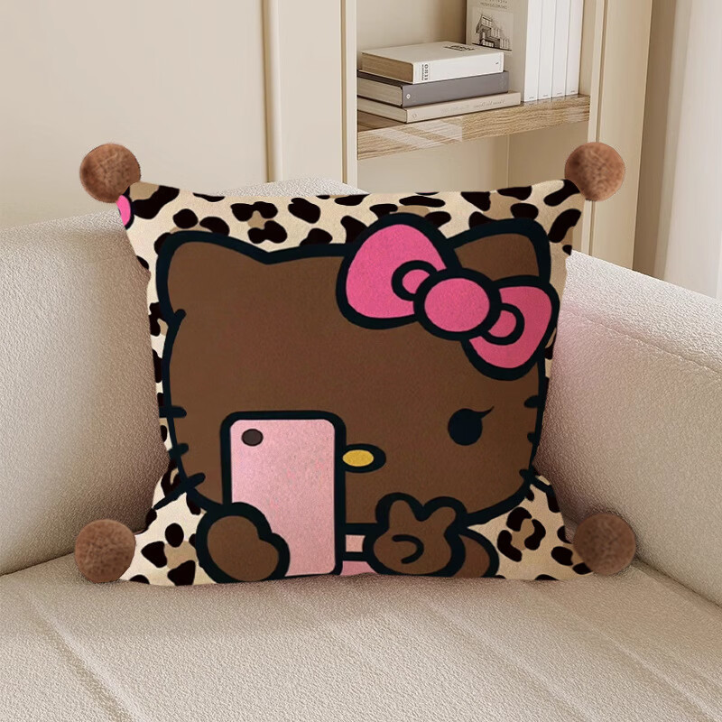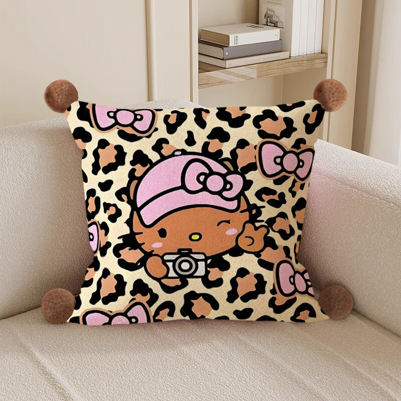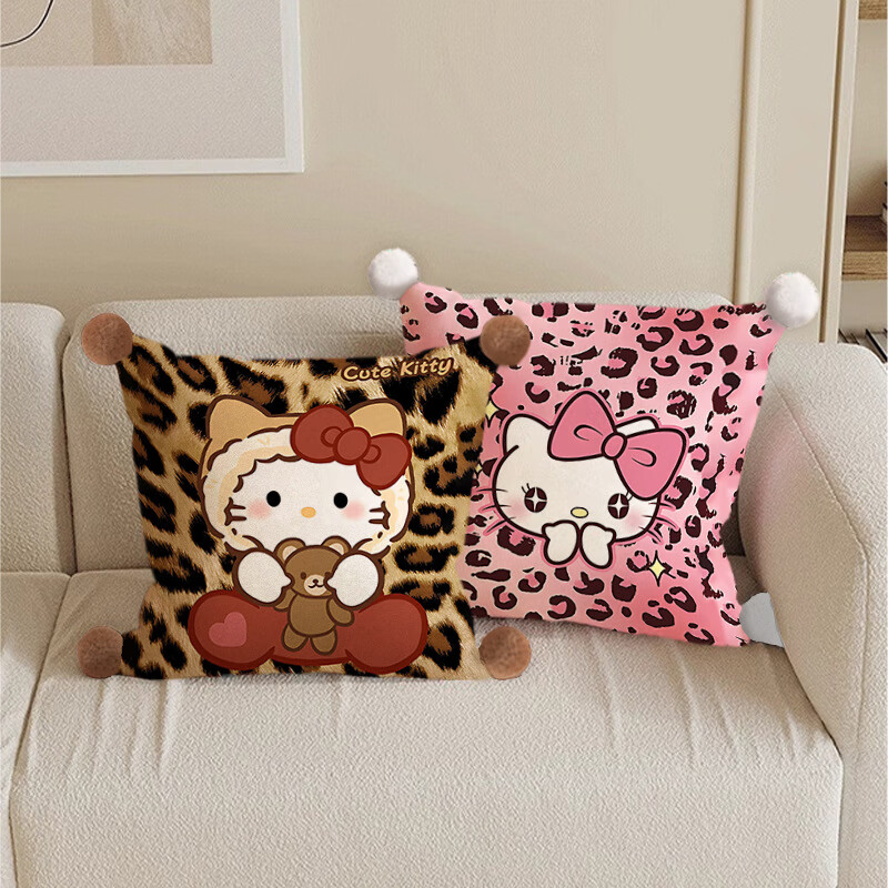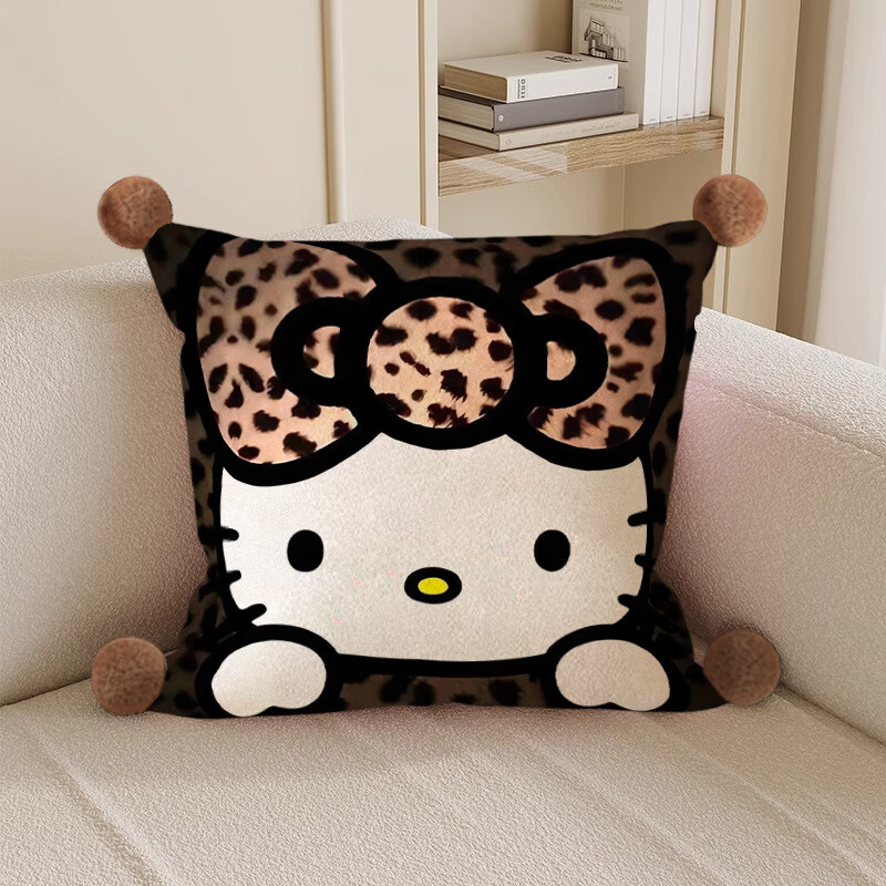 Hello, strange guy, KT cat pillow, cute cartoon animation peripheral cushion pillow, student dormitory nap bed sleeping gift, leopard print kt cat 3, white hair ball, double-sided pattern 35X35, pillowcase does not contain core