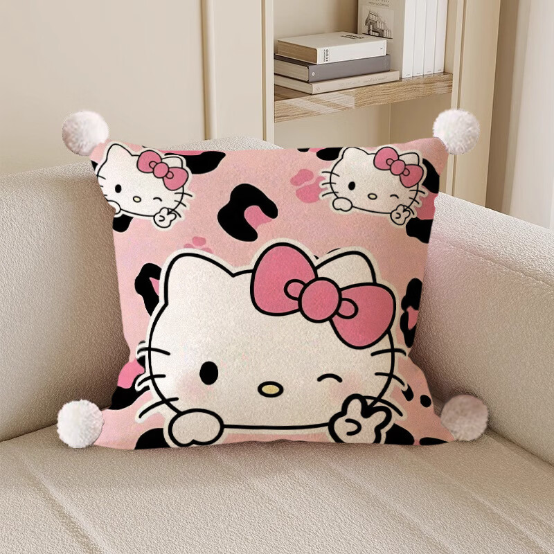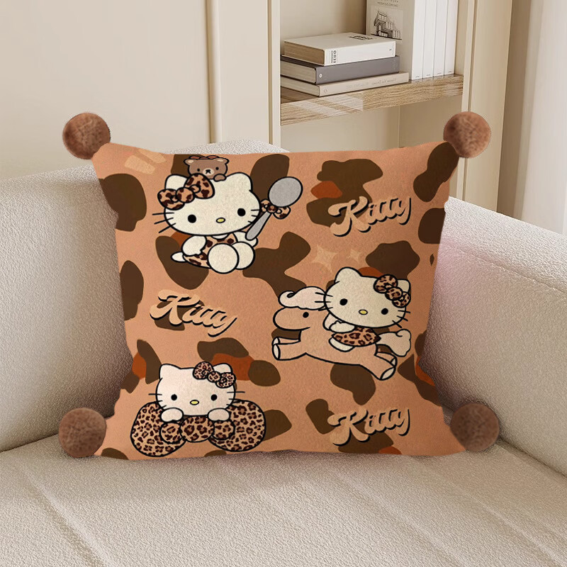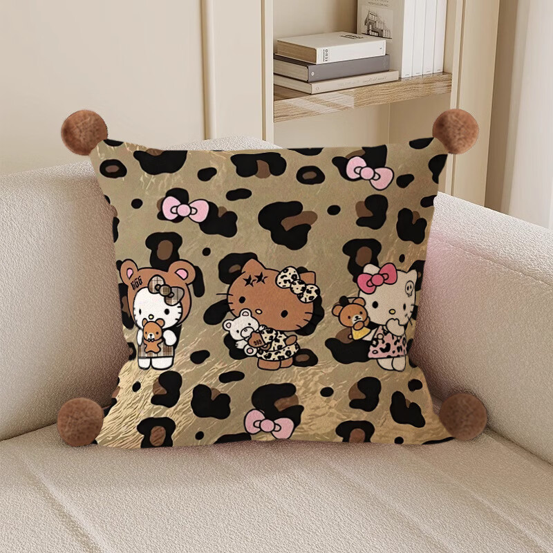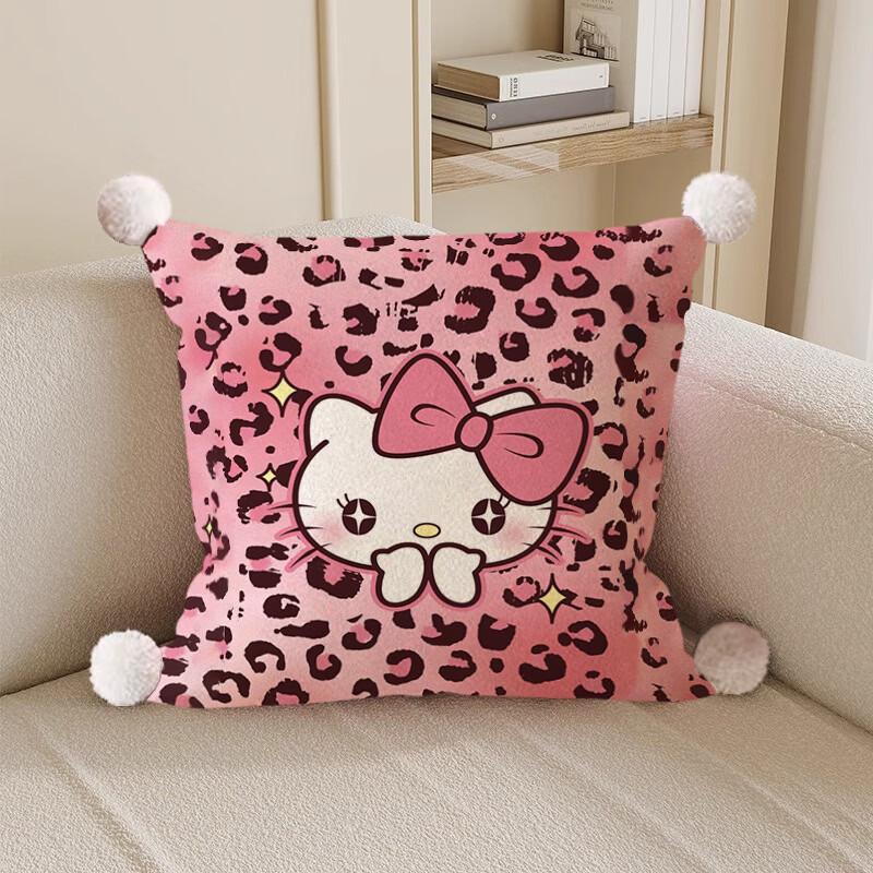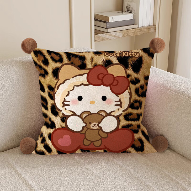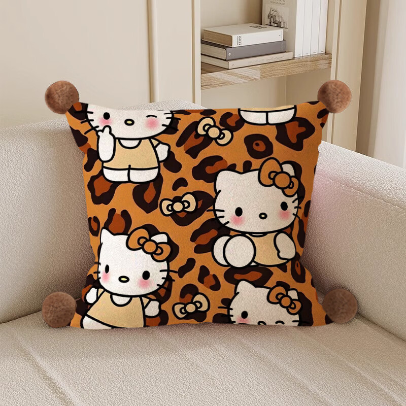 Hello, strange guy, KT cat pillow, cute cartoon animation peripheral cushion pillow, student dormitory nap bed sleeping gift, leopard print kt cat 3, white hair ball, double-sided pattern 35X35, pillowcase does not contain core