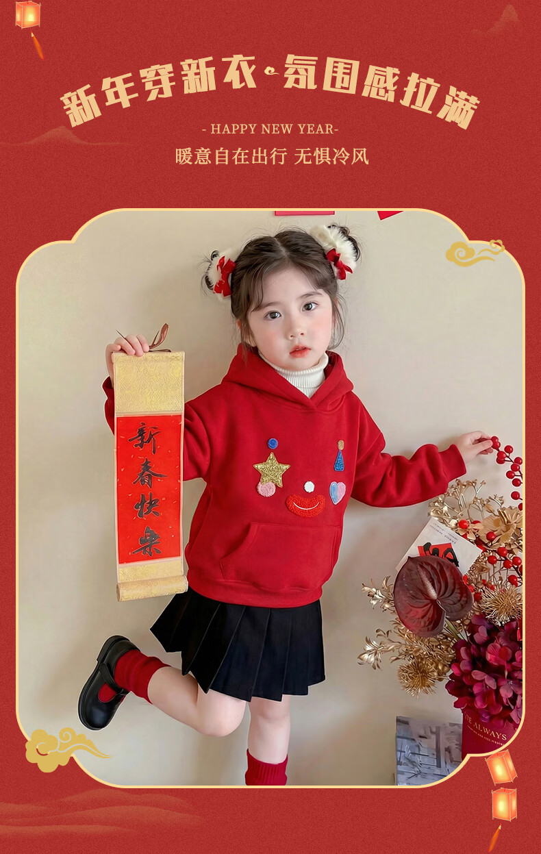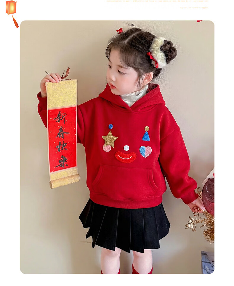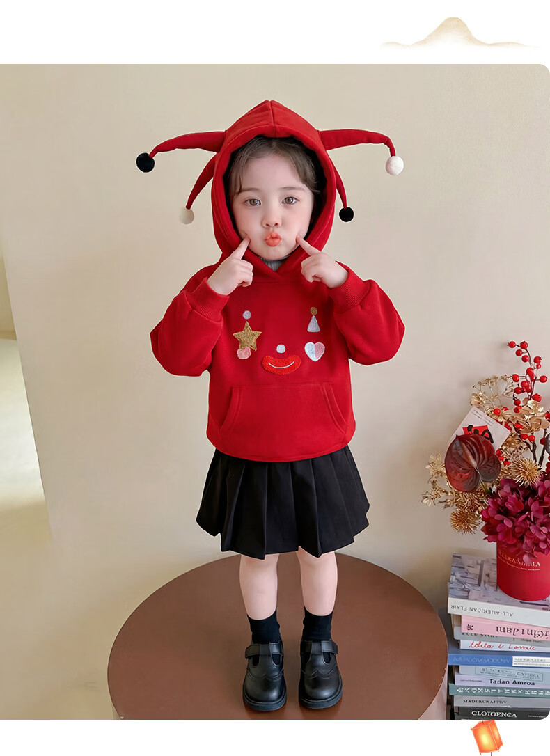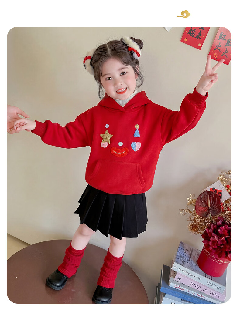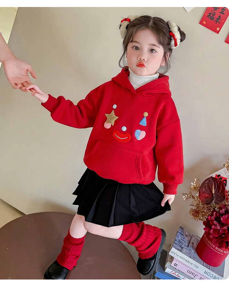G.duck New Year's greeting clothes for girls, velvet sweatshirt, winter 2026 new style, super nice festive top for children, baby red inner wear, red 120 cm
