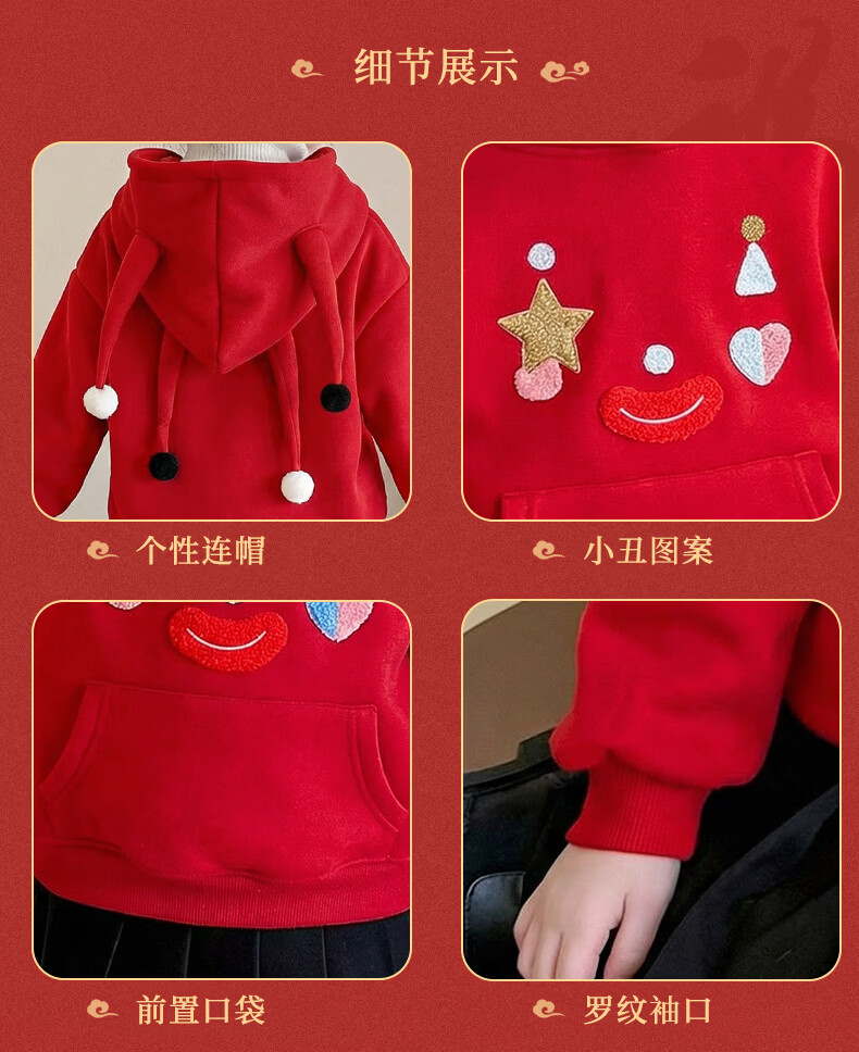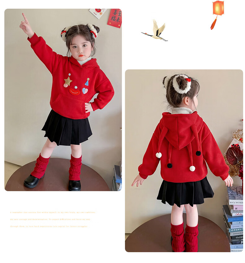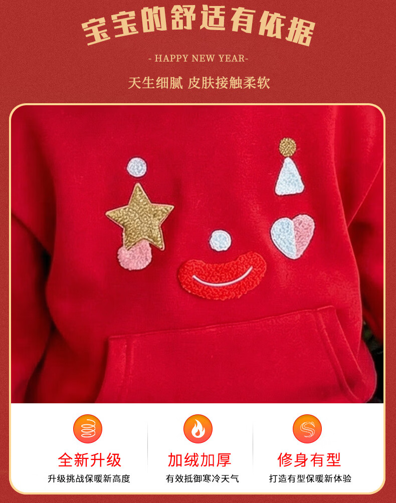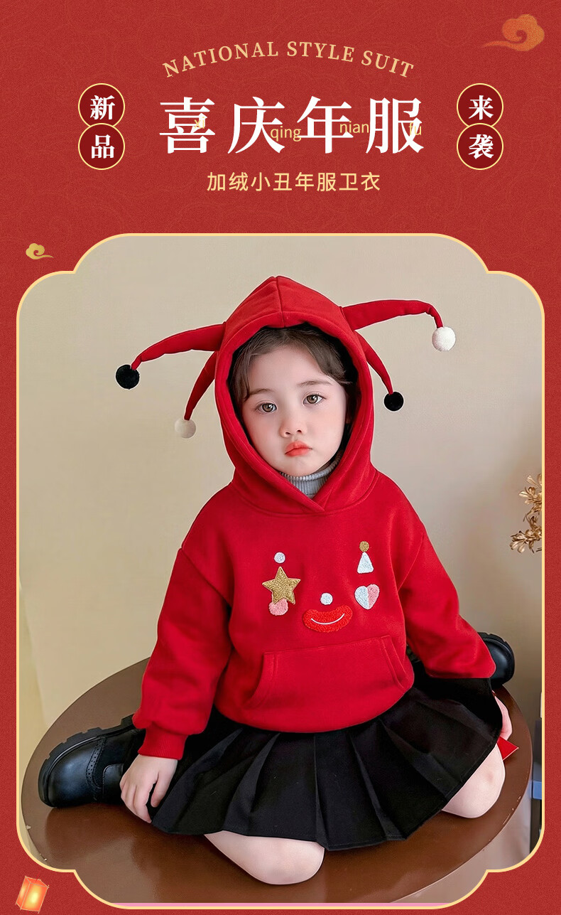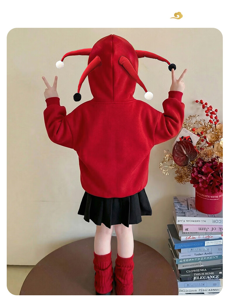 G.duck New Year's greeting clothes for girls, velvet sweatshirt, winter 2026 new style, super nice festive top for children, baby red inner wear, red 120 cm