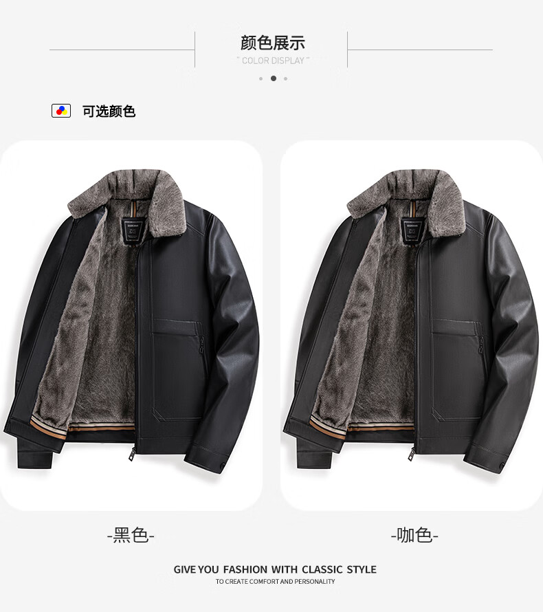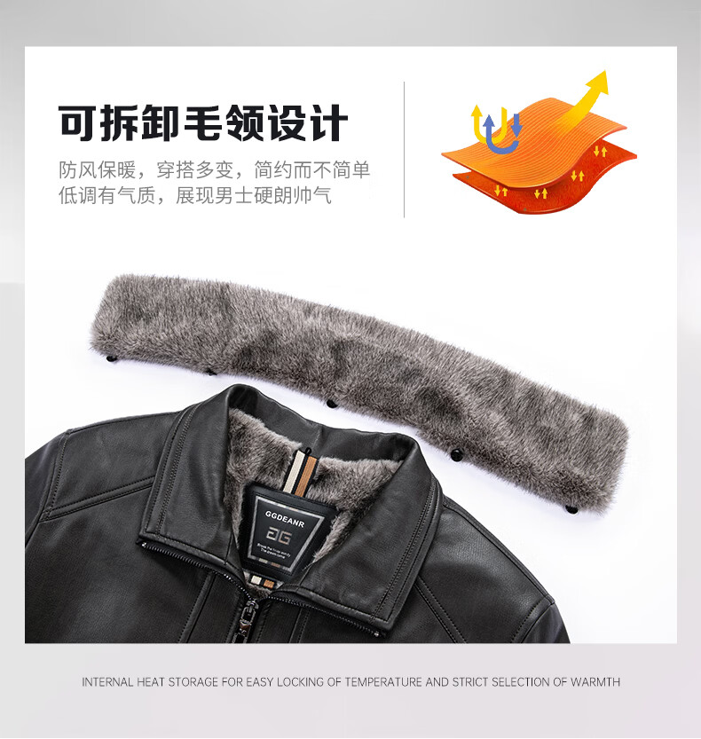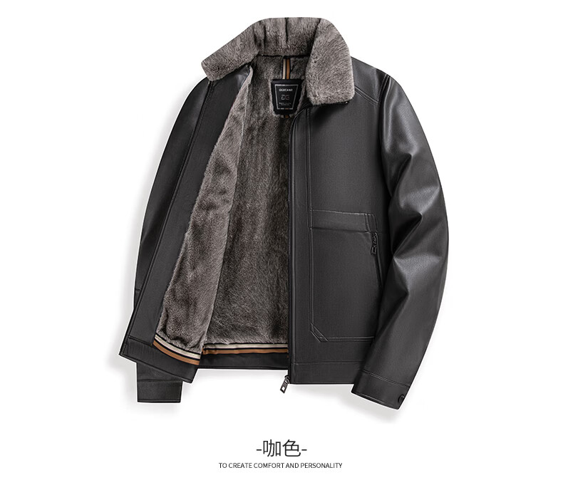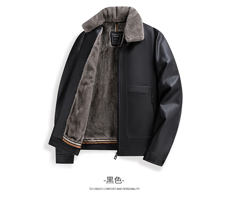 KBXNG Jinba middle-aged leather jacket men's winter new velvet thickened business casual fur collar leather jacket men's black removable fur collar M 95-115Jin Jin is equal to 0.5 kg