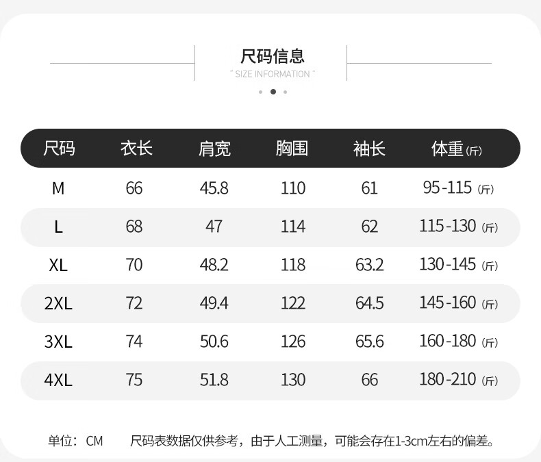 China (cm) 165 / 88-90 170 / 96-98 175 / 108-110 180 / 118-122 185 / 126-130