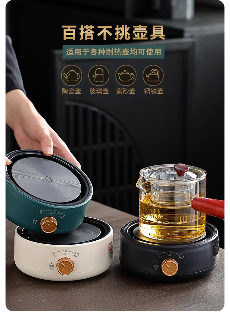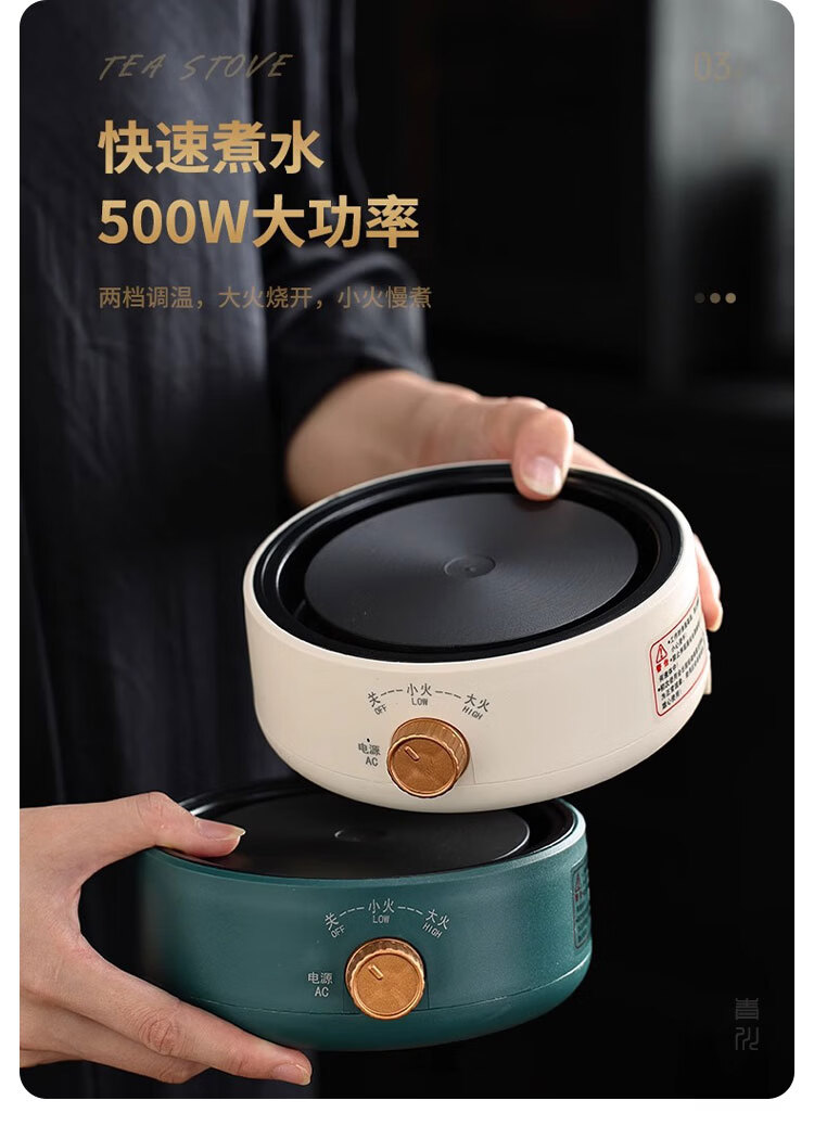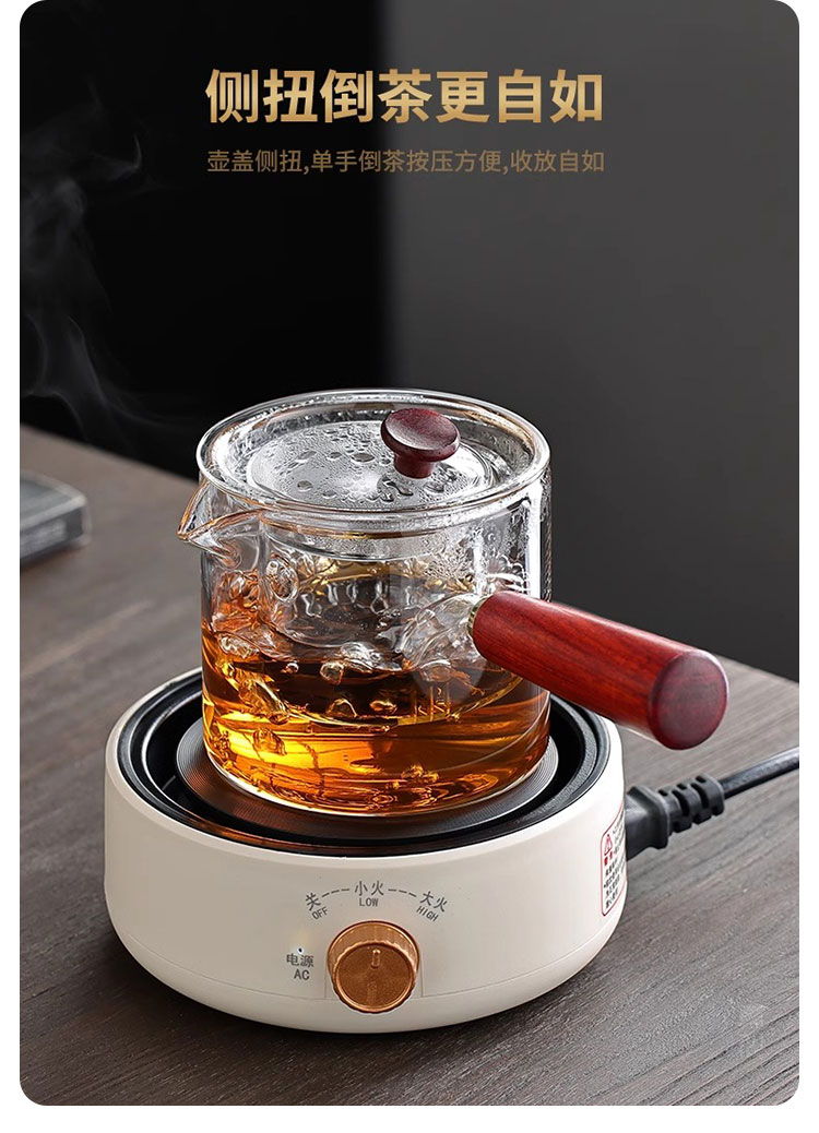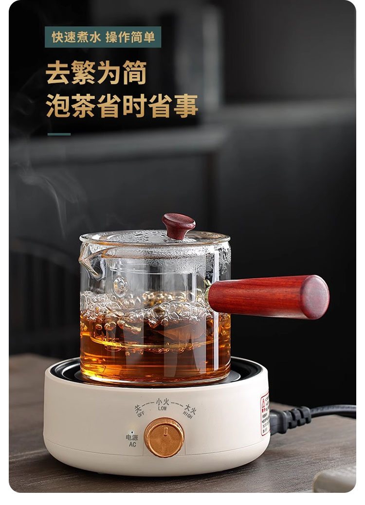 Tuojin imported high-quality electric stove from Japan, household tea-making stove, small induction stove, warm tea heating, warm tea stove, silent electric ceramic, digital display, off-white + rhyme_side handle pot_550ML