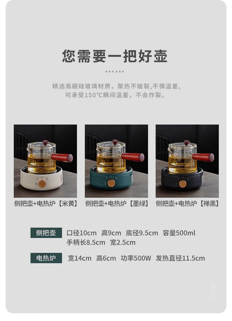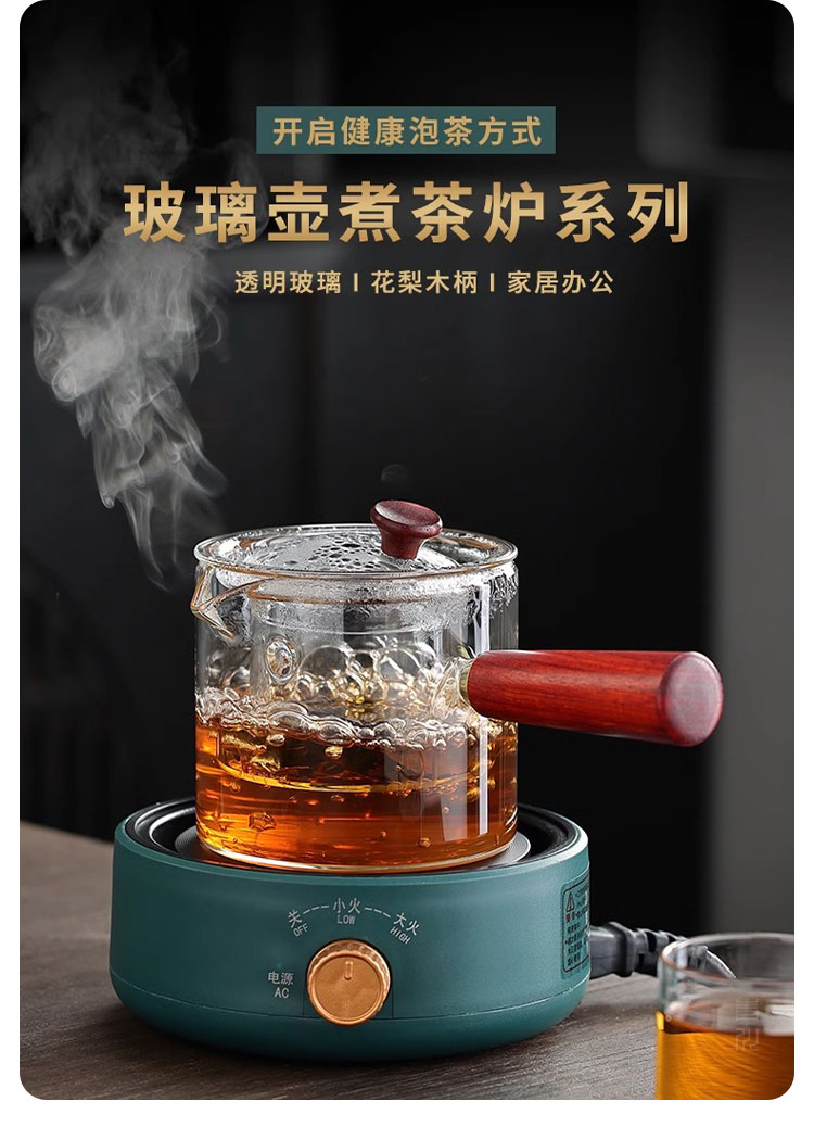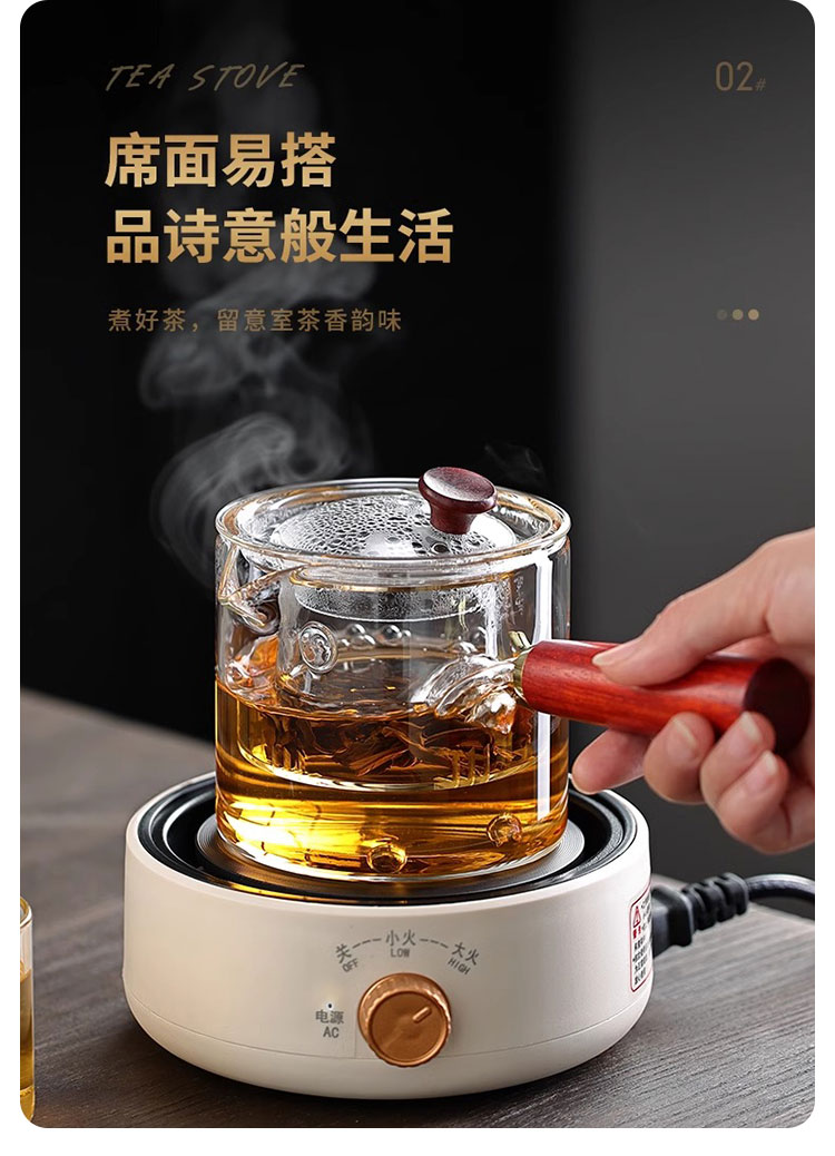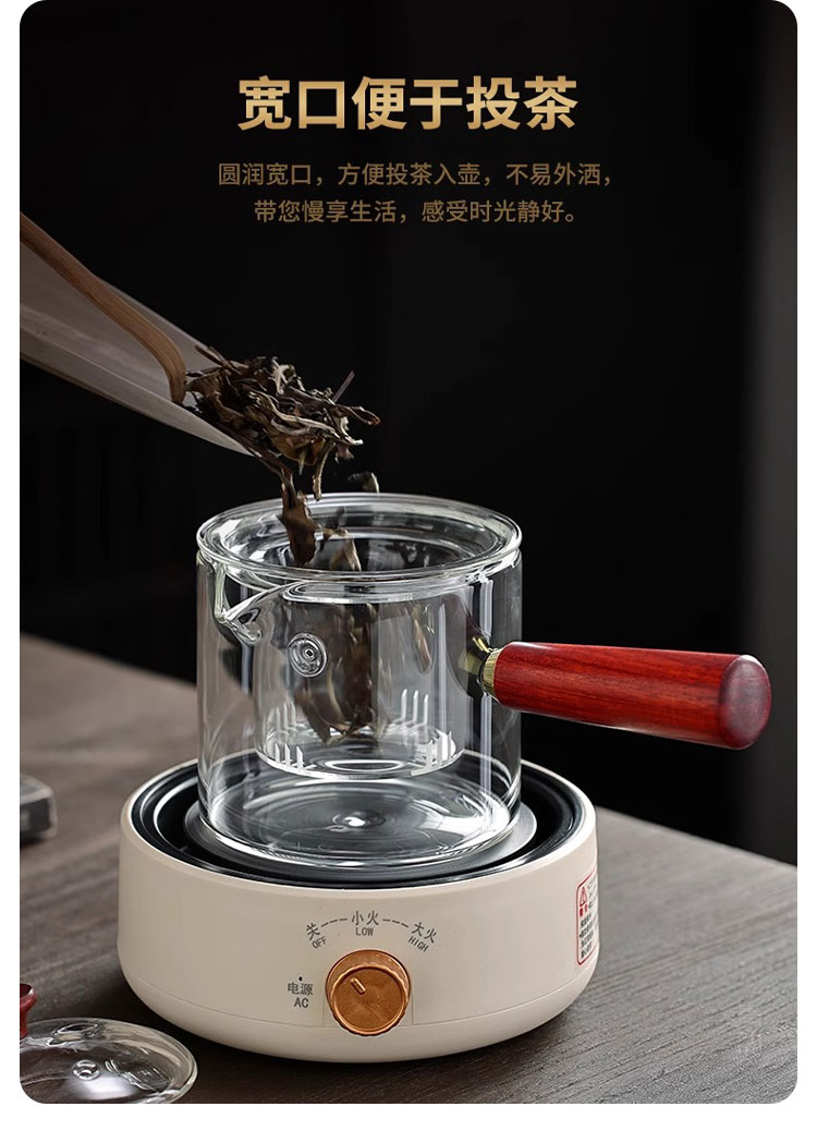 Tuojin imported high-quality electric stove from Japan, household tea-making stove, small induction stove, warm tea heating, warm tea stove, silent electric ceramic, digital display, off-white + rhyme_side handle pot_550ML