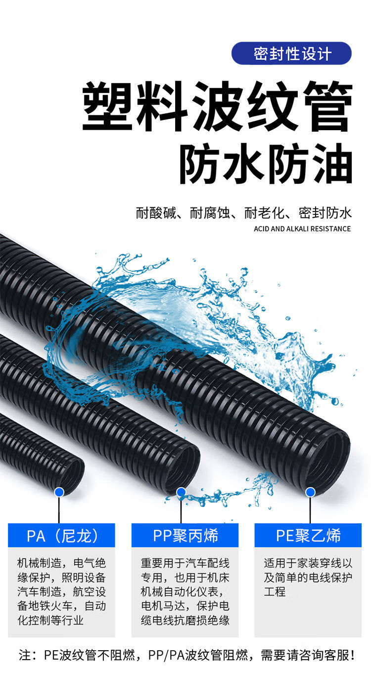 Ji Litian plastic corrugated pipe PA nylon PP waterproof flame retardant threaded pipe threading hose PE wire and cable protective sleeve pipe thickened PE-AD10/100 meters inner diameter 7mm