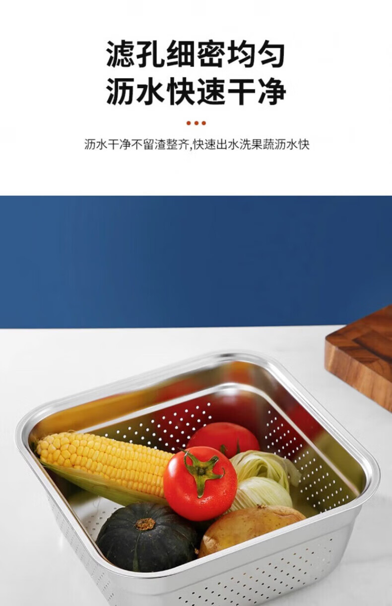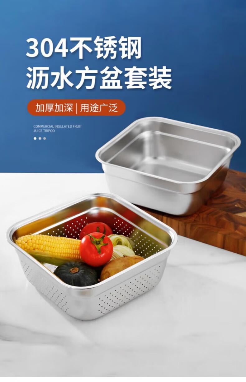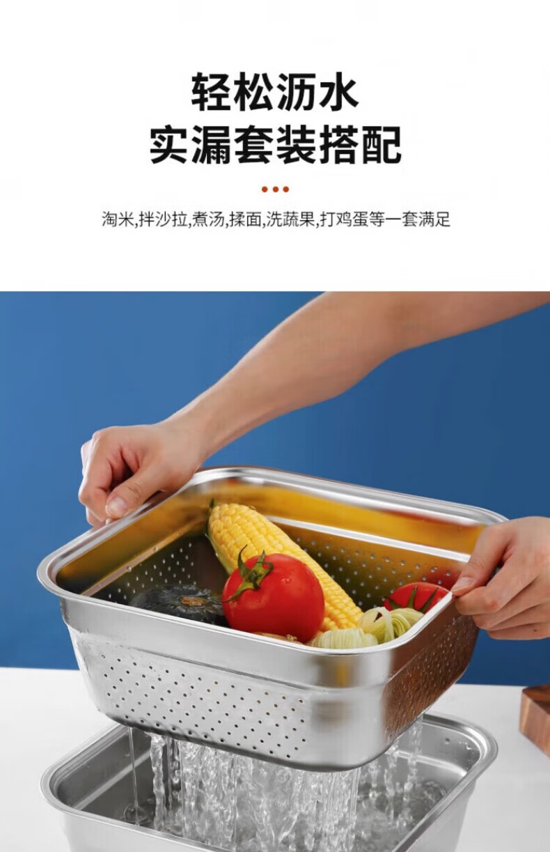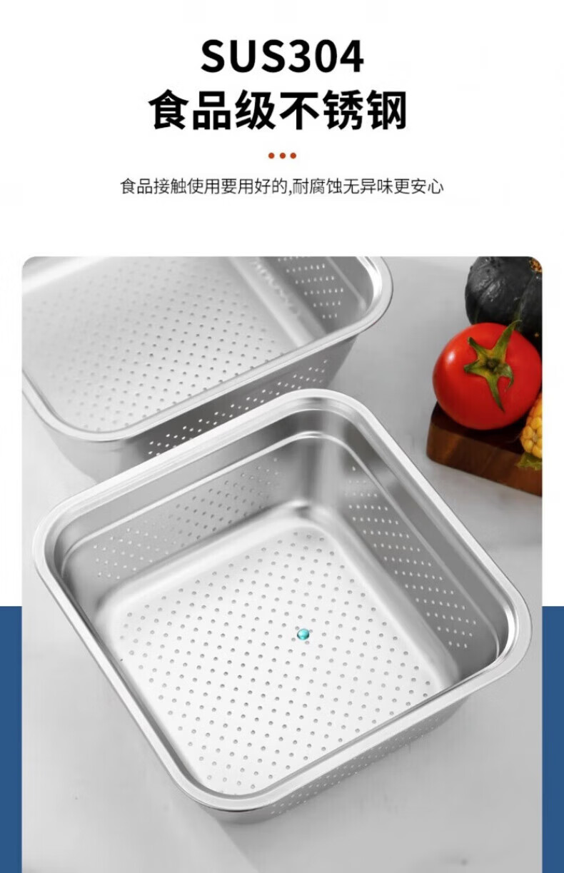 Luluo quality drain basket for washing household 304 stainless steel leaky basins for washing rice, sifting and washing fruits 22 solid basins + 22 leaky basins two-piece set