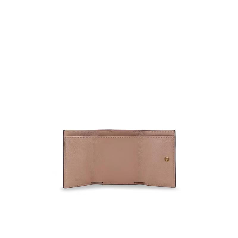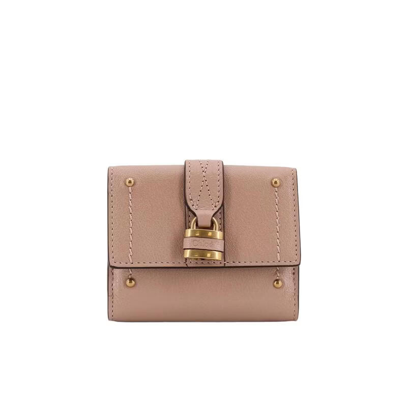 Chloe Women's Tri-fold Wallet Snap Closure Coin Bag Bill Bag Portable Storage Leather Material Metal Lock Nude Color One Size