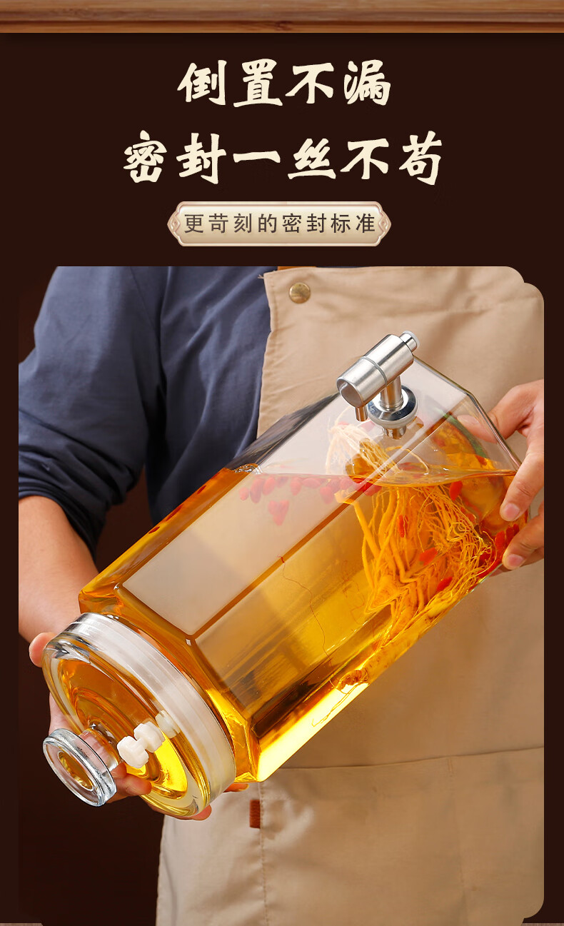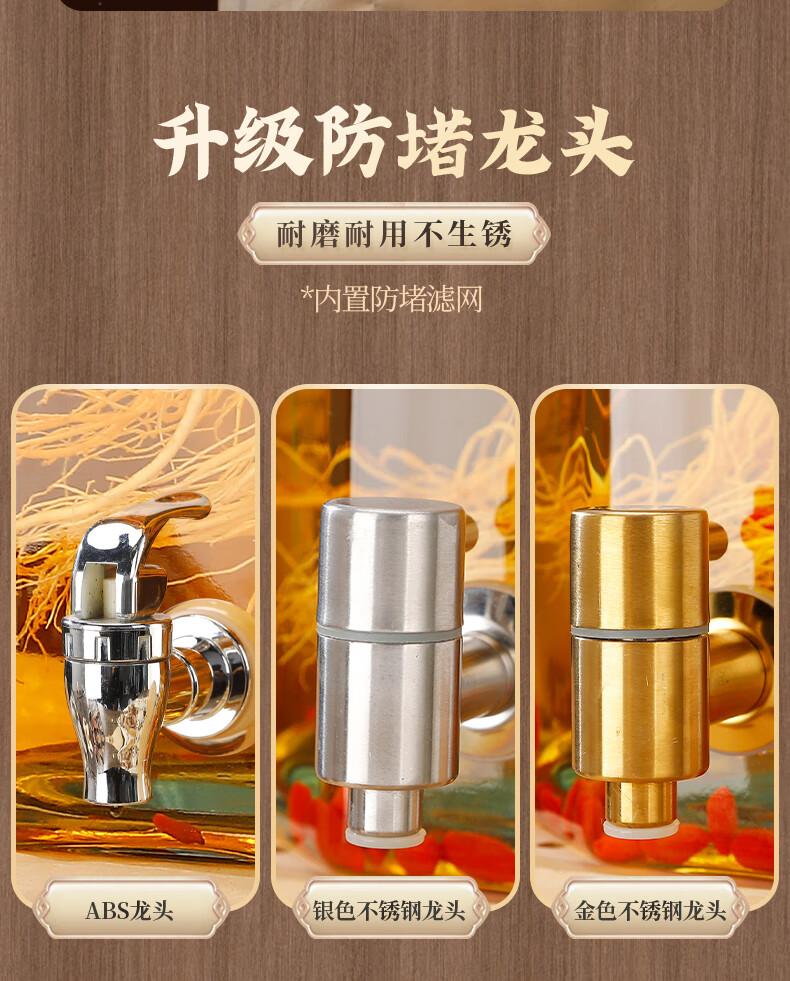 Sailoto bubble 10 Jin Jin is equal to 0.5 kg 20 Jin Jin is equal to 0.5 kg Sealed glass medicine jar with faucet 20 Jin Jin is equal to 0.5 kg + Copper color cylindrical stainless steel exhaust smooth surface eight