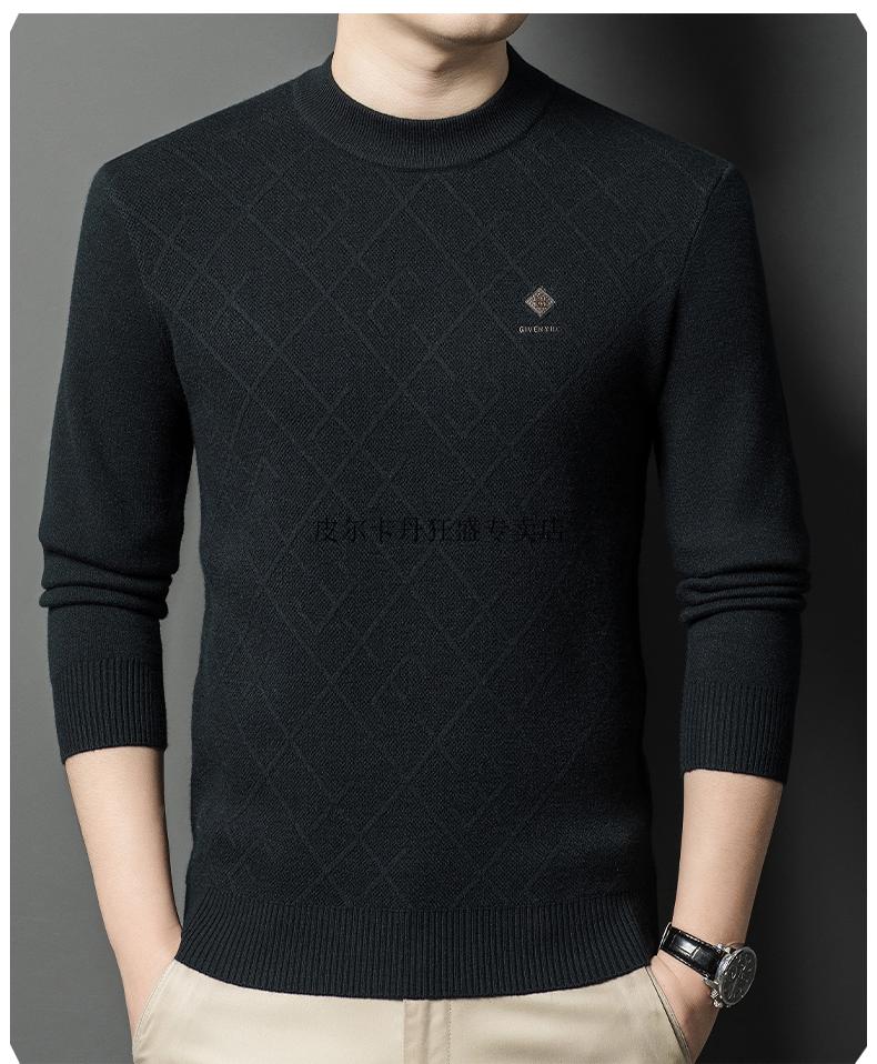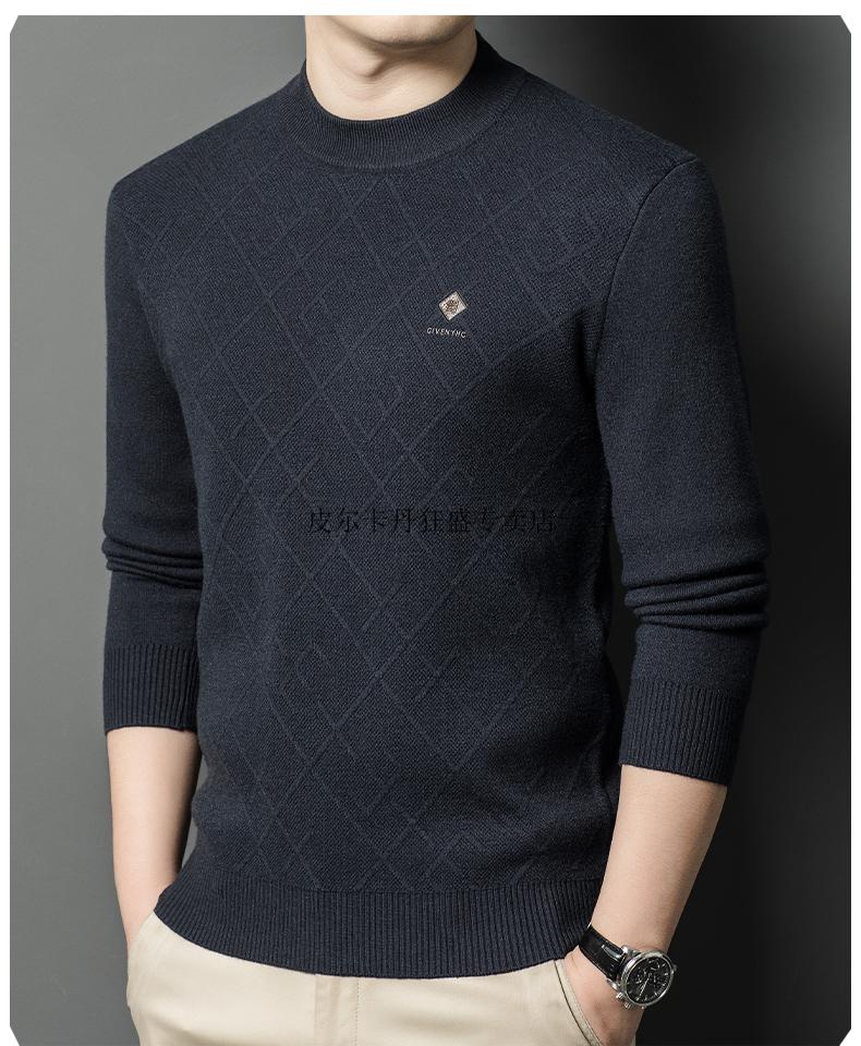 JEEP SPIRIT Ordos city-made 100% woolen sweater men's winter new half turtleneck sweater middle-aged thickened sheep. Cashmere sweater 19320 - dark blue gray high-end special non-pilling 2025 autumn and winter new model XL 175 size - recommended 130-155Jin Jin is equal to 0.5 kg