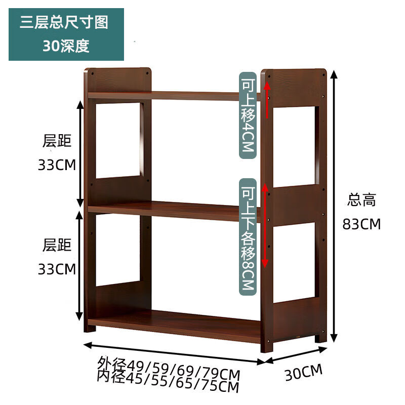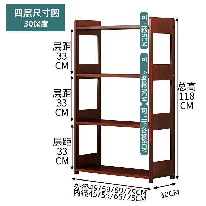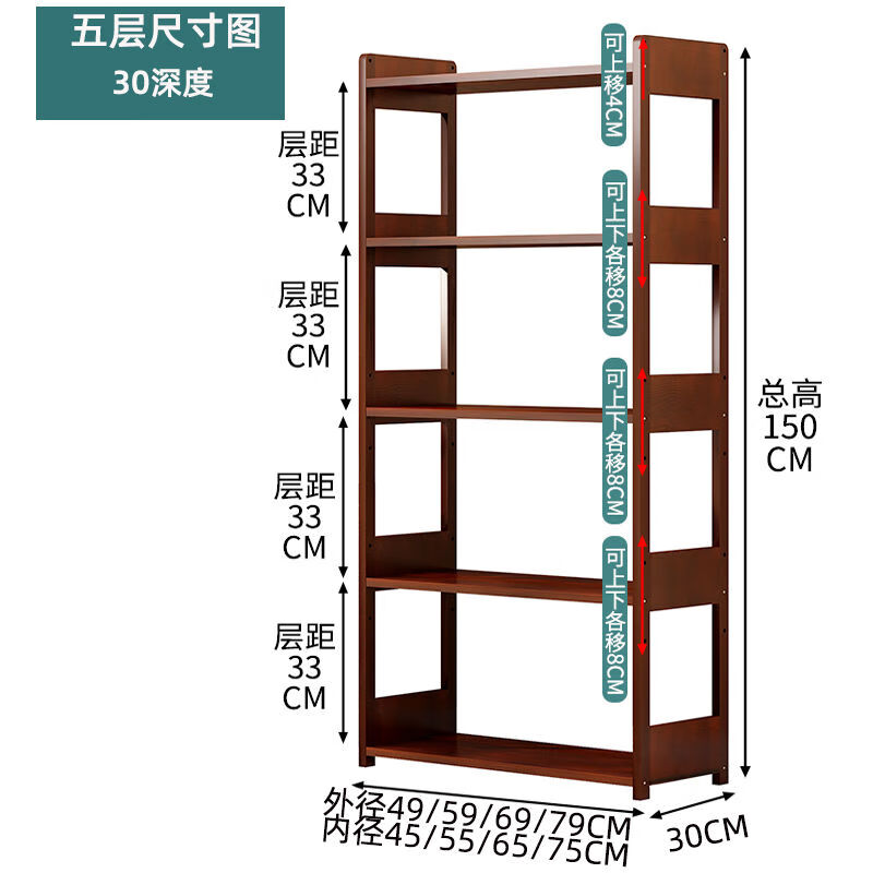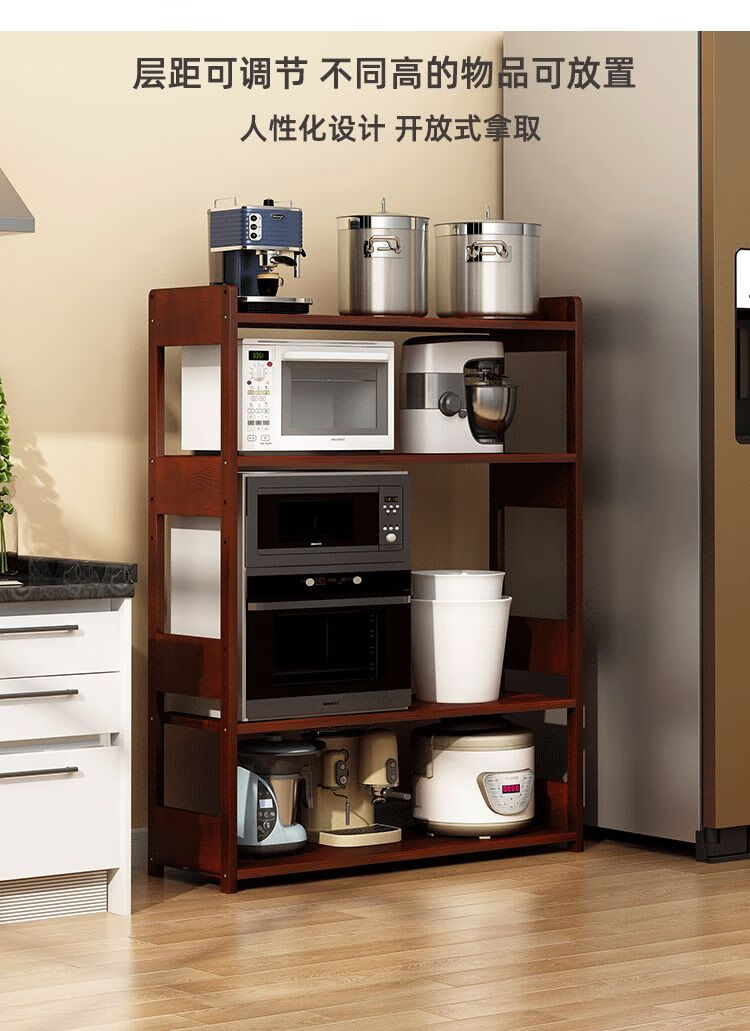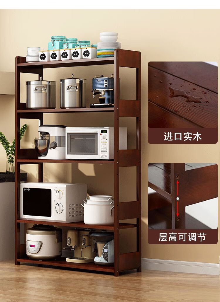 Sailoto microwave oven rack multi-layer floor-standing oven storage rack wooden narrow cabinet household storage pot rack all solid wood five layers 49*30*150cm walnut color