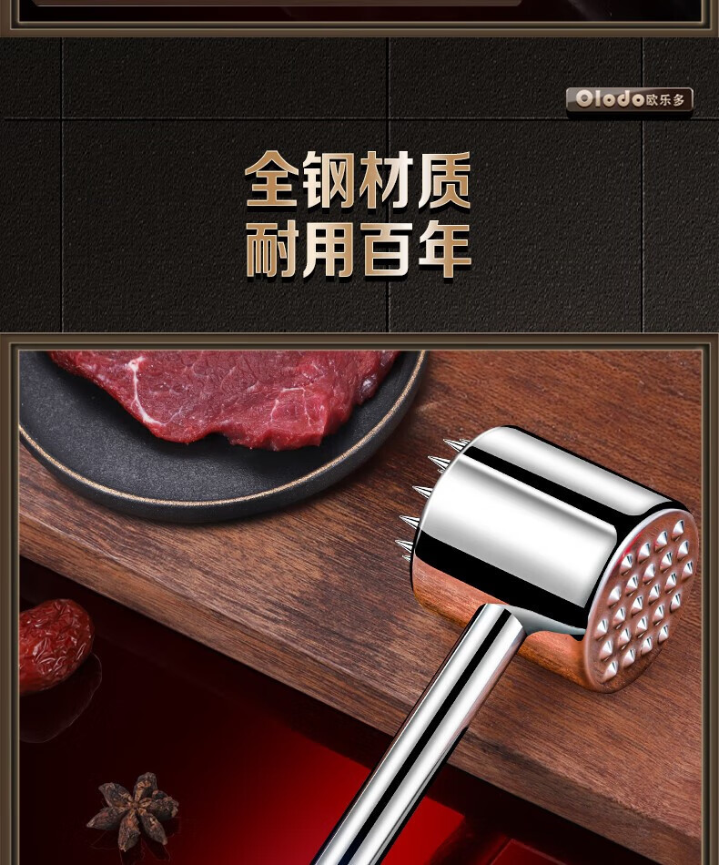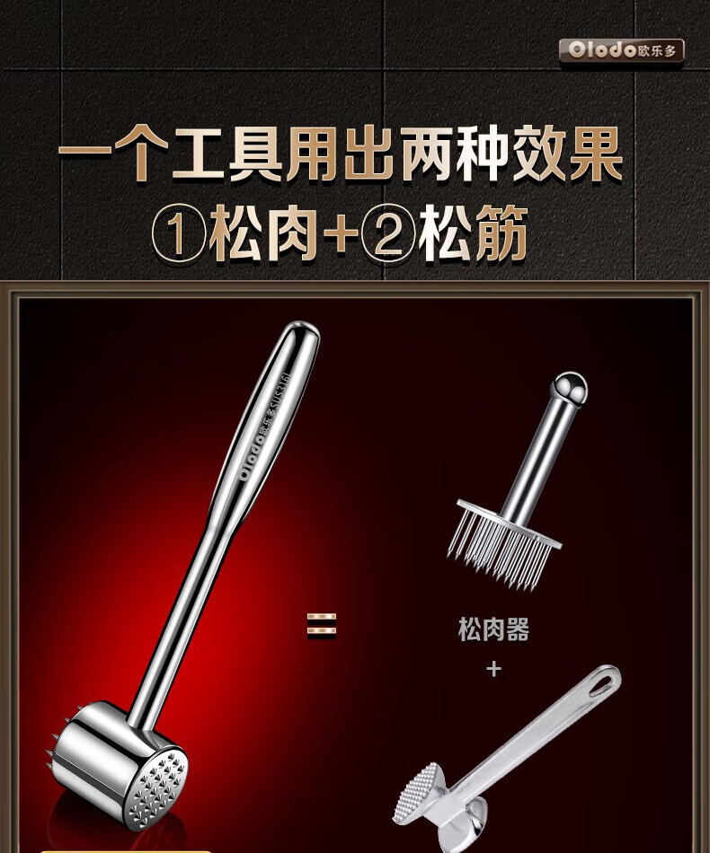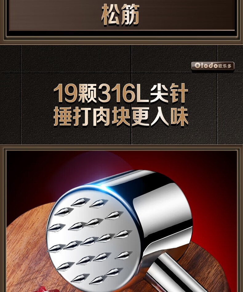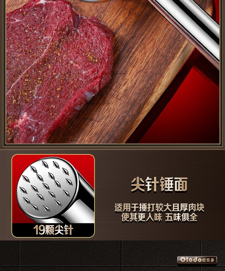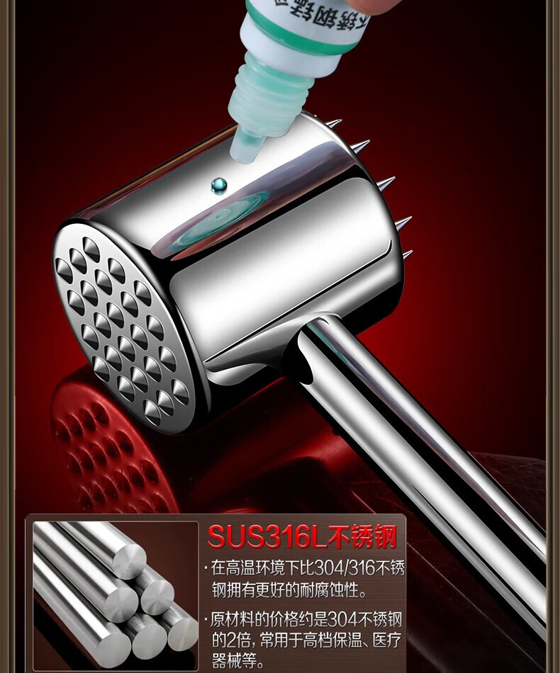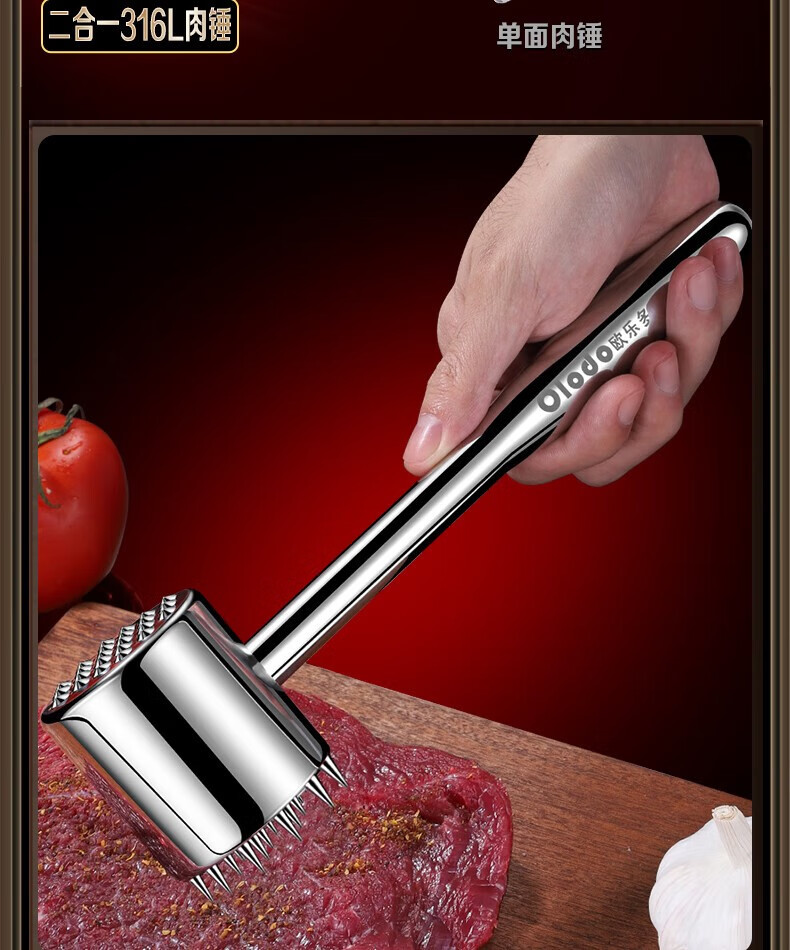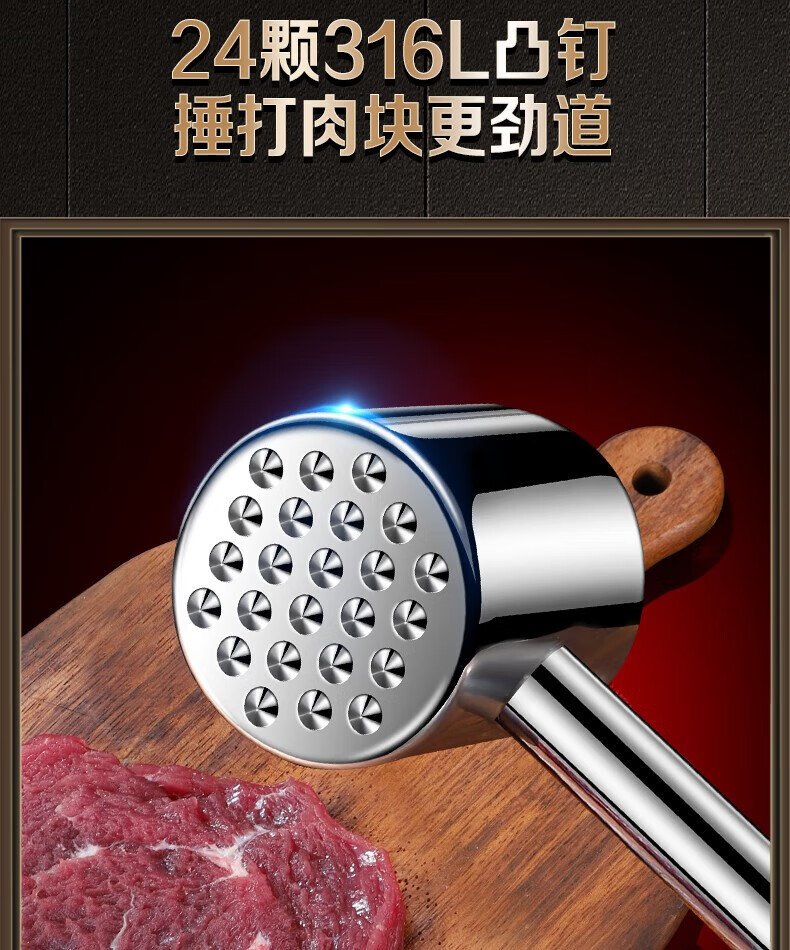 黛惑16不锈钢双面松牛排锤家用加厚敲嫩肉针断筋牛肉器 牛肉器