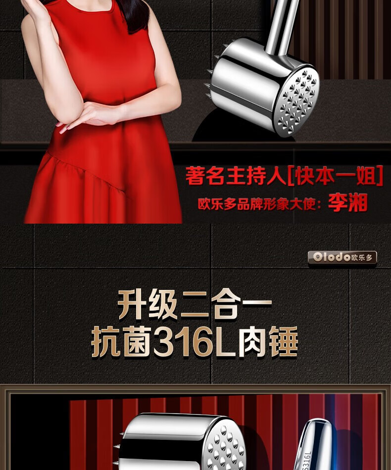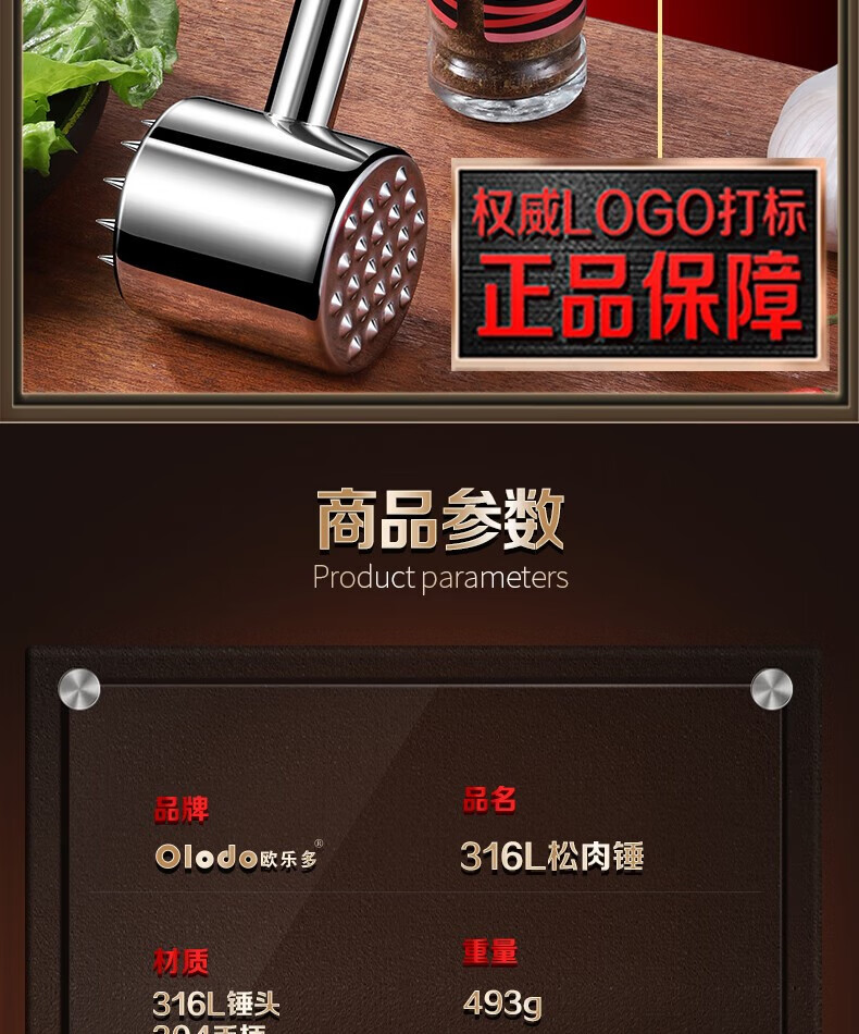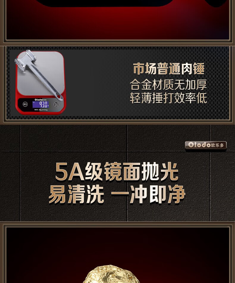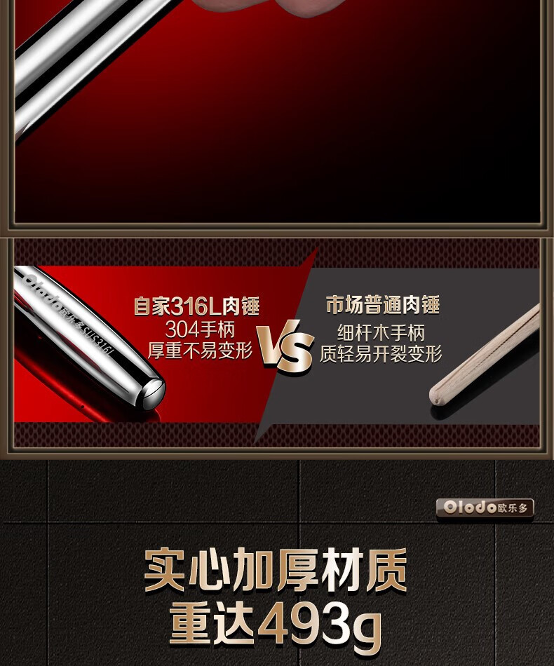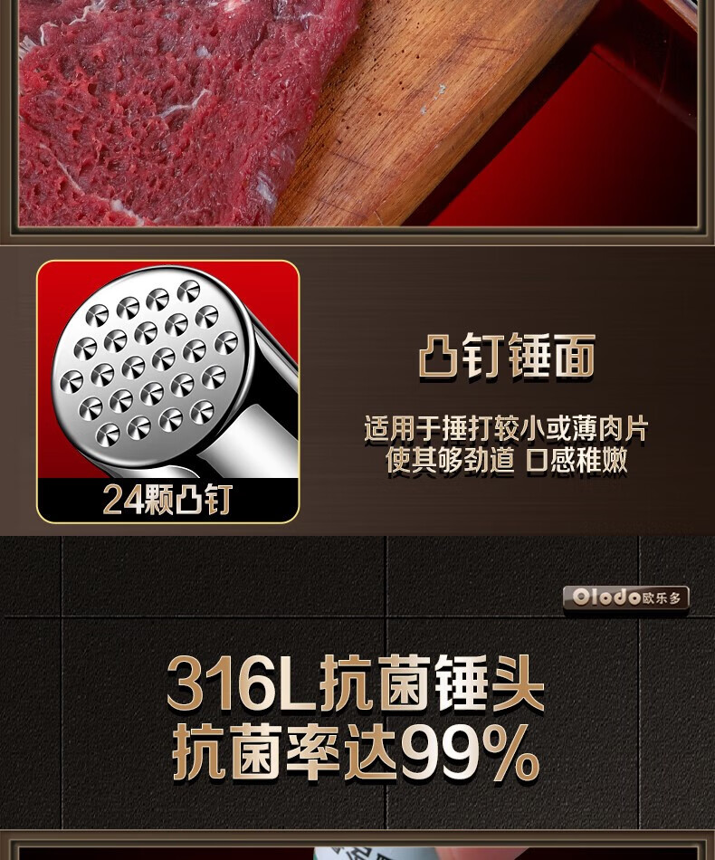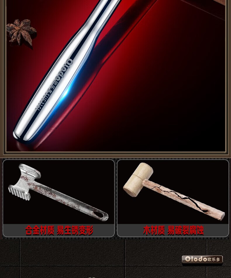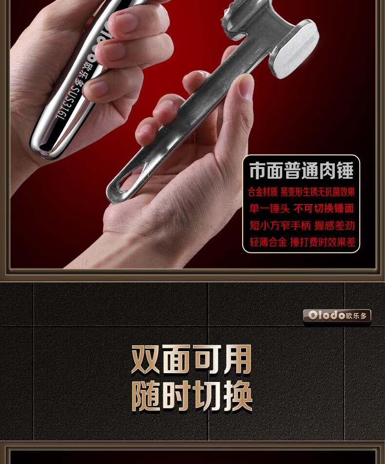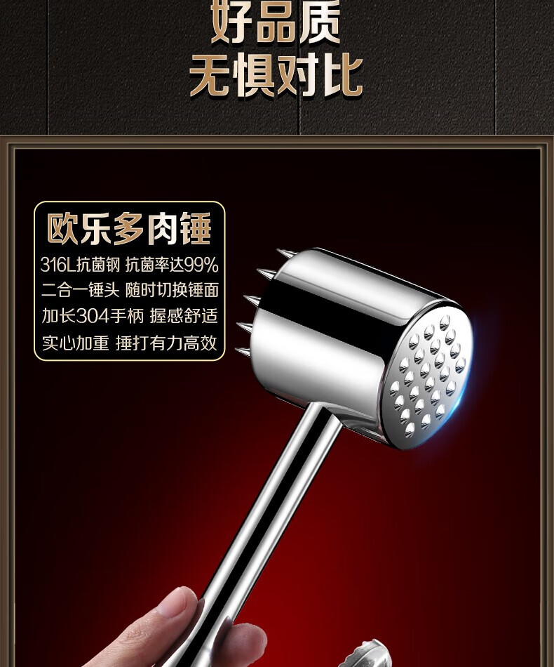 黛惑16不锈钢双面松牛排锤家用加厚敲嫩肉针断筋牛肉器 牛肉器