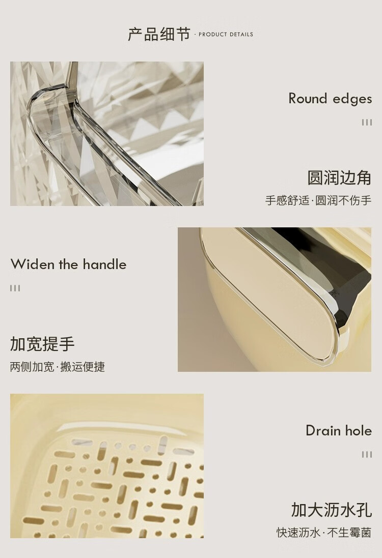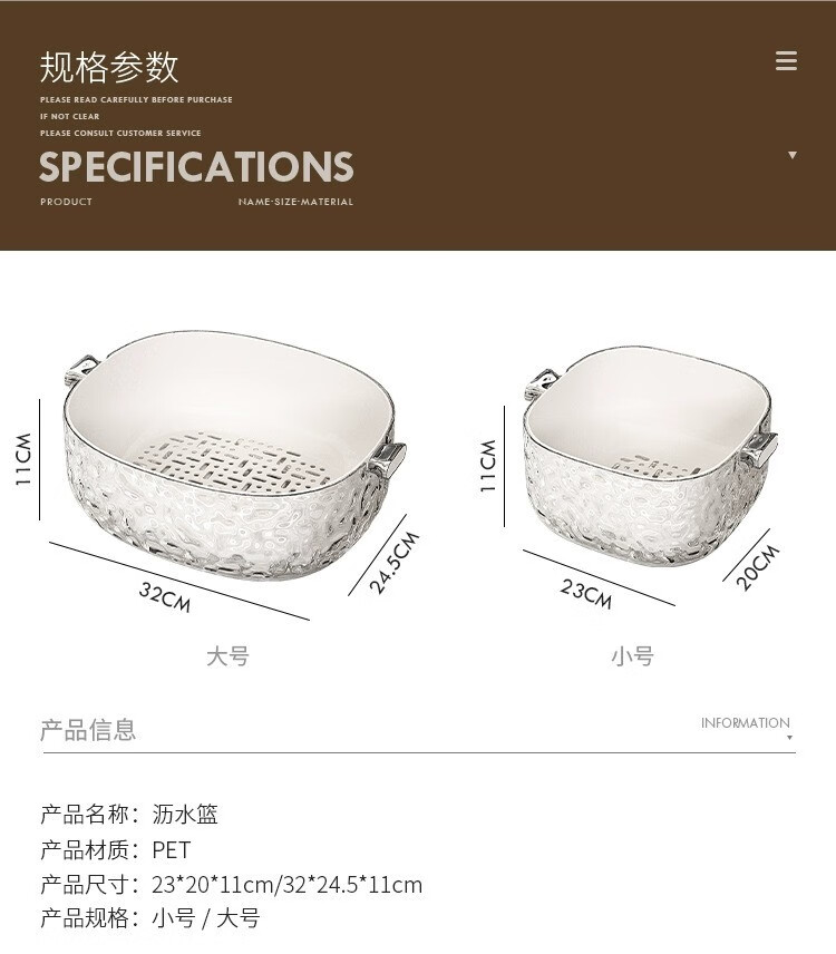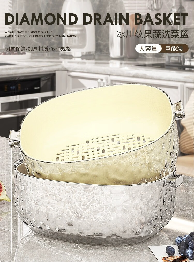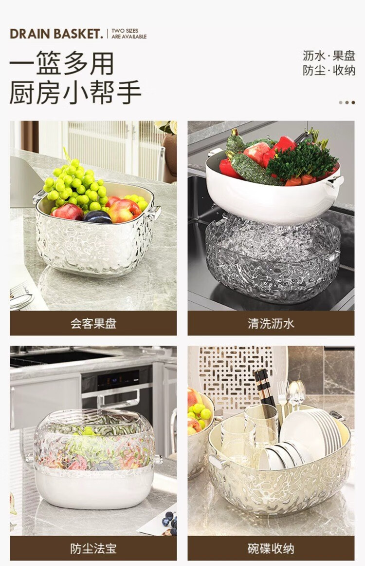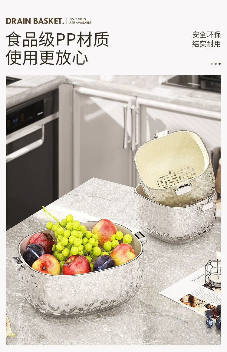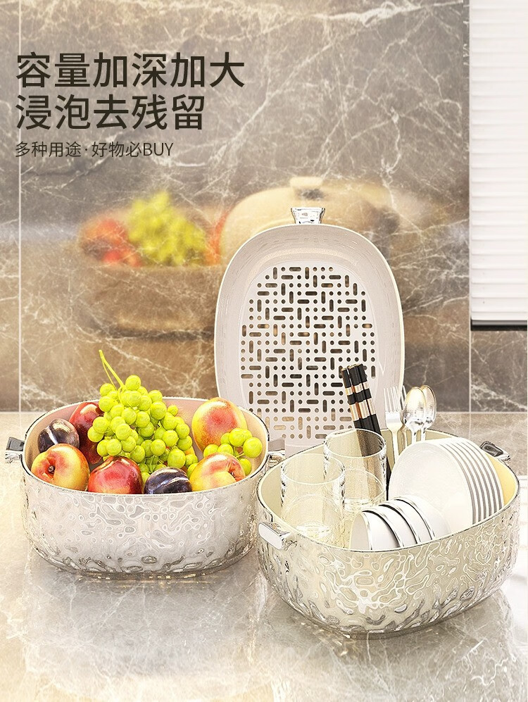 Junmo double-layer drain basket for washing home living room multifunctional fruit filter basket for washing vegetables and vegetables small size - silver 2 pieces