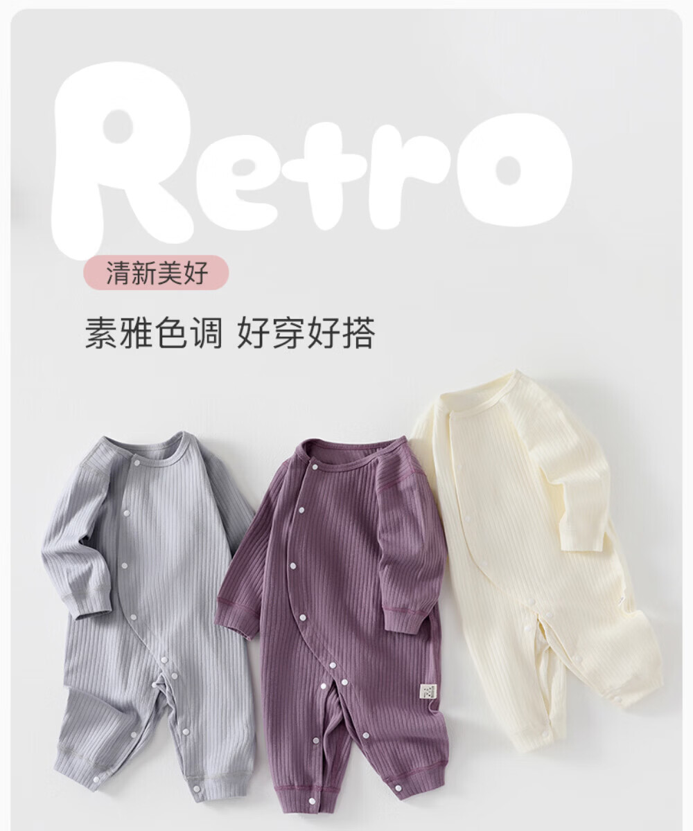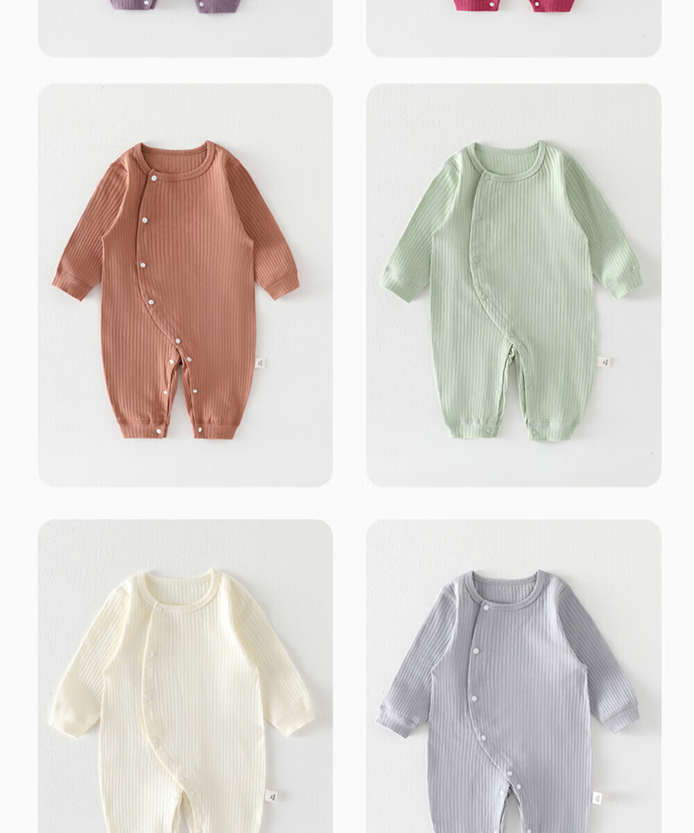 Betis baby clothes jumpsuit autumn and winter long-sleeved newborn infants pure cotton warm crawler bottoming pajamas fog blue 59cm