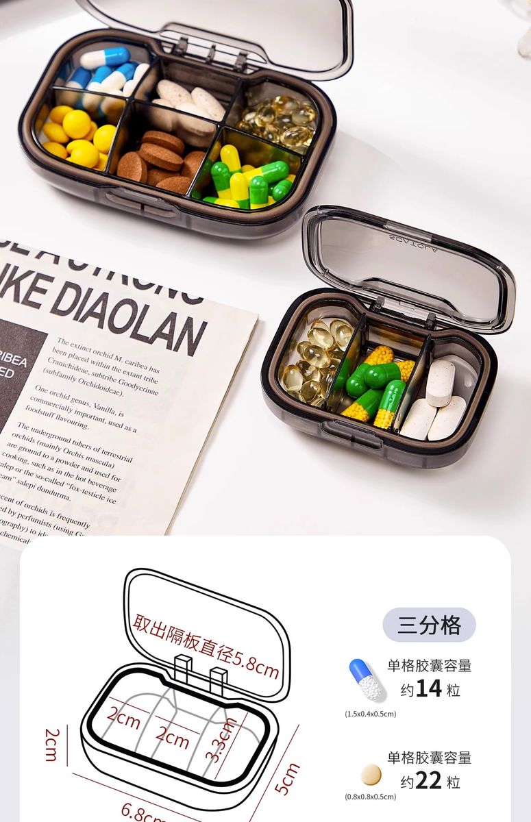 Wing Fantasy Portable Small Mini Three Meals a Day Sealed Medication Storage Tablets Take With You and Packed Convenient Pill Box Red