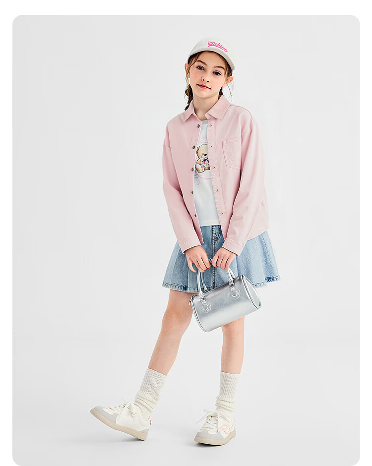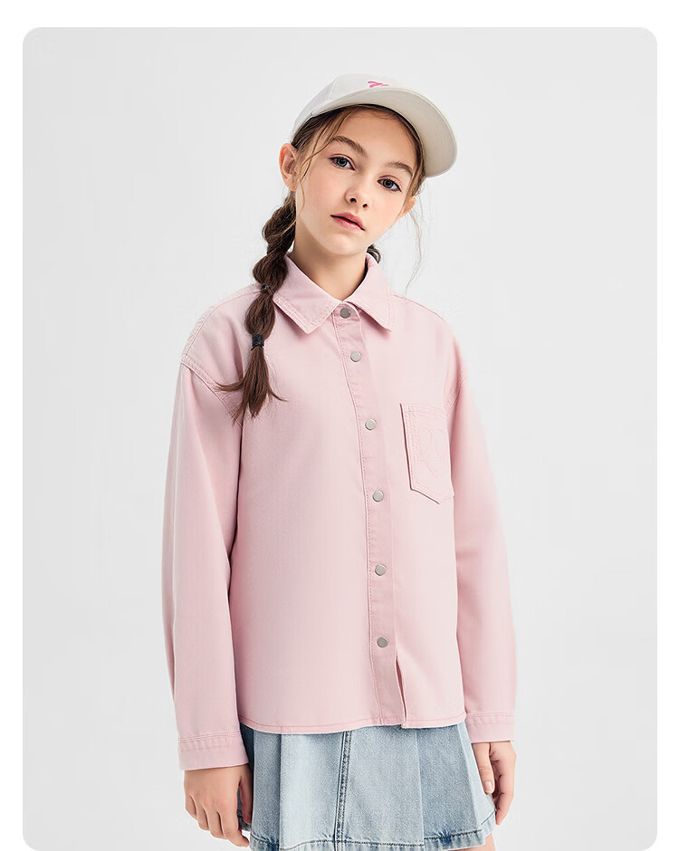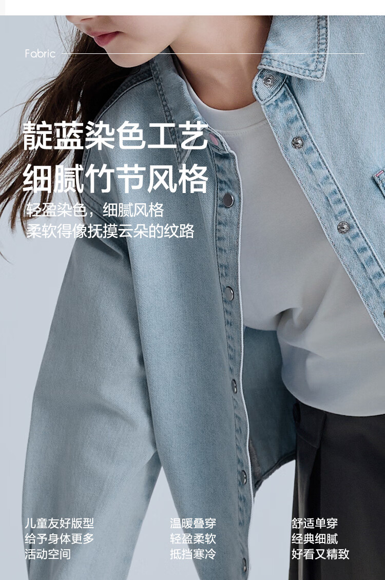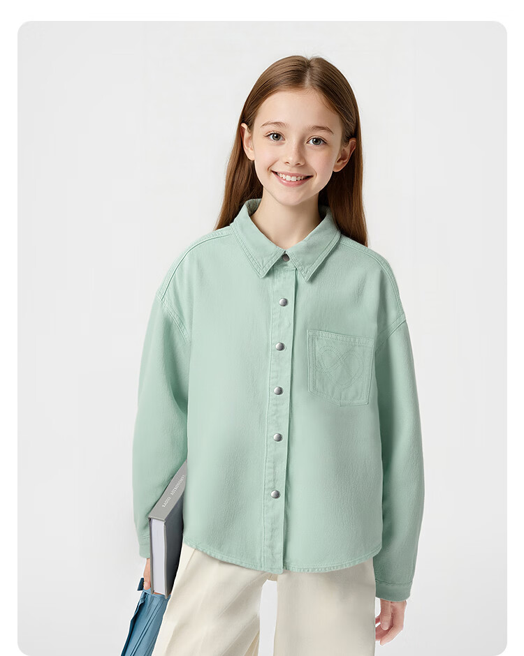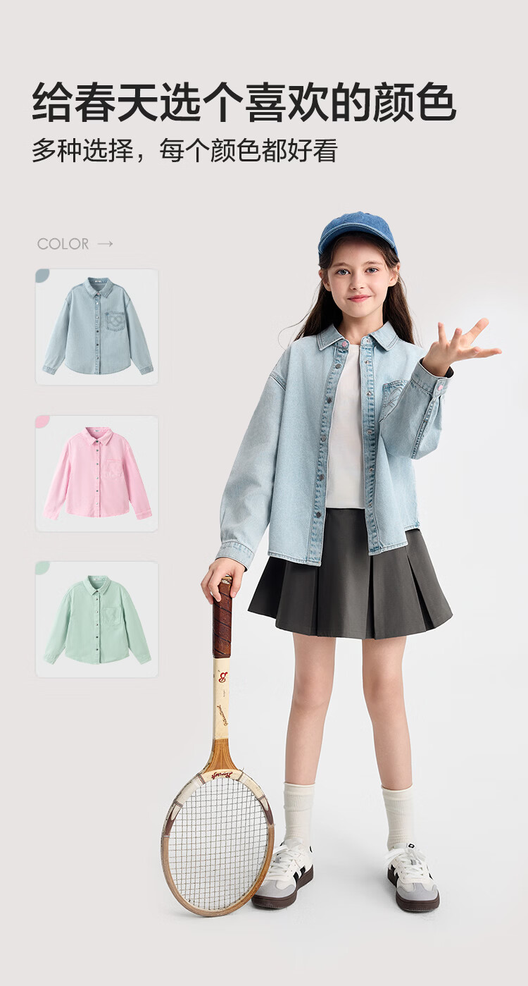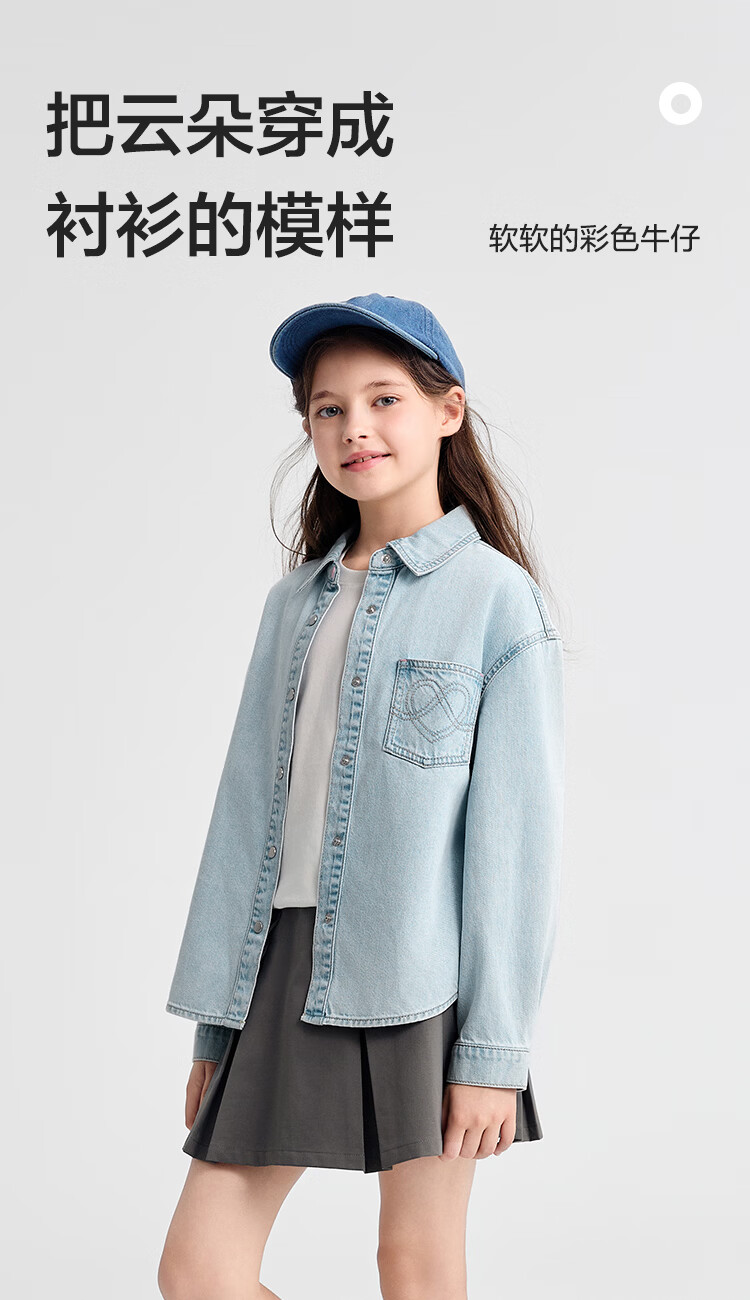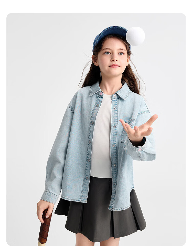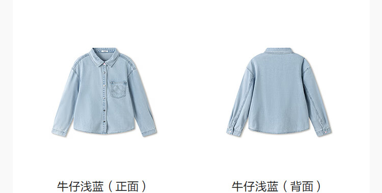 Balabala children's clothing girls' shirt children's long-sleeved 2026 new spring color cotton denim shirt lapel versatile top denim light blue 88101 110