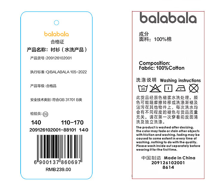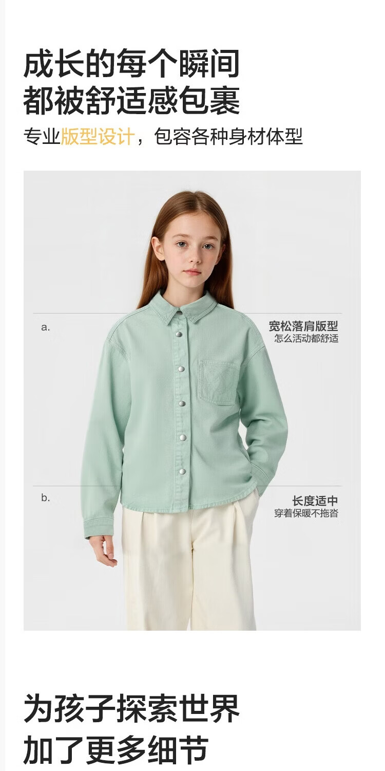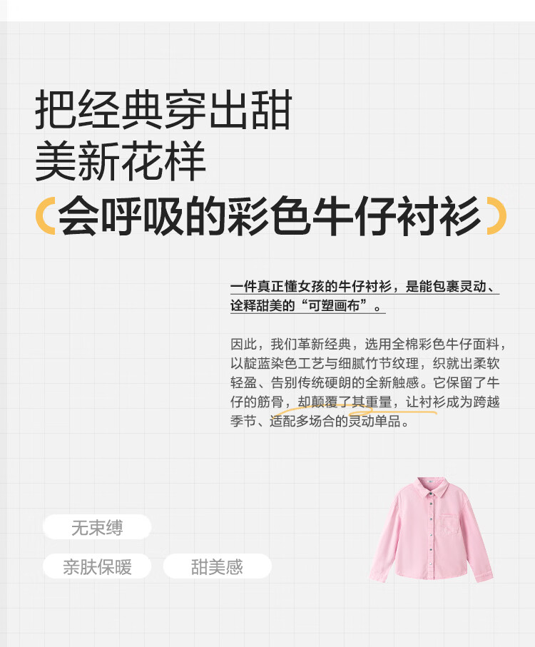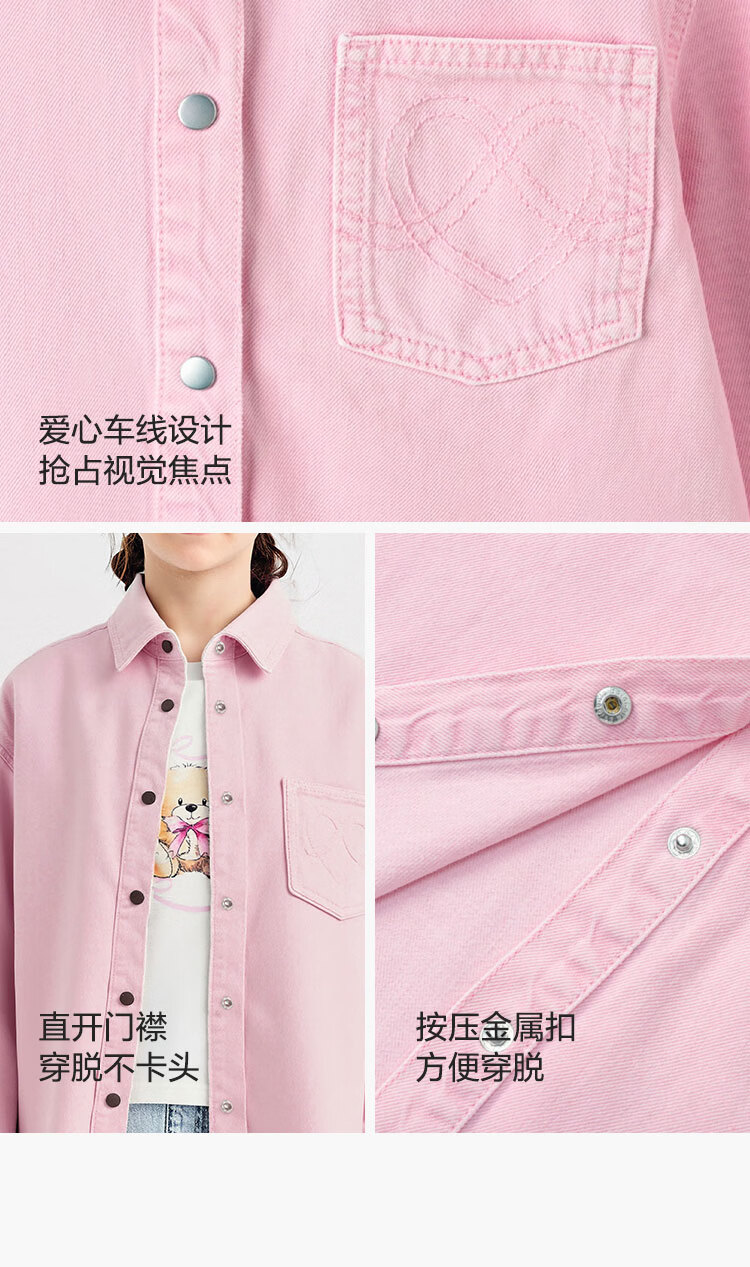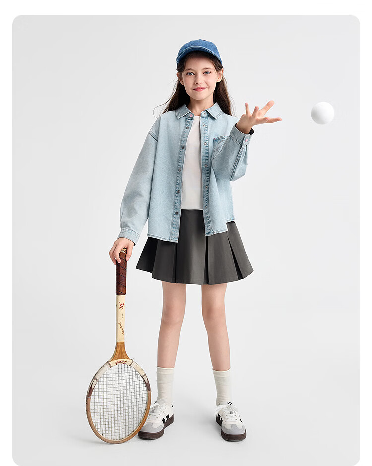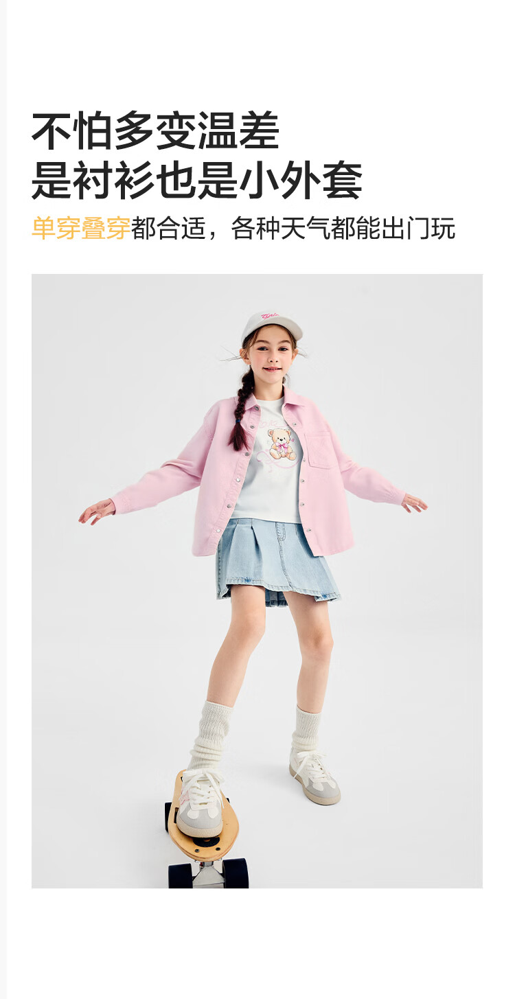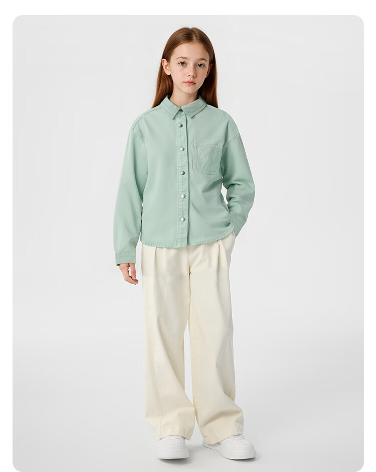 Balabala children's clothing girls' shirt children's long-sleeved 2026 new spring color cotton denim shirt lapel versatile top denim light blue 88101 110
