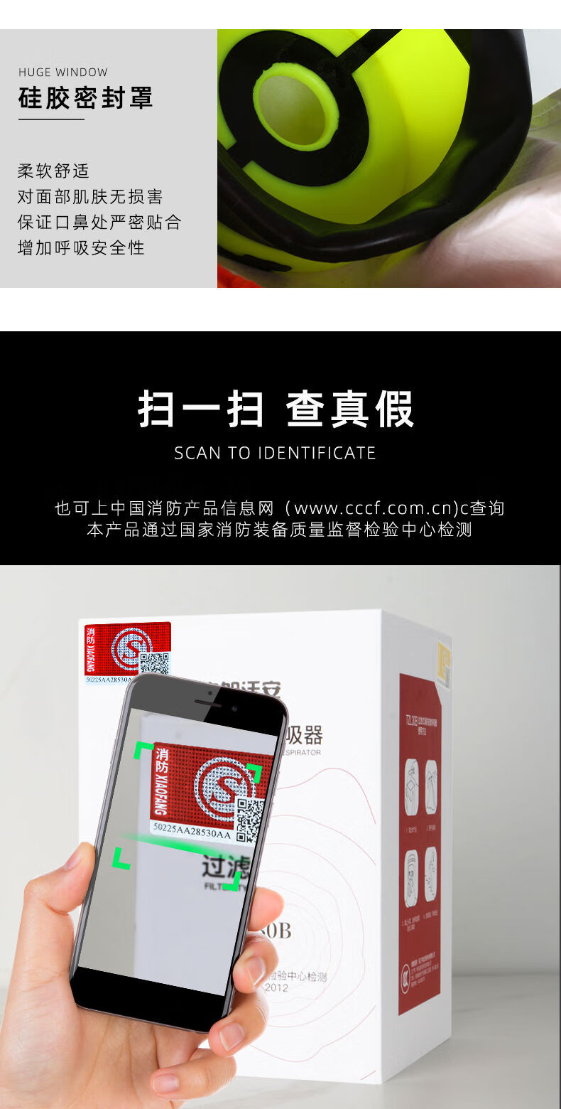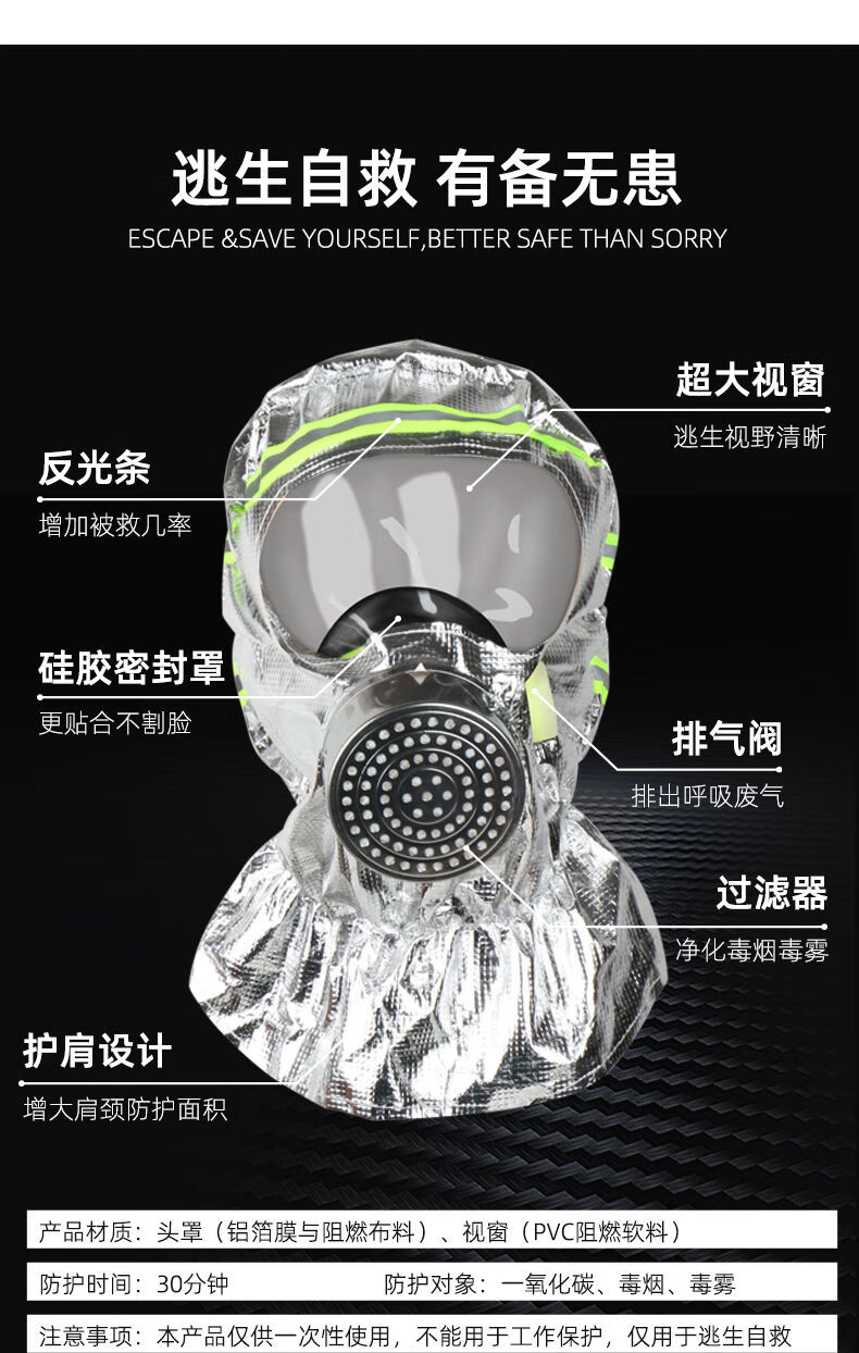 KOWSI fire mask 3c certified anti-virus, smoke-proof, fire-proof special mask for fire-fighting, filter-type fire self-rescue respirator, upgraded version, single-person escape combination