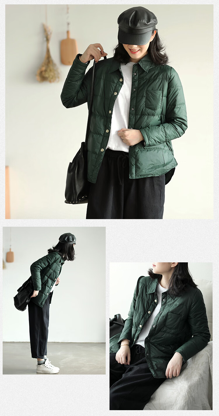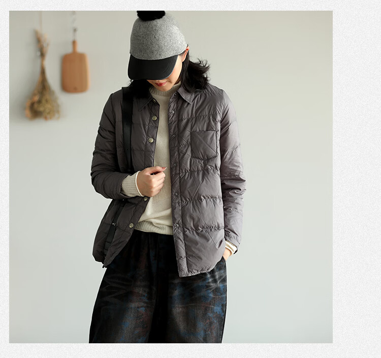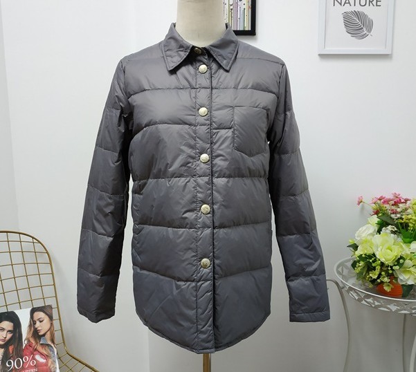 Woodpecker Winter Lightweight and Warm Jiaxing Pinghu Shirt-style Down Jacket Women's Underwear Shirt Collar Liner Bottoming Cotton Jacket Thin Gray M 110-125Jin Jin equals 0.5 kg