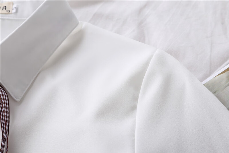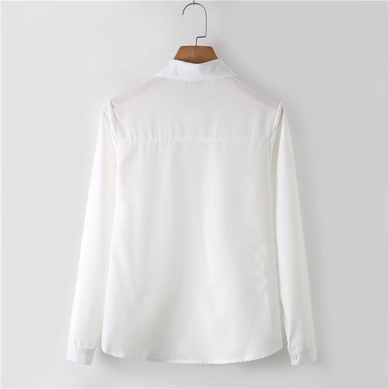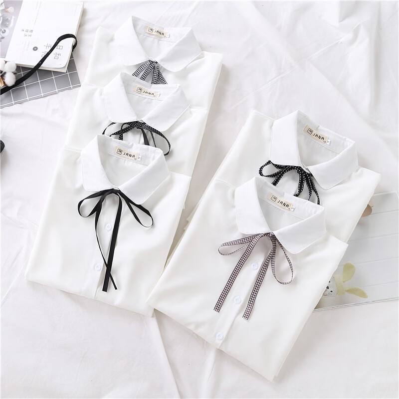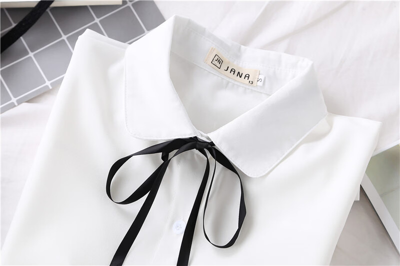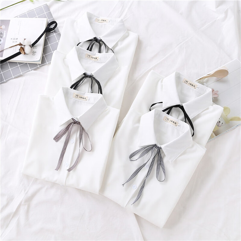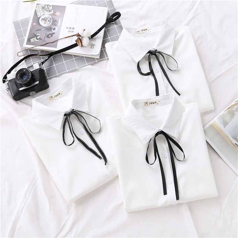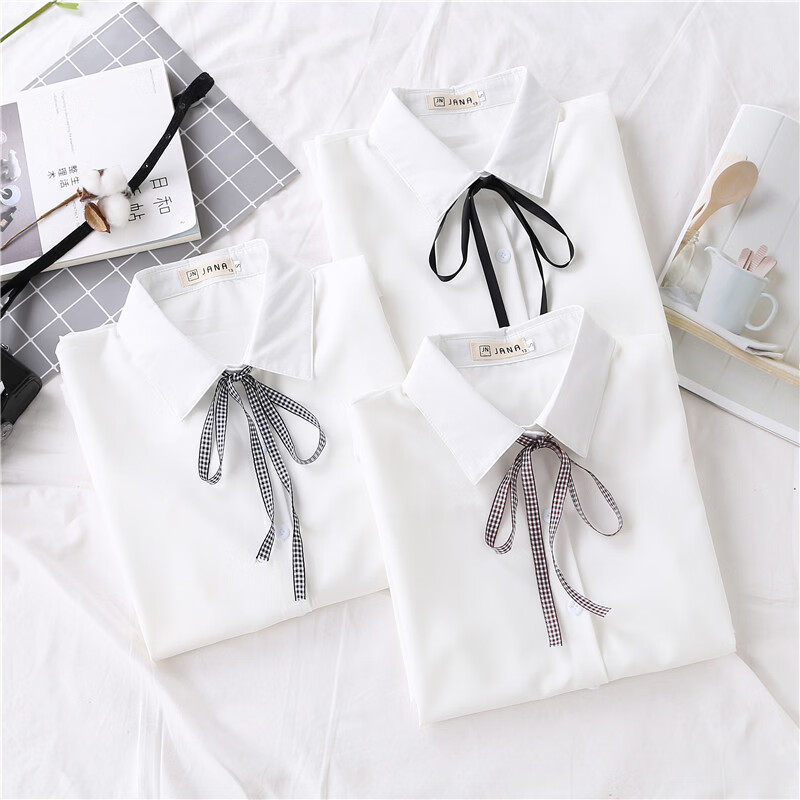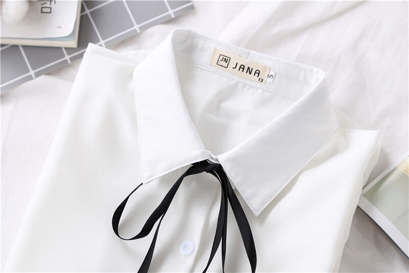 Woodpecker 2025 spring, autumn and winter new velvet thickened bow chiffon white shirt for women with long-sleeved bottoming top round neck coffee plaid lace-up without velvet S