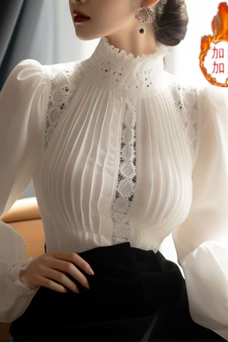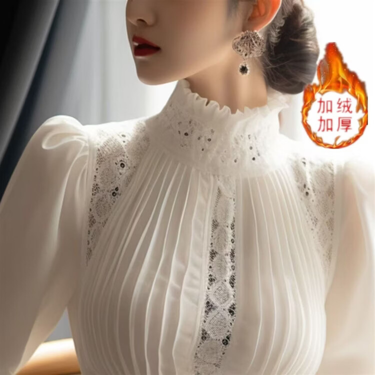 Woodpecker 2025 this year's popular white shirt autumn and winter new style beautiful stand-up collar velvet bottoming shirt top White 1 All sleeves are velvet and very warm M 91-105Jin Jin is equal to 0.5 kg